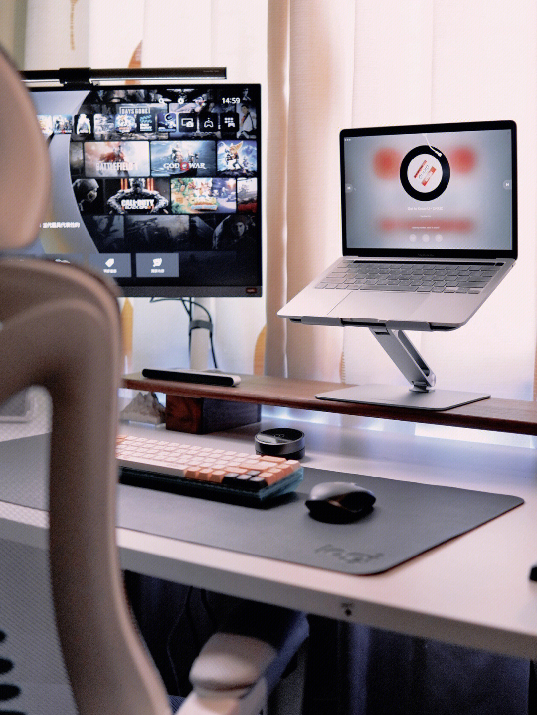 桌面改造|氛围感宅家工作台布置分享🧾|||嗨我是一泓 最近没更新是因为在折腾新桌面 重新弄了下房间里的布局 新的桌面感觉比以前宽敞好多 又是在床边视觉上感觉明亮舒适很多 今天分享一些桌面布置清单 希望对你的桌面改造有些帮助 桌面配件: 🏷桌子:2张宜家普通定制140*80桌板 🏷️笔记本:MacBook Pro(M1) 🏷️笔记本支架:绿联 🏷️桌面增高架:桌派黑胡桃木增高架1.2米 🏷️显示...