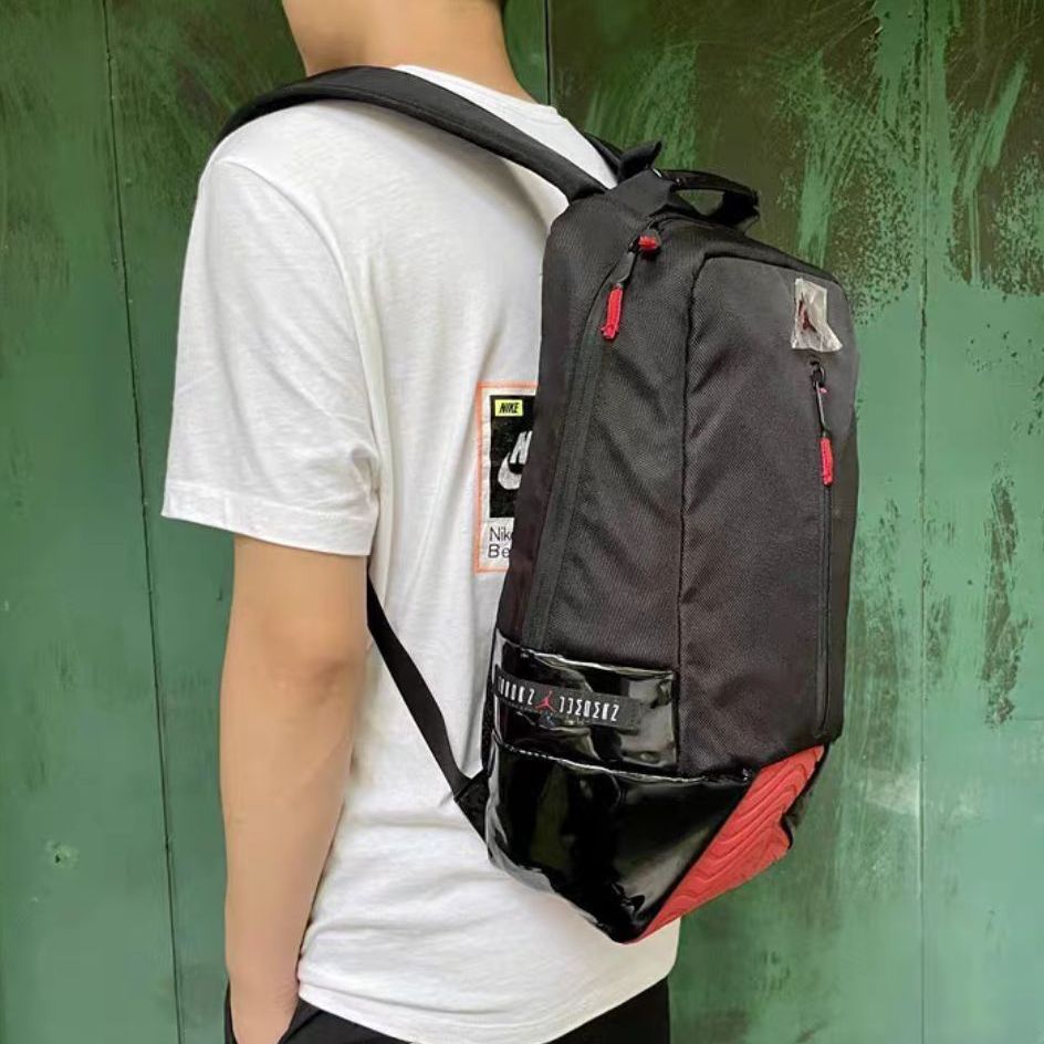 包包名称🈵Jordan Brand 11代MINI版运动双肩背包 √需要带电脑的时候,就需要这样带电脑夹层的双肩包。运动徒步旅行也都是必不可少的单品。15.6寸电脑可放入 √防泼水尼龙布料,太适合雨多的上海。又很耐磨,自重非常轻。完全满足我的诉求 V男女同款,一个包,两个人都可以背 √大大小小的口袋,小隔层很多,特别适合我零碎东西的归纳。图源来自网络侵删