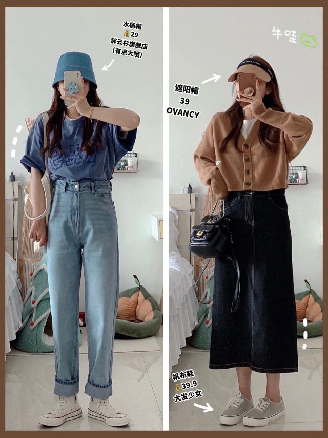 |🧢今天有宝子问我高腰牛仔裙 立刻拿出来搭上,不过是去年的了,应该还有 还有,好久没写我的Size了~ 腰围根据吃饭多少来决定,👖臀围不到90 🦵大腿围49,小腿33,体脂19~20 好啦,一些很适合春天的牛仔单品搭配🛏️ 希望能给你的搭配带来一些灵感⚠️ _