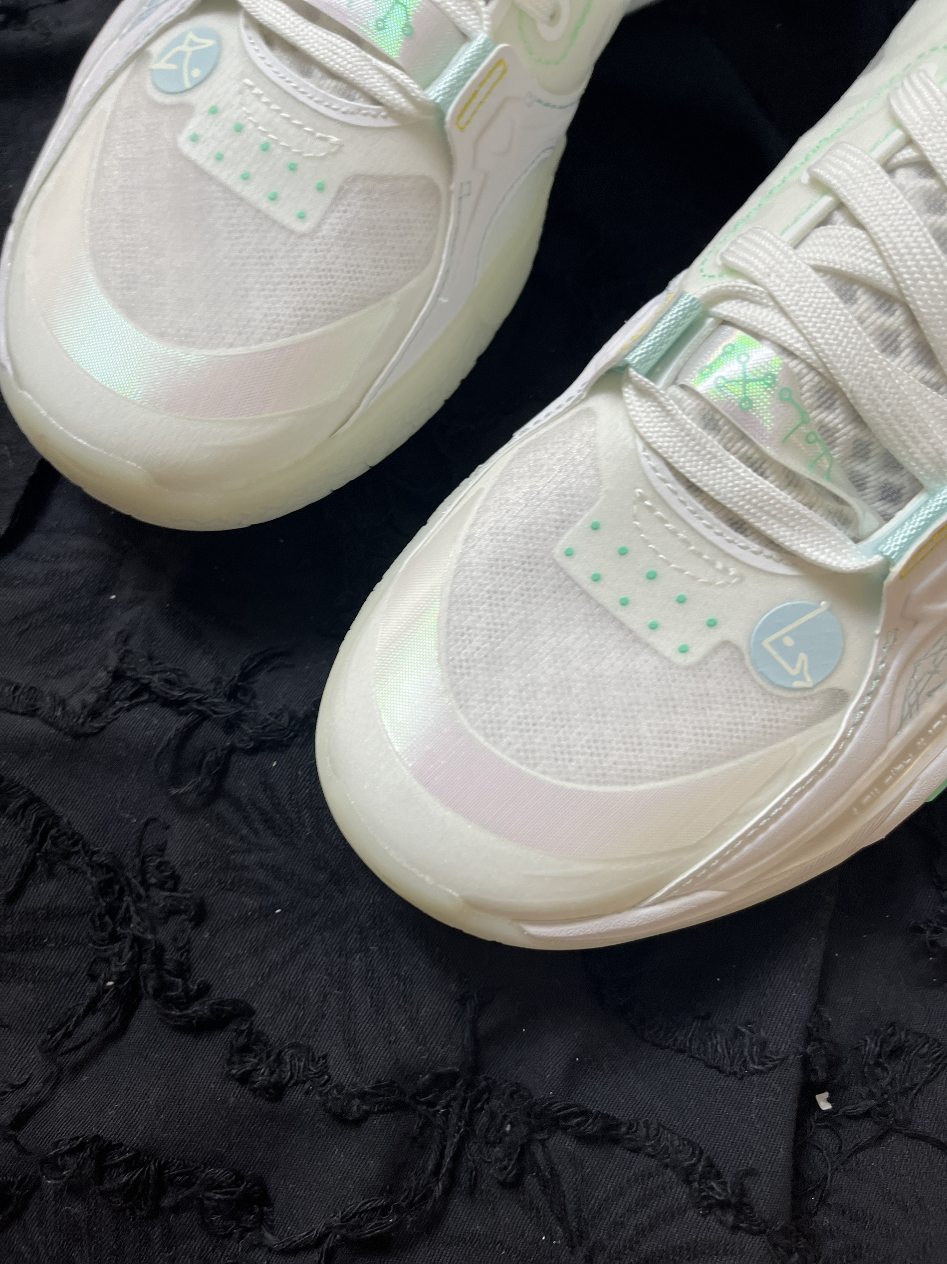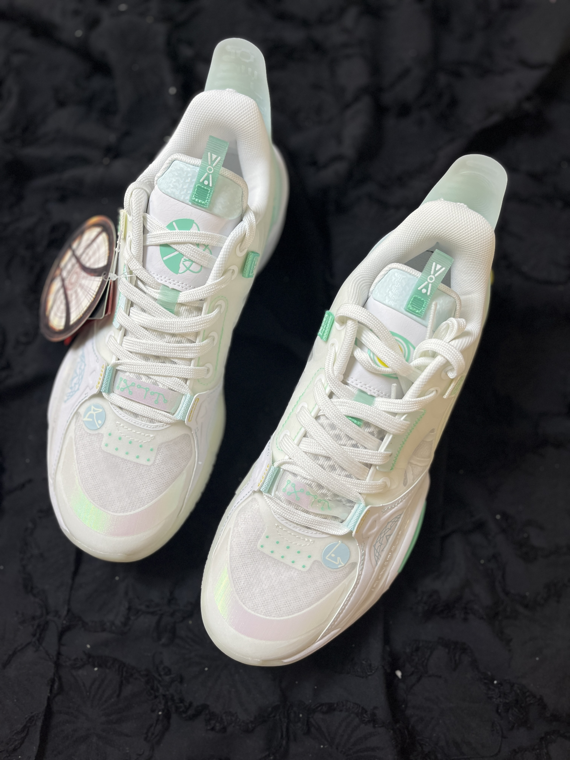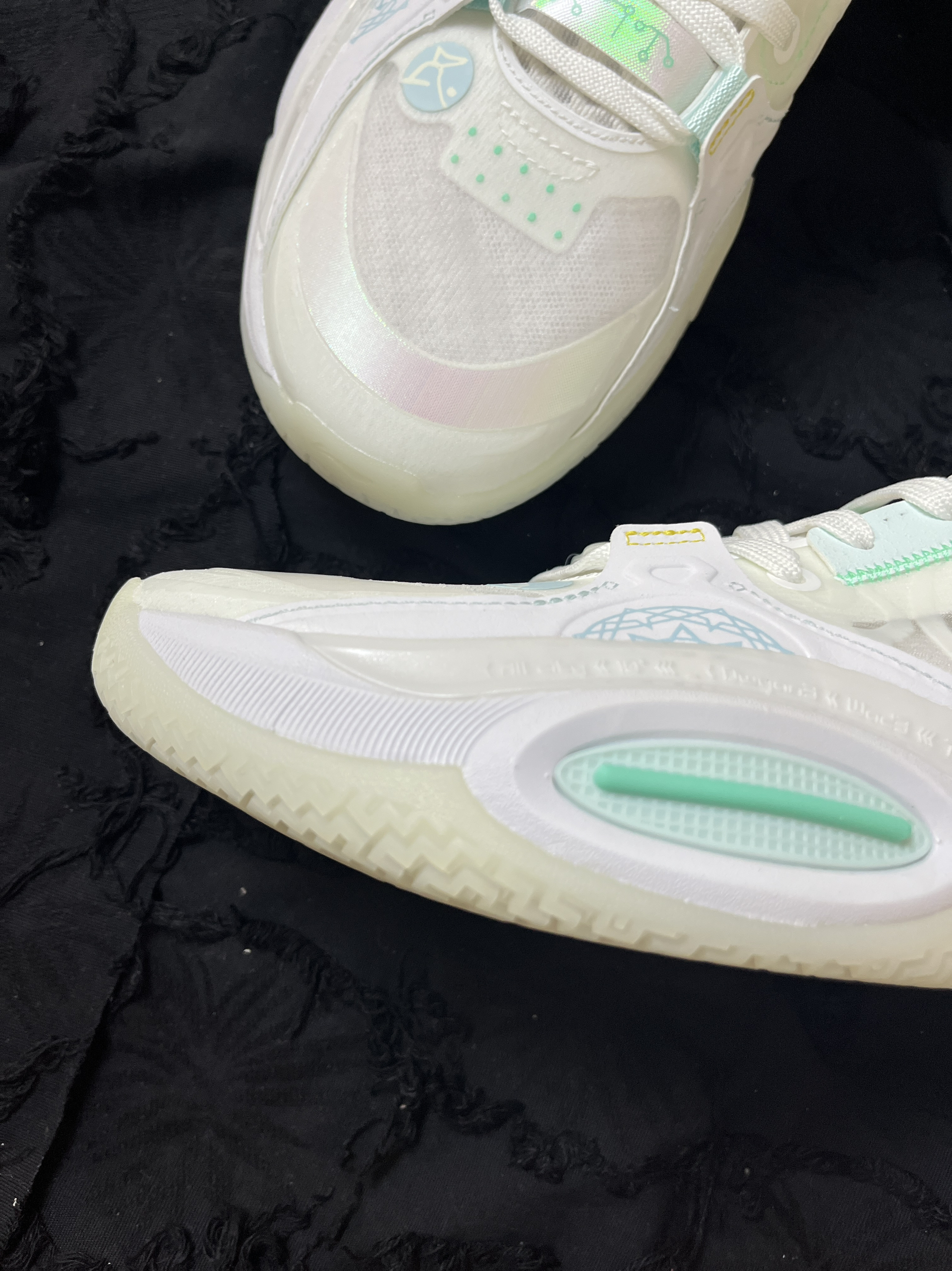 东毒西鞋今日分享:LiNing李宁全城10 元神 回弹减震低帮实战篮球鞋标准白 🧗♀️鞋面采用白色浅绿色拼接组成。外环看着更加的清爽。鞋面采用织物合成革TPU的材质,透气舒适很适合夏天去穿它。而且鞋面和大底采用了夜光材料,在光线稍弱的地方就能显现出比较强烈的“绿光”很有特点。全掌䨻科技能够让你感受到来自中底的回馈。