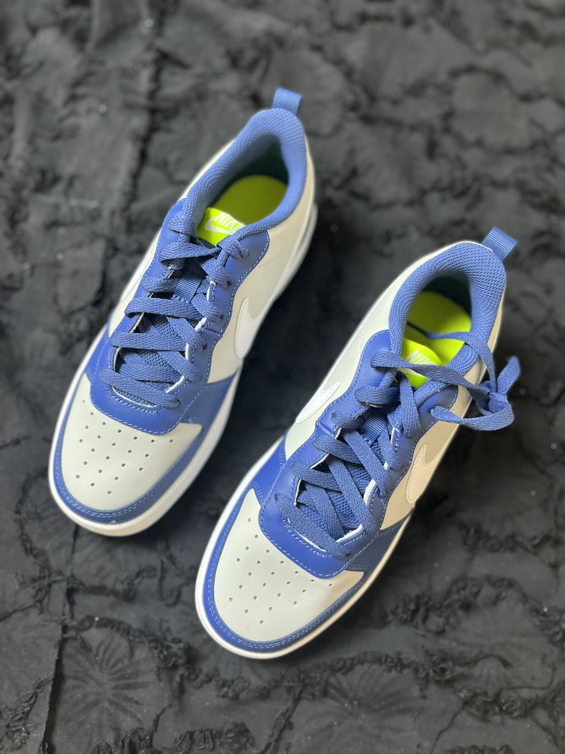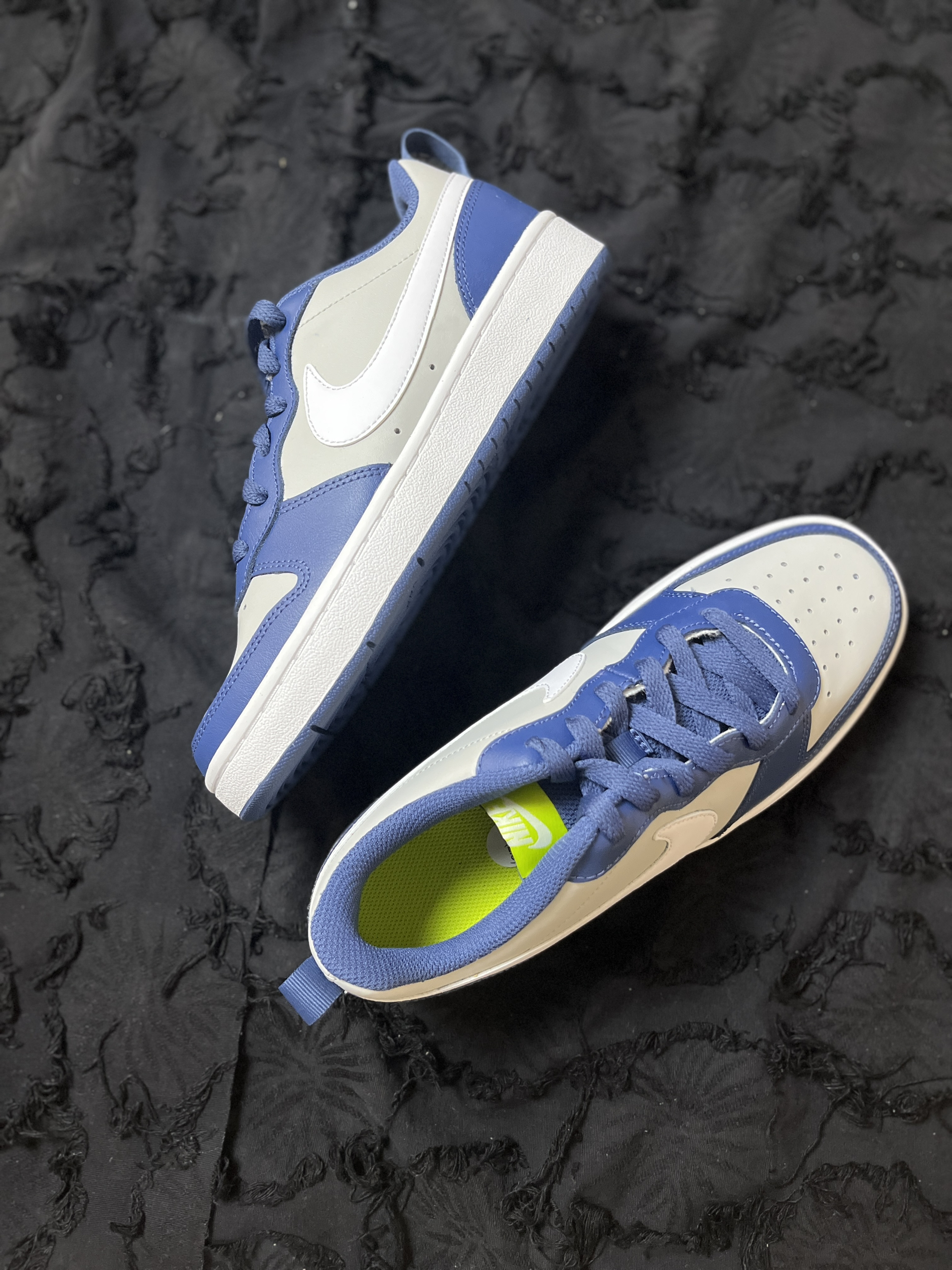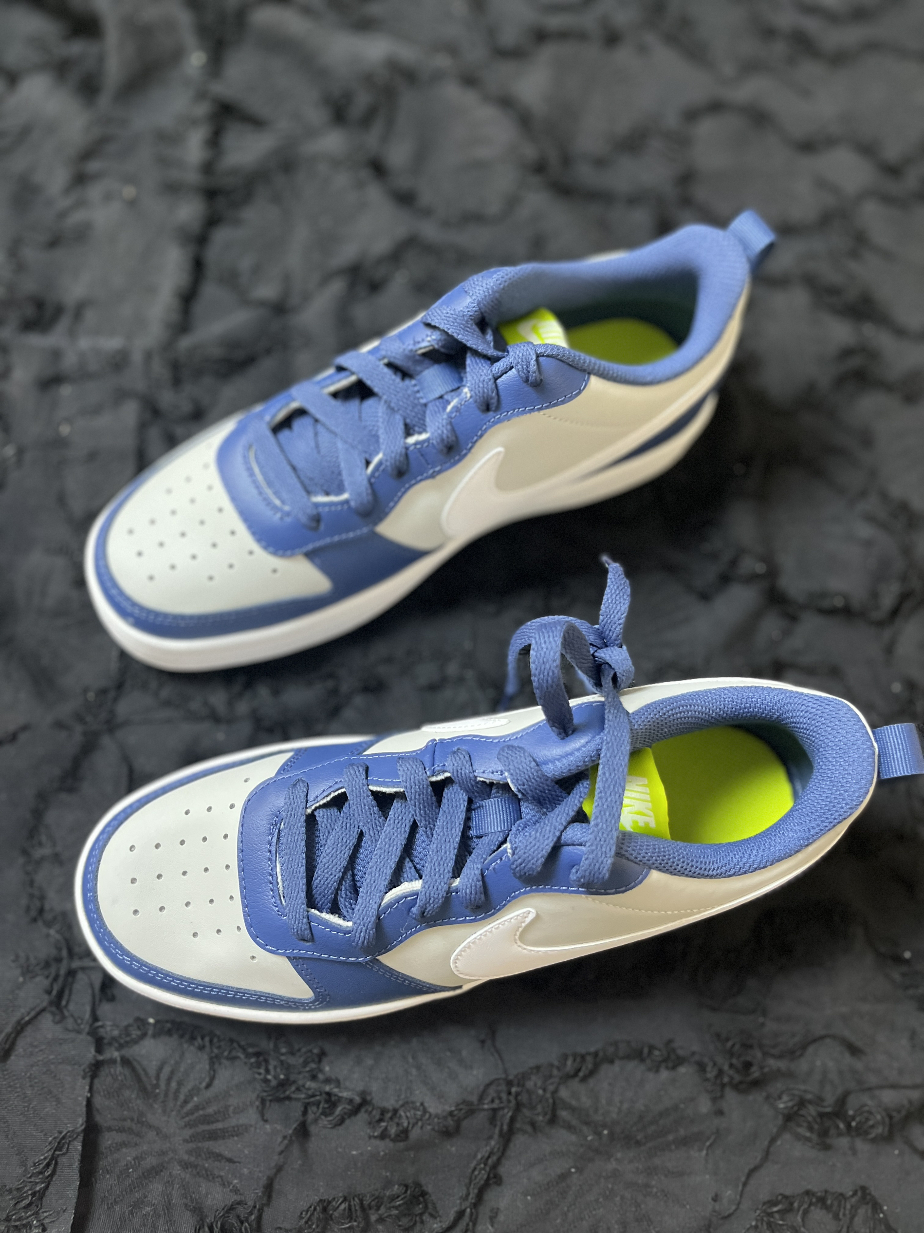 东毒西鞋今日分享:Nike Court Borough Low2(GS)轻便耐磨低帮休闲板鞋海军蓝 🧗♀️鞋面采用灰色为底色海蓝色做框架,白色进行点缀。外观颜值也是不错的。鞋面采用合成革的材质,透气还一般,海蓝色的橡胶大底也是耐磨防滑的。价格非常的合适,性价比超高的一款鞋子。