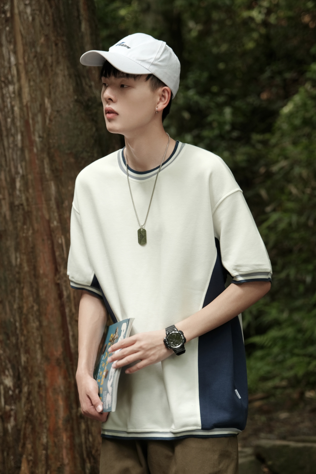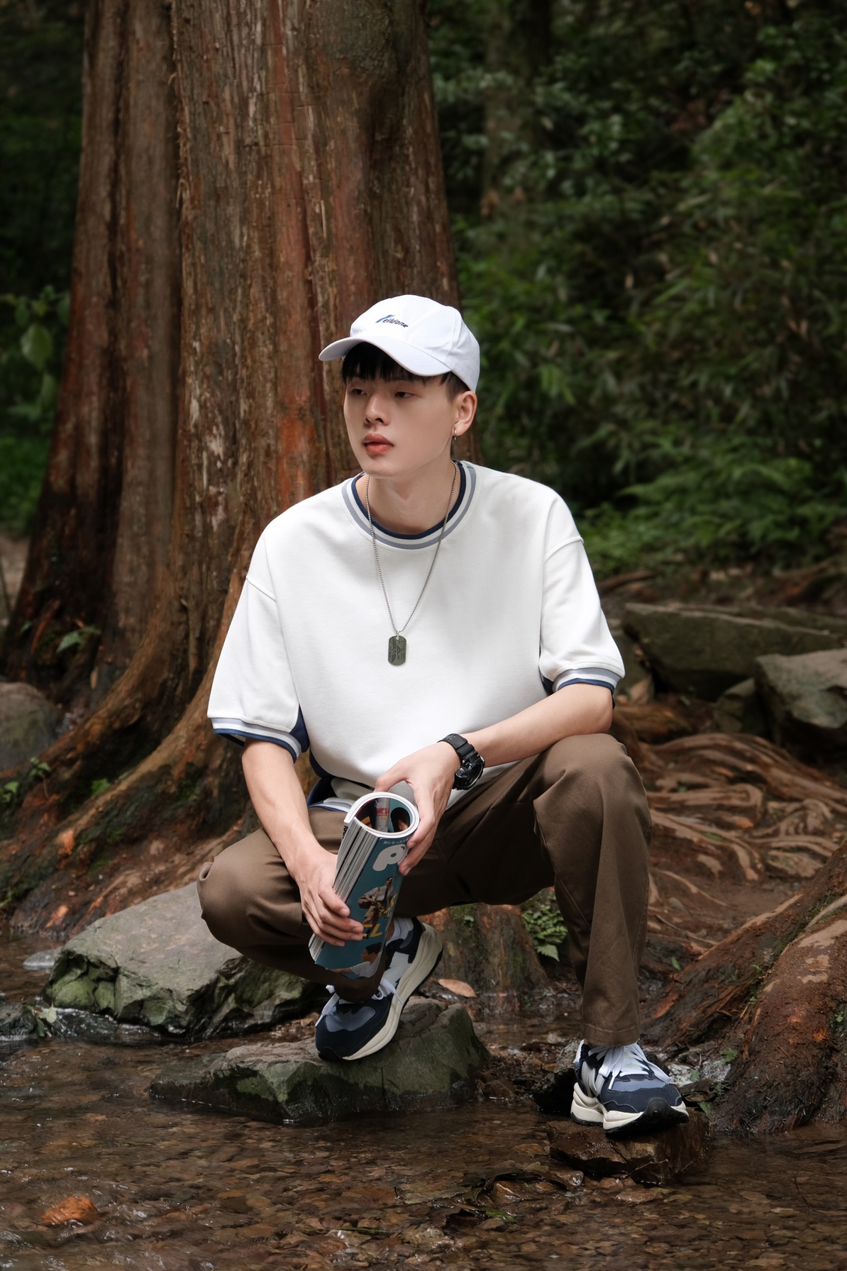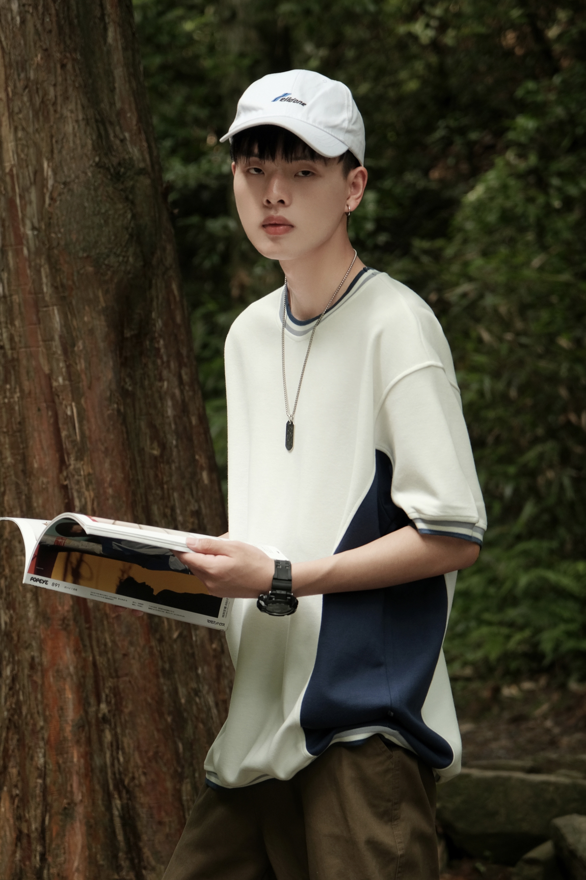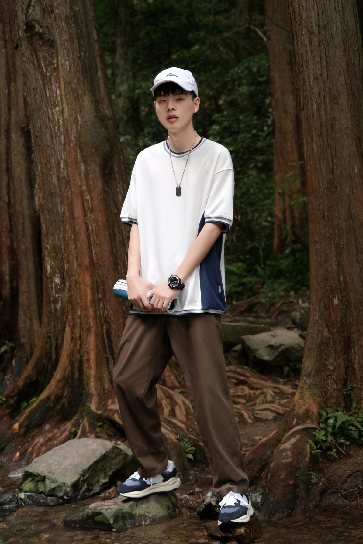 其实夏天的搭配真的挺无聊的,短袖短裤就完了你穿个长裤可能人家就会问你热不热🙃 为了避免尴尬,直接穿带点美式风格的拼接色块短袖,版型设计感到位了就行,太适合我们这种酷盖了~👦 上衣: RIMO 裤子: RIMO 鞋子: New Balance