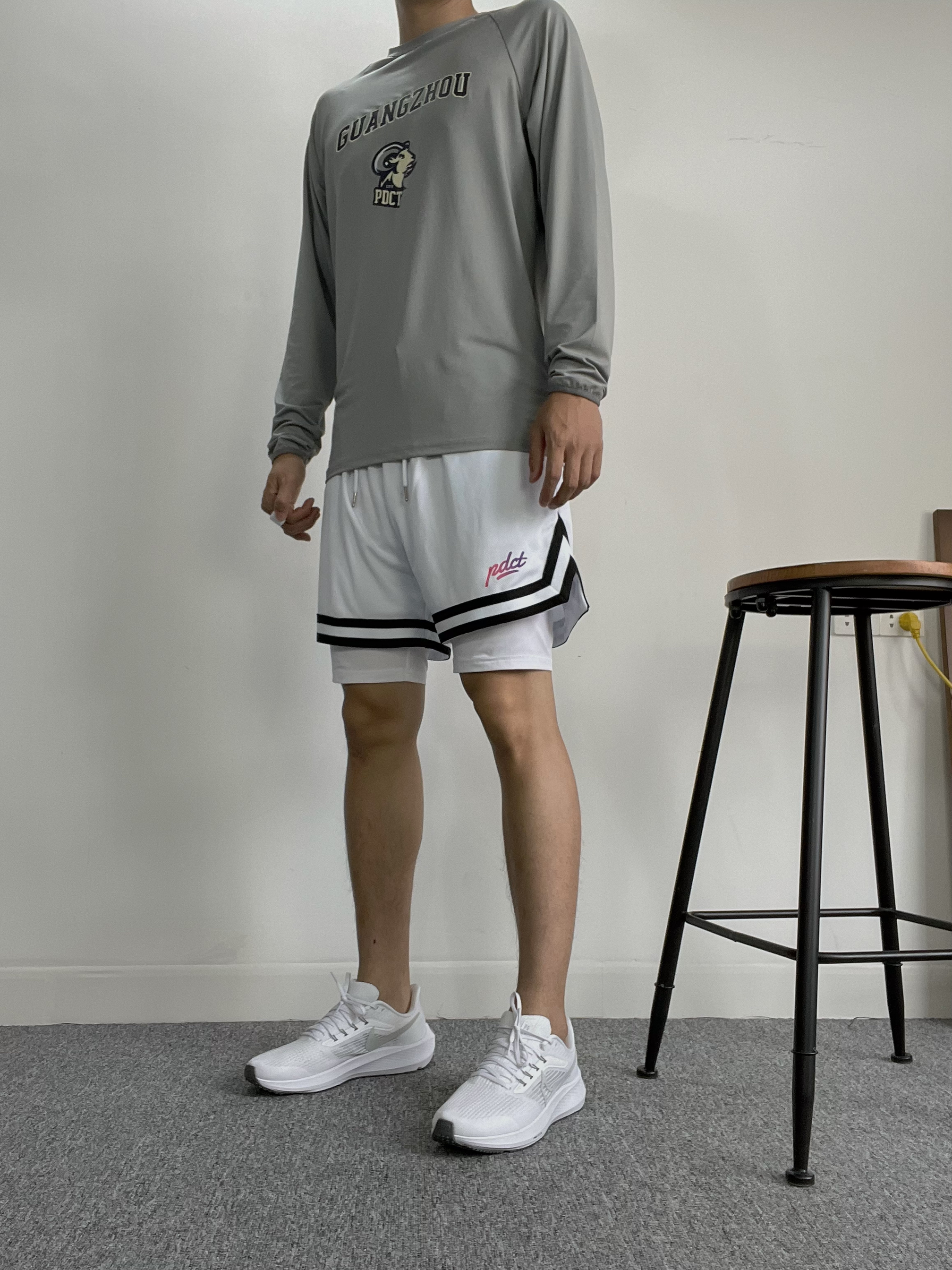 👔: pdct 运动长袖。采用速干排汗的聚酯纤维面料,插肩袖的设计可以让运动的时候无束缚感,前胸印花采用的耐水洗材质,舒适无硬物感 👖:pdct 美式运动短裤,别具一格的假两件设计风格,无论搭配什么上衣 都显得穿搭效果很赞,网眼面料材质也可以带来出色的排汗效果 👟: 今年耐克新发售的飞马39跑鞋,脚感依然在线,很不错哦