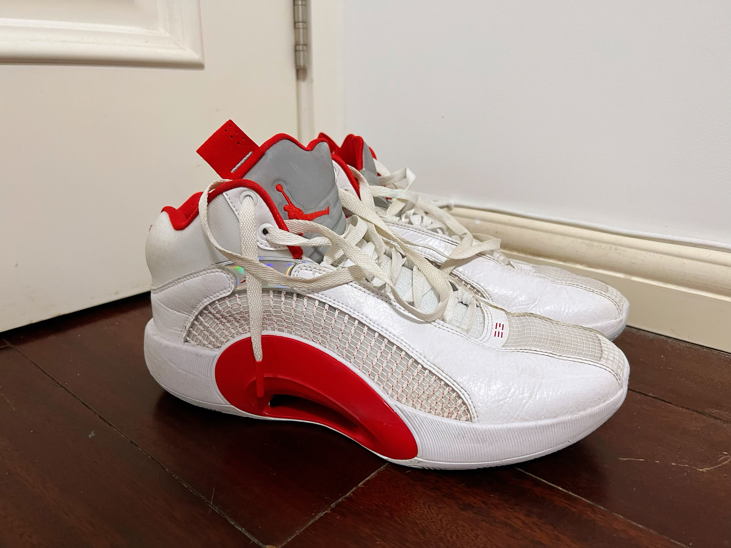 本篇笔记关联了Air Jordan 35 篮球鞋 可视Zoom防滑耐磨舒适减震时尚百搭包裹性支撑实战回弹 白色/红色/银色等商品,为用户提供真实的使用体验和购买参考。