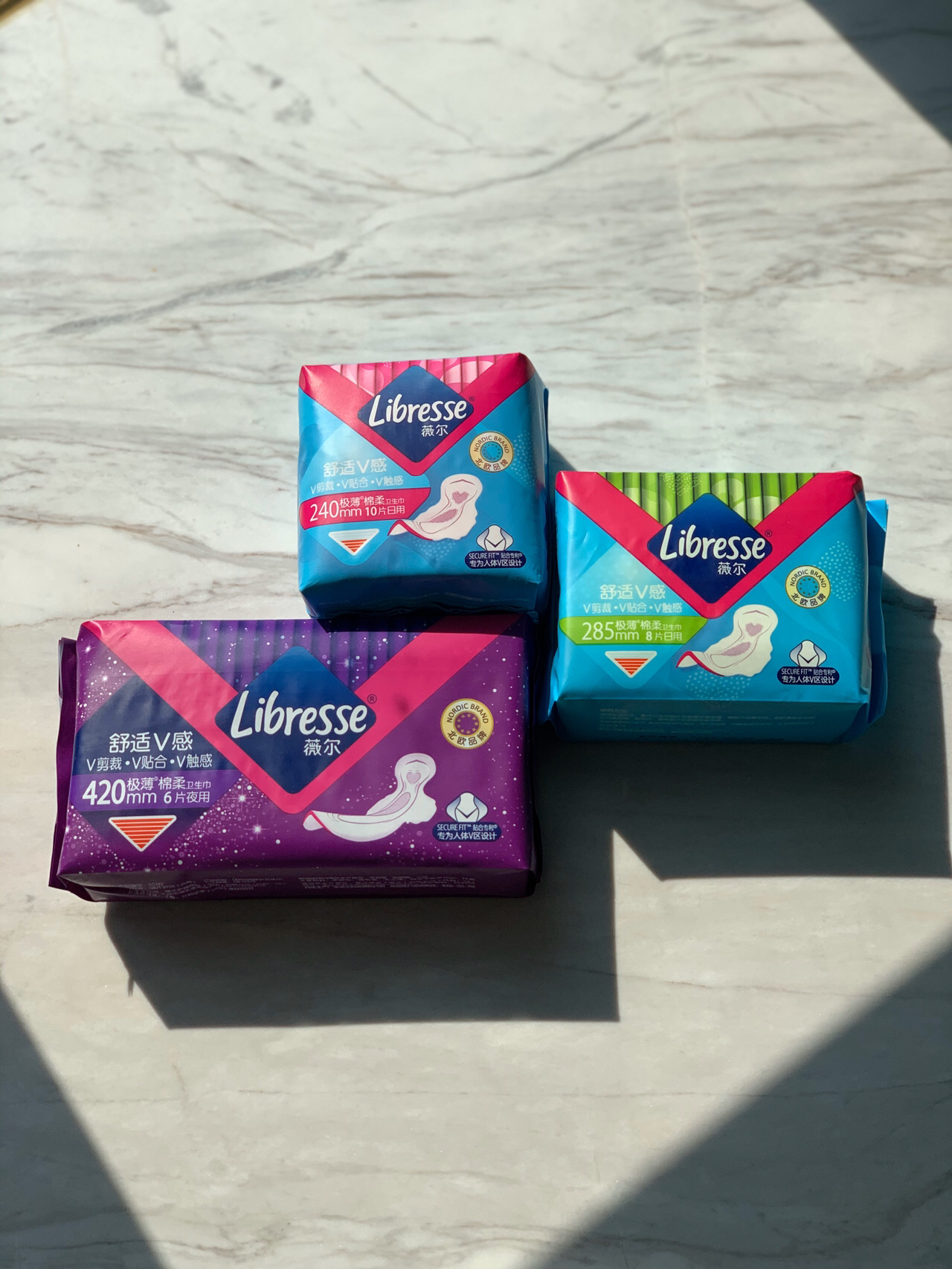 双十一快来了 购物车🛒满满当当 有种小时候读书考试前的焦虑感 . 给大家安利两款我喜欢的姨妈巾 💜Libresse薇尔 北欧小V巾 北欧第一☝🏻的品牌 形状超级特别 - 是拿了专利的设计哦 超人性化的v尾和收腰设计 一是保证我们在动的时候也很贴合 二是穿紧身裤或者是打底裤也不怕尴尬 💜材质是细腻亲肤的蚕丝面料 并且吸收力非常强大 完全不输给那种液体卫生巾 💜这样的一组设计就是给一次生理期的量 两种...