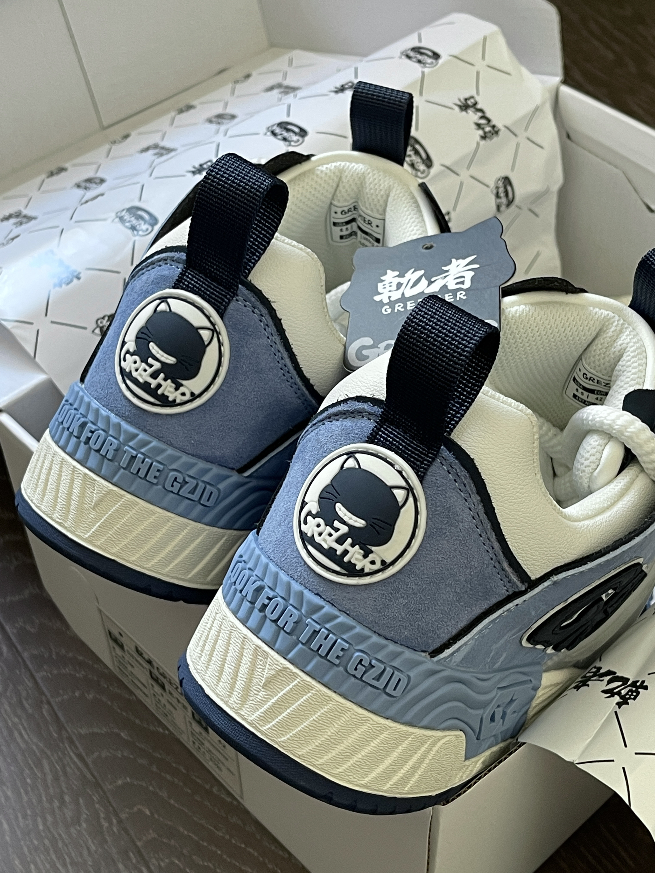 之前其他配色抽签都没中 中了一双还因为超时没付款 终于有了第一双面包鞋(开心) 也许这双不是一眼惊艳的配色 但是这个牛仔蓝是真的复古也是真的百搭呢 这双鞋圆圆的好Q!但是并不会显脚大! 配牛仔裤!配短裤的效果都是顶呱呱