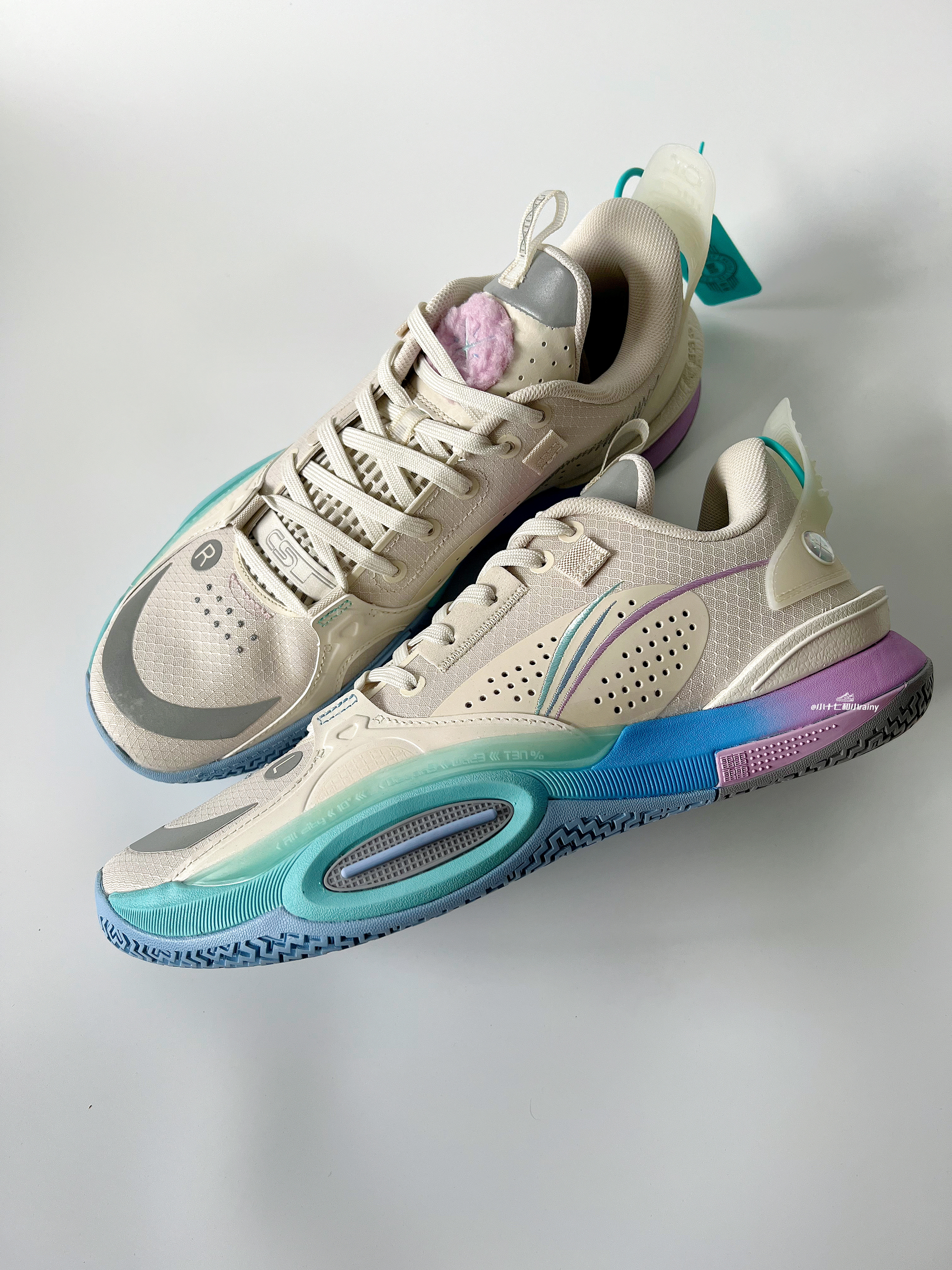 💬安利原因 今天给大家带来的是这双,又好看,又功能强大的,全城10,实战篮球鞋! 👟实物质感 鞋身整体采用格纹网布材质,前掌两侧添加皮革材质进行补强。 鞋头和鞋舌位置采用反光材质,鞋头位置10个刺绣点代表10代,贴心的在左右脚上分别印有“L”和“R”来区分,CST是Creativity Shapes Tomorrow的缩写。 共使用7组鞋带孔,按照受力不同,采用多种形状。 最后的这个鞋带孔是...