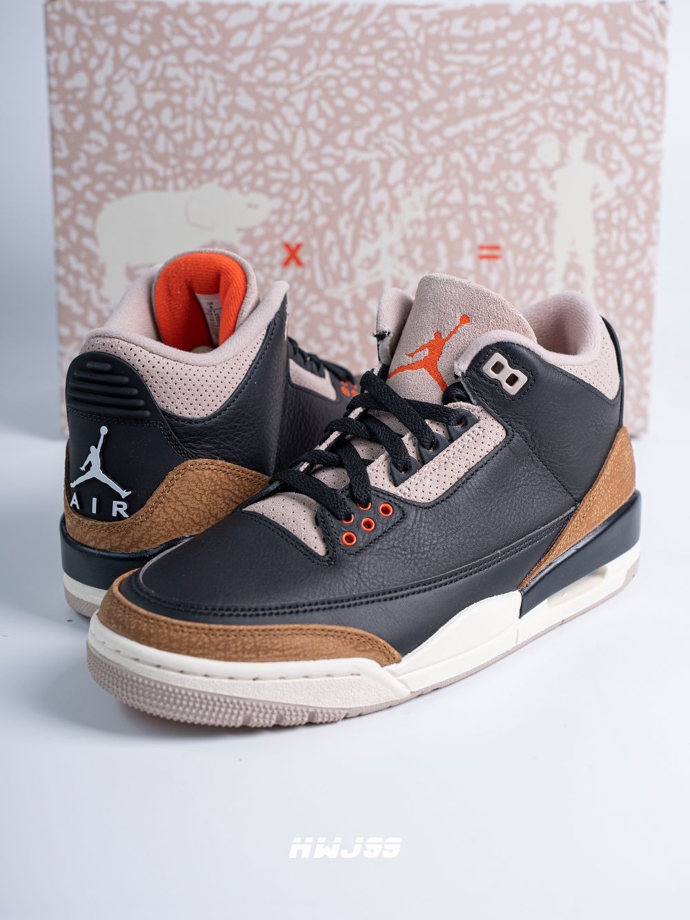 今日推荐这款Air Jordan 3'Desert Elephant' ,该鞋款整体采用黑色优质皮革呈现, 以此致敬1994年发布的“Black Cement"经典配色;同时爆裂纹以沙漠棕色呈现, 彰显复古美学。鞋子整体颜值还是质感都是非常出色的。 让我疑惑的是在夏季发售,的确有点闷热,但是在秋冬季穿着就完全没有这个问题了!好在目前价格非常香。
