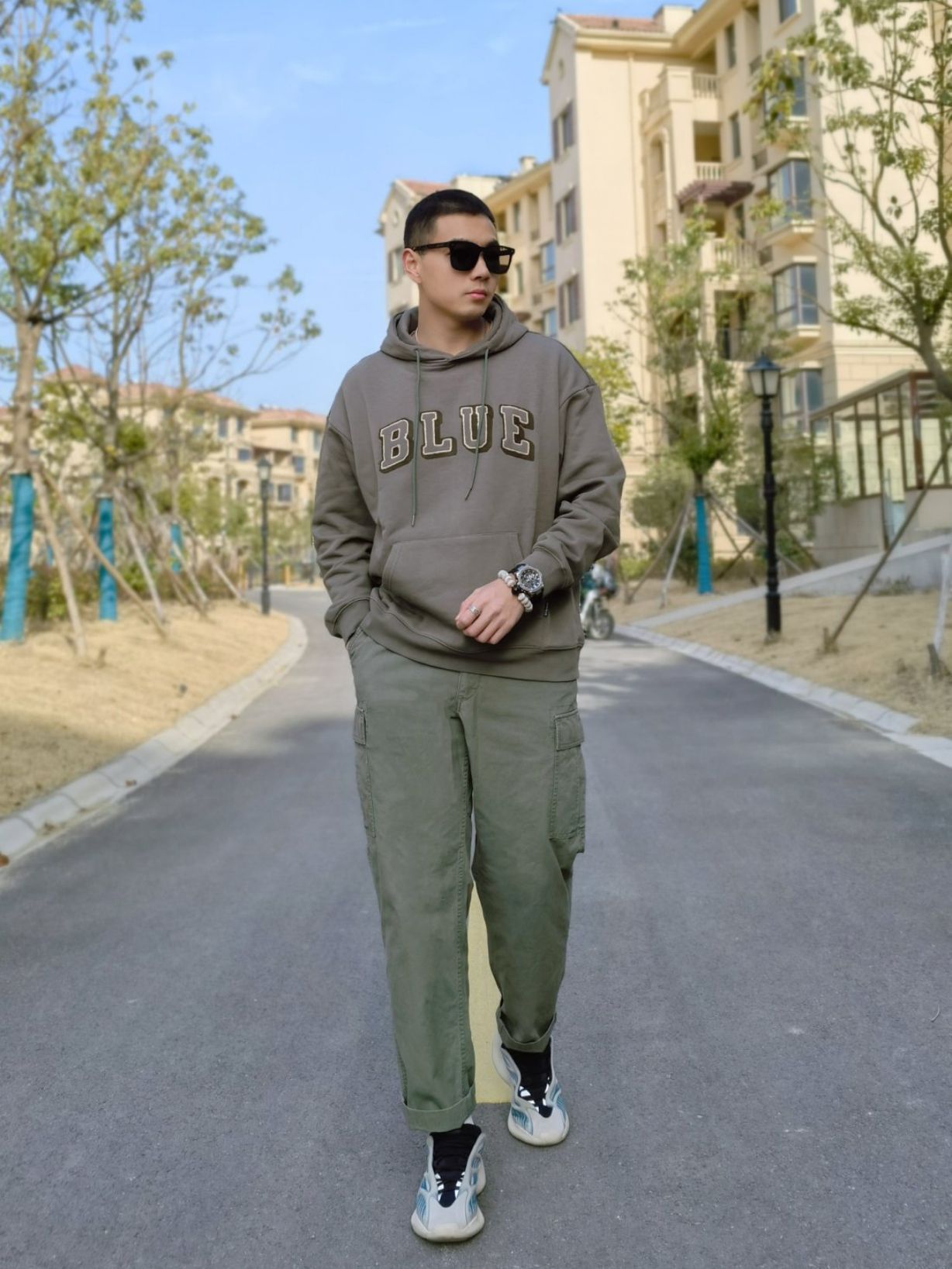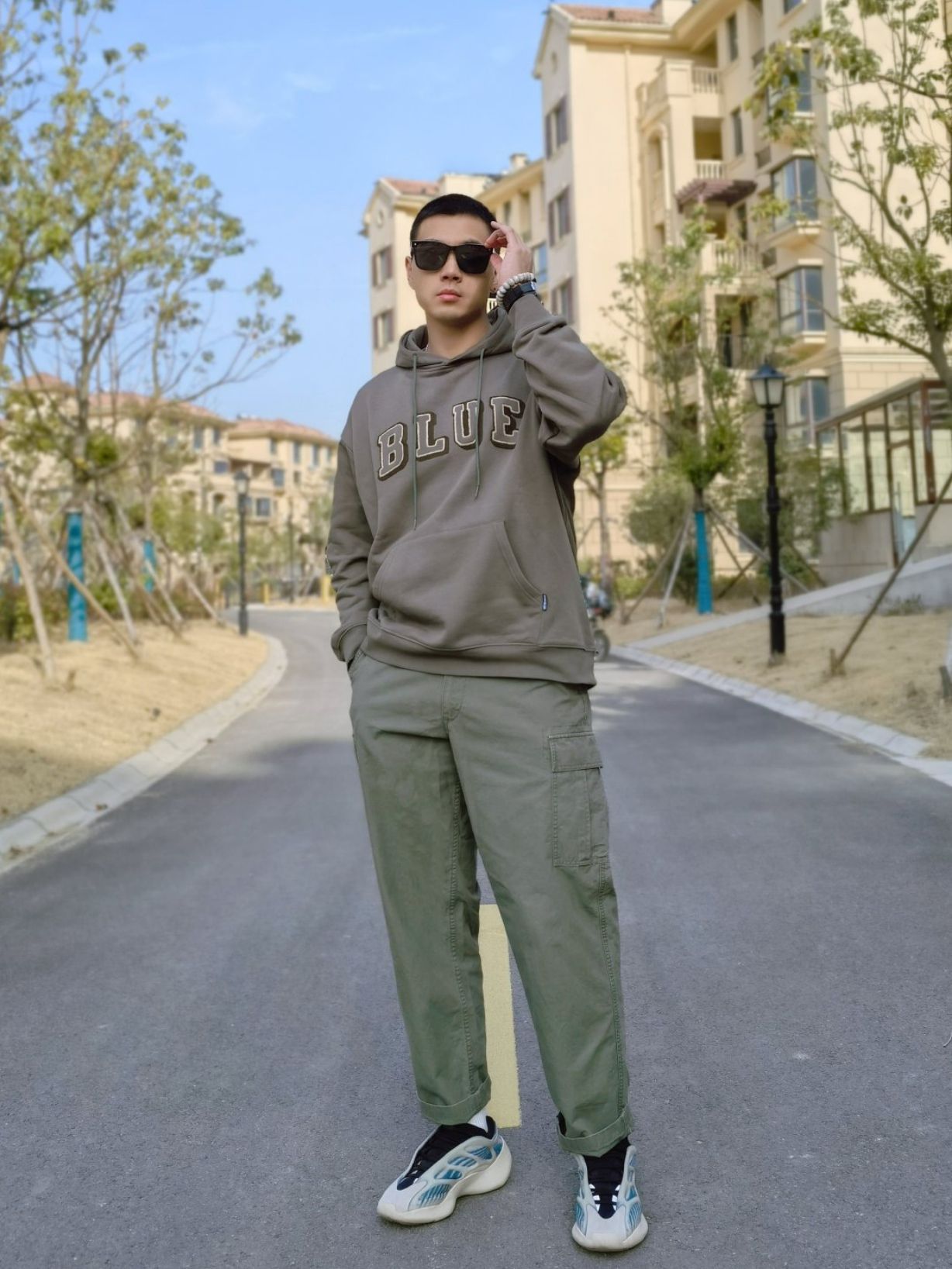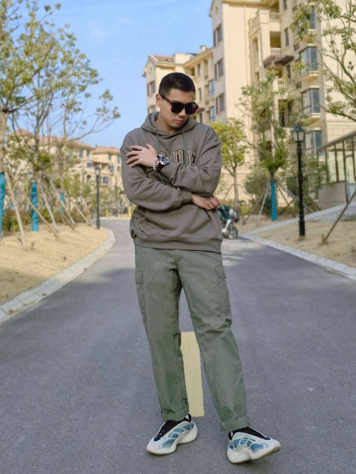 hello 大家好,这里是撒旦锅锅 💗179cm/80kg 🌞今日穿搭为潮酷休闲风 搭配类型:墨镜+连帽卫衣+工装裤+YEEZY 今天主打绿色风格,绿色连帽卫衣加绿色工装裤,配上一双YEEZY 700,潮酷休闲风十足~ 而今天的点睛之笔就是木九十的这款无序契约墨镜了,经典的大方框黑超墨镜,非常百搭,不挑脸型,男生女生都可佩戴,3月4号得物就发售啦~潮酷风满满~ 今日穿搭 🕶️:@MUJOSH木九...