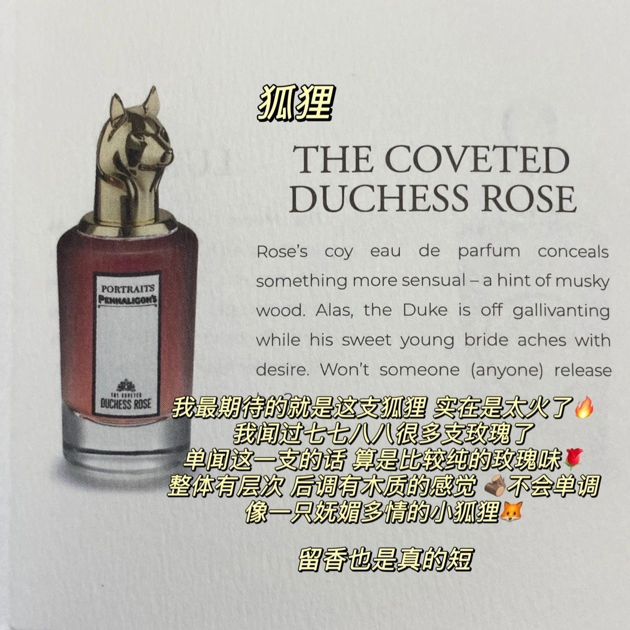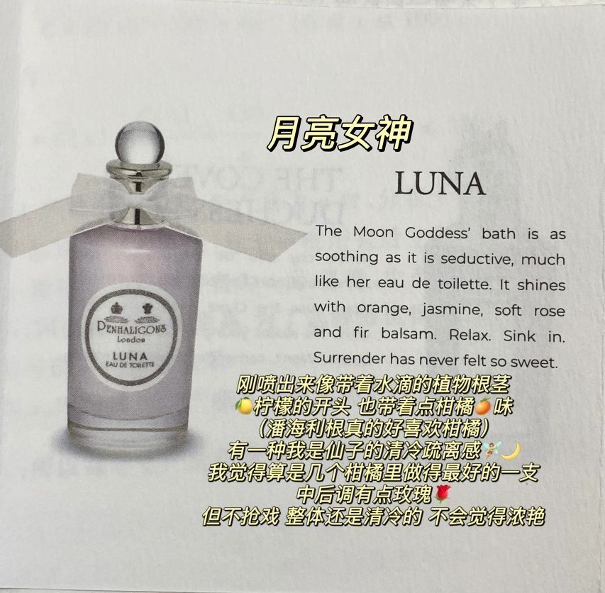 本篇笔记关联了Penhaligon's/潘海利根 肖像兽首家族系列中性香水 玫瑰公爵小姐的望眼欲穿 狐狸 浓香EDP、Penhaligon's/潘海利根 英伦隽永系列女士香水 女王的耳语 浓香EDP、Penhaligon's/潘海利根 英伦隽永系列女士香水 月亮女神 淡香EDT等商品,为用户提供真实的使用体验和购买参考。