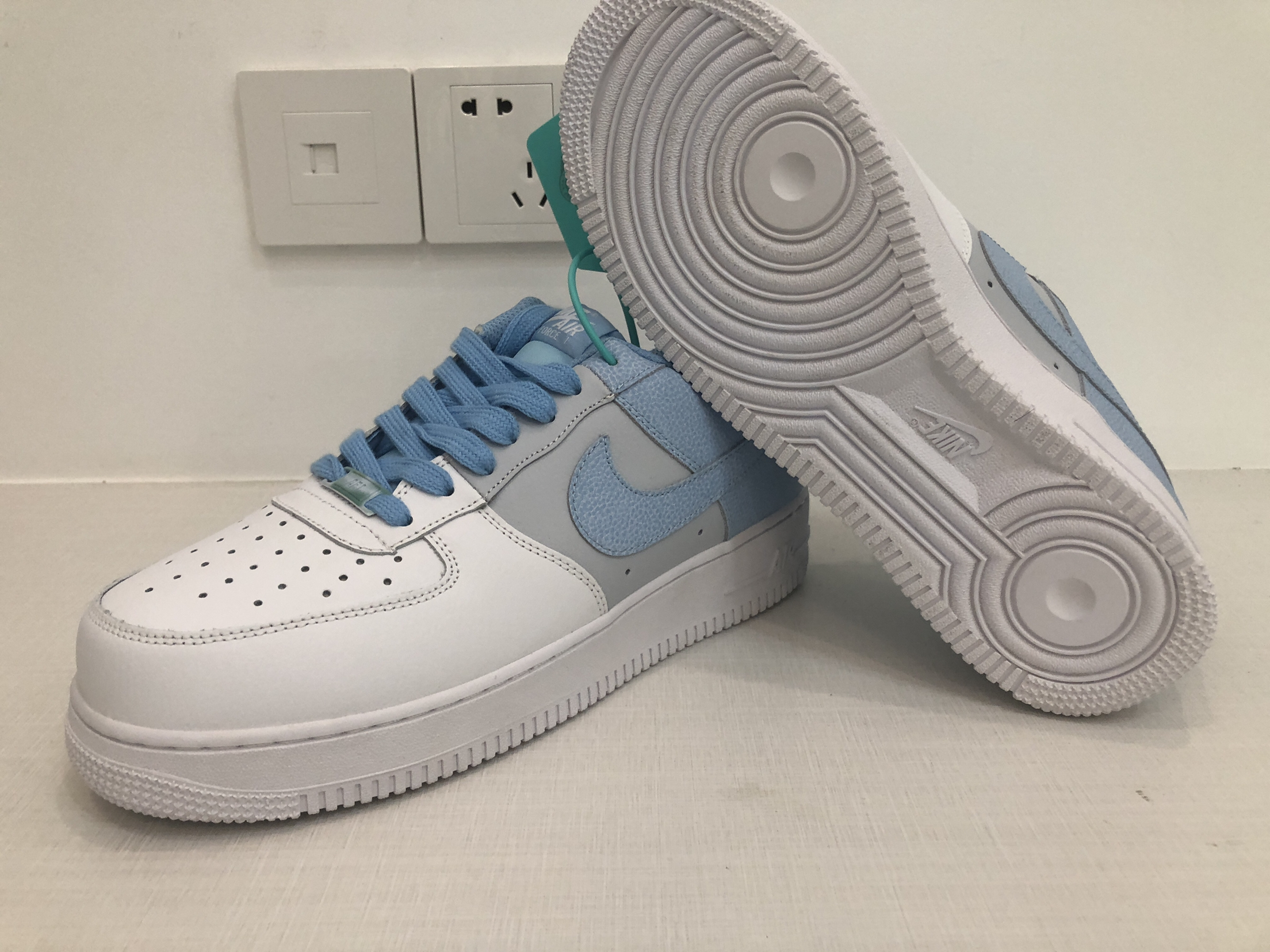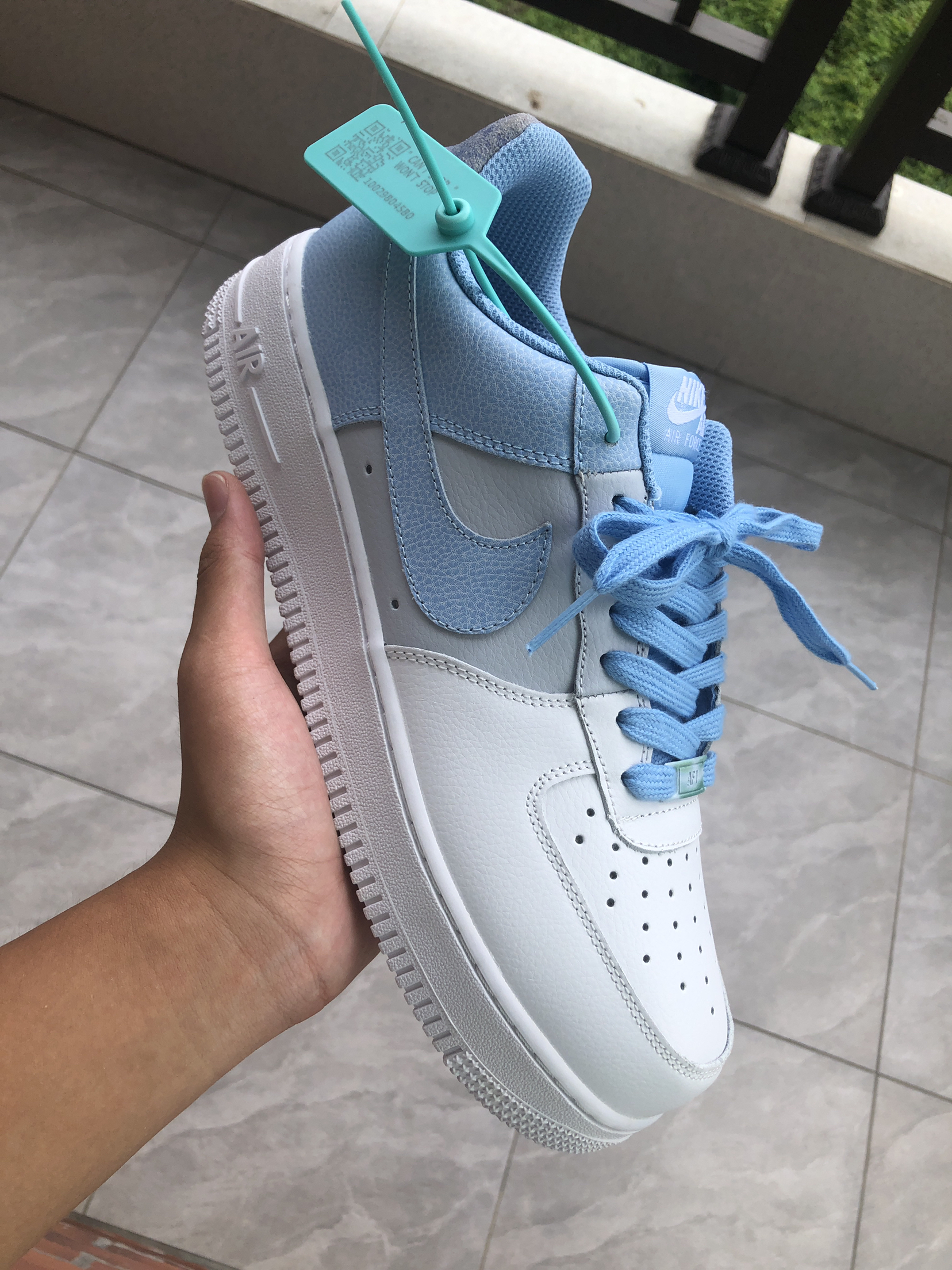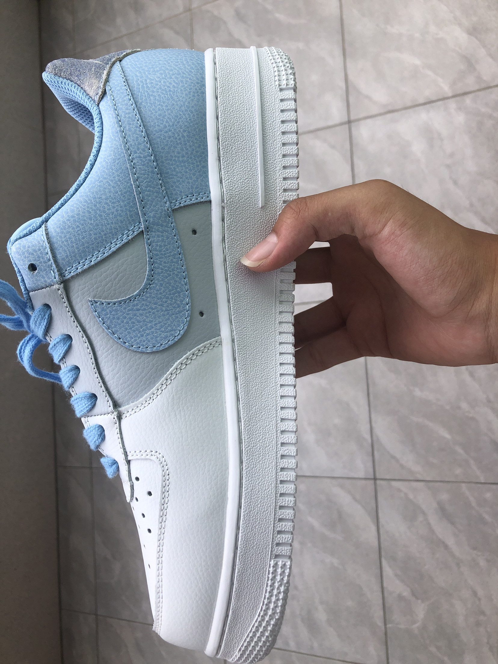 👟球鞋名称:af1 白灰蓝 🔍分享理由:很百搭 🤔整体感受:整体颜色非常小清新 非常百搭