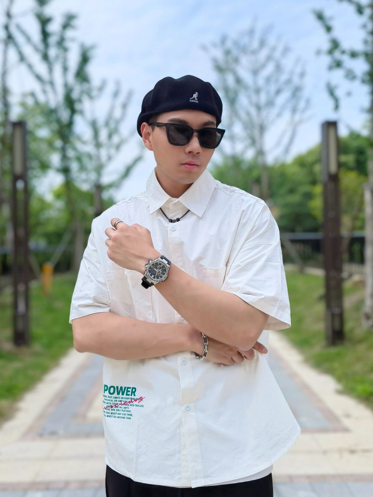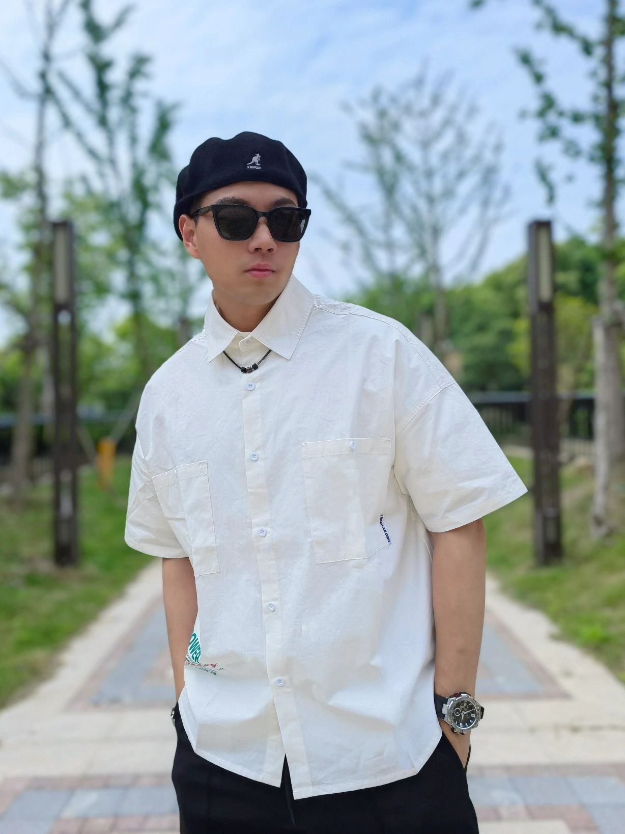 hello 大家好,这里是撒旦锅锅 💗179cm/80kg 🌞今日穿搭偏潮酷休闲风格 搭配类型:短袖衬衫+休闲裤+休闲鞋 今天属于黑白穿搭,搭配起来很帅气,白色短袖衬衫搭配黑色休闲裤,黑色贝雷帽与裤子做一个黑色的呼应,潮酷风满满💯 ⭐穿搭技巧:佩戴首饰可以增加整体穿搭的层次感,今天搭配的阿玛尼EMPORIO ARMANI项链就很适合今天的搭配,为我的潮酷穿搭增加了亮点,黑棕色的挂坠时尚个性,也很简...
