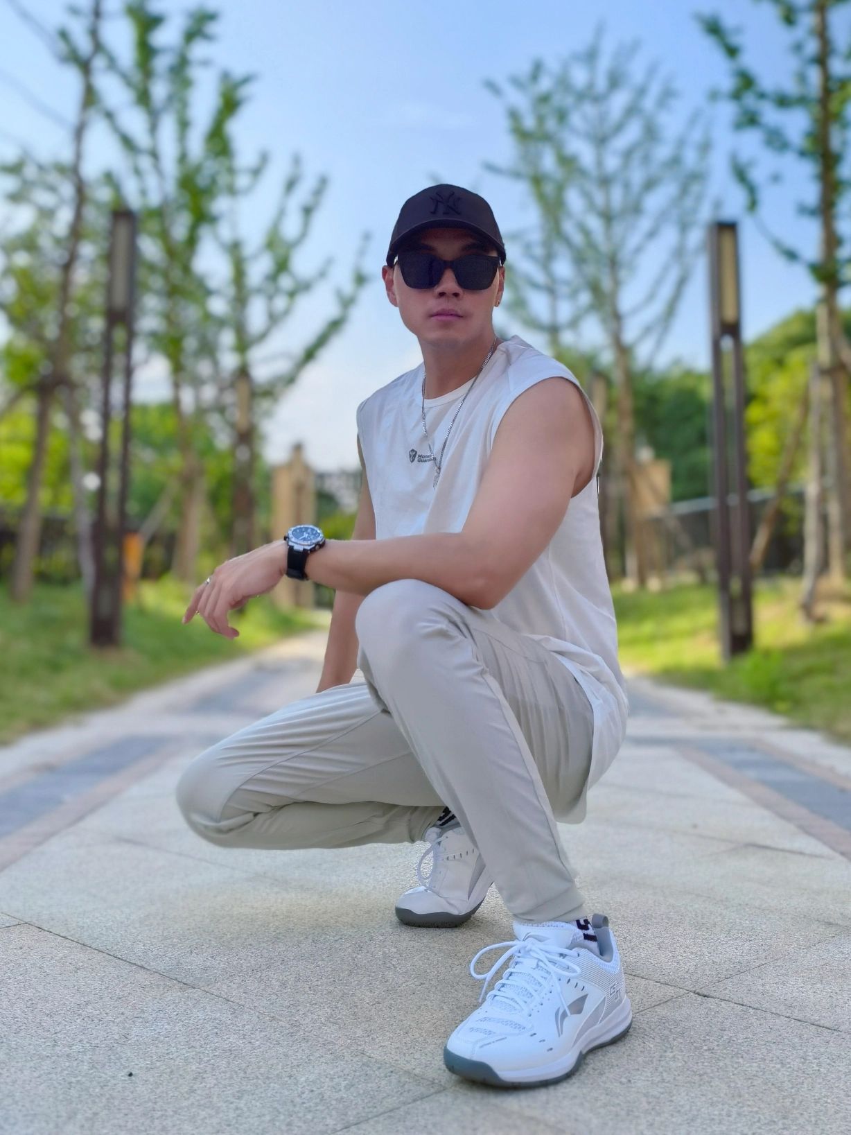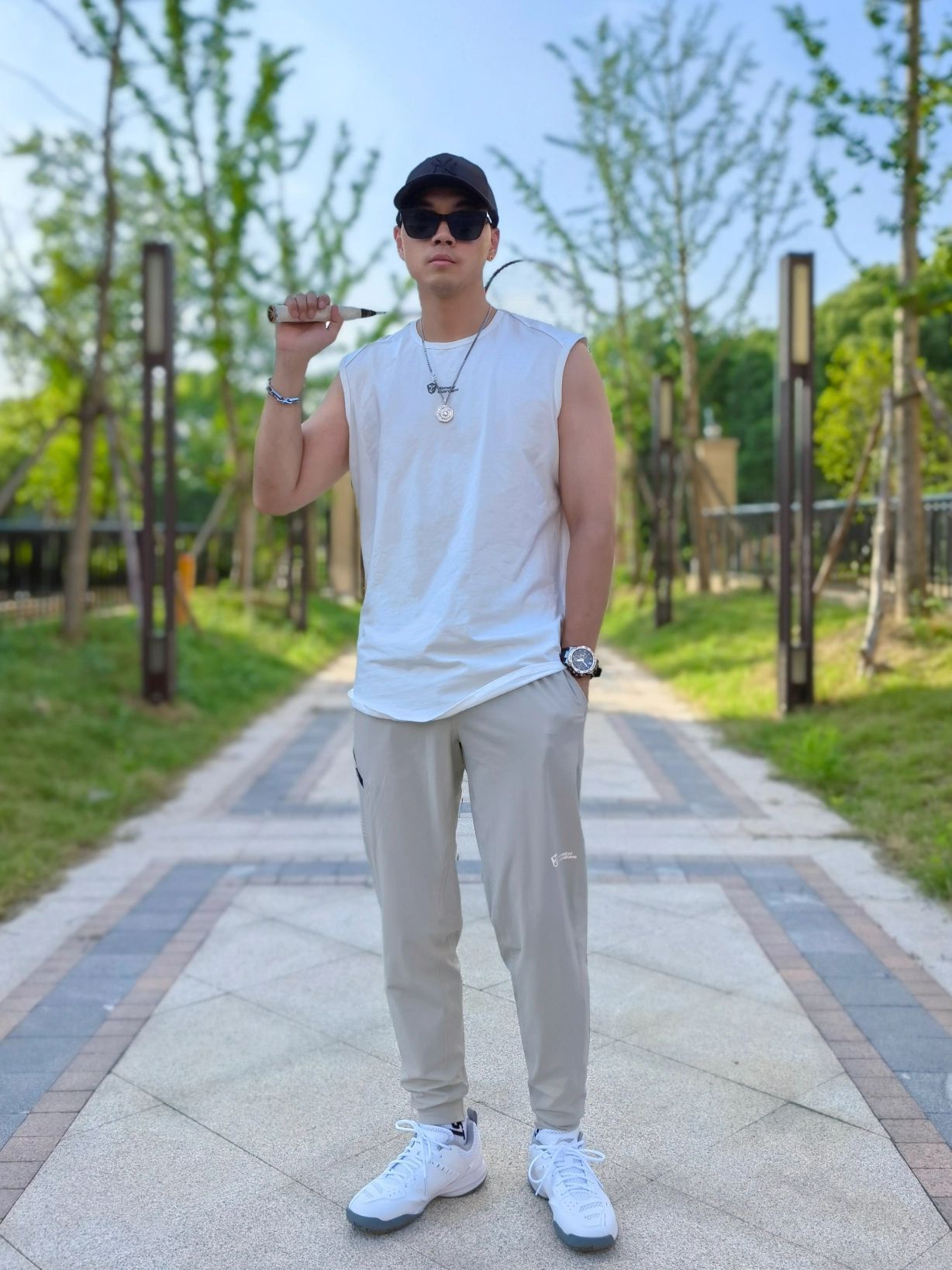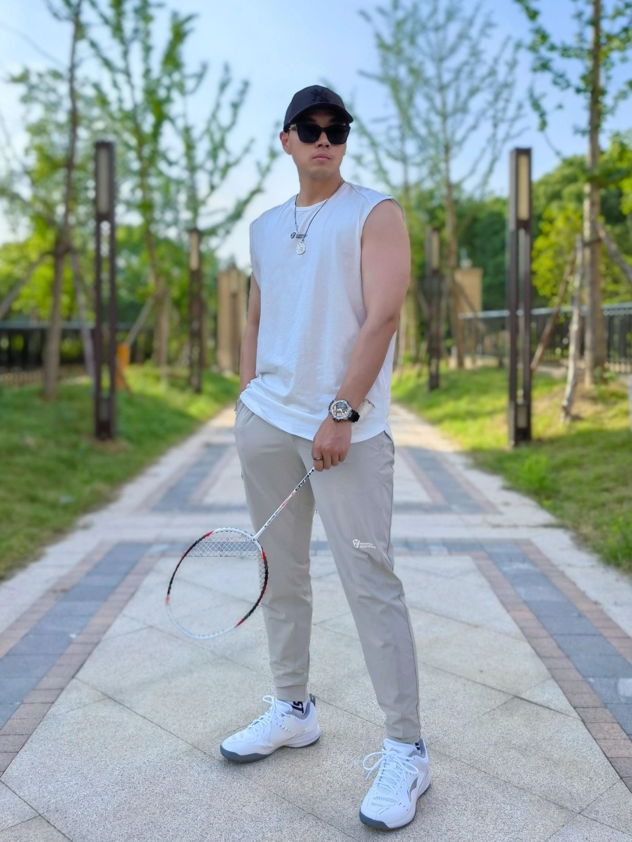 hello 大家好,这里是撒旦锅锅 💗179cm/80kg 🌞今日穿搭为运动潮酷风格 搭配类型:背心+运动裤+羽毛球鞋 今天穿的运动健身背心和运动裤,上身很舒服,搭配羽毛球鞋,运动风十足,拿着我的羽毛球拍去打球啦~