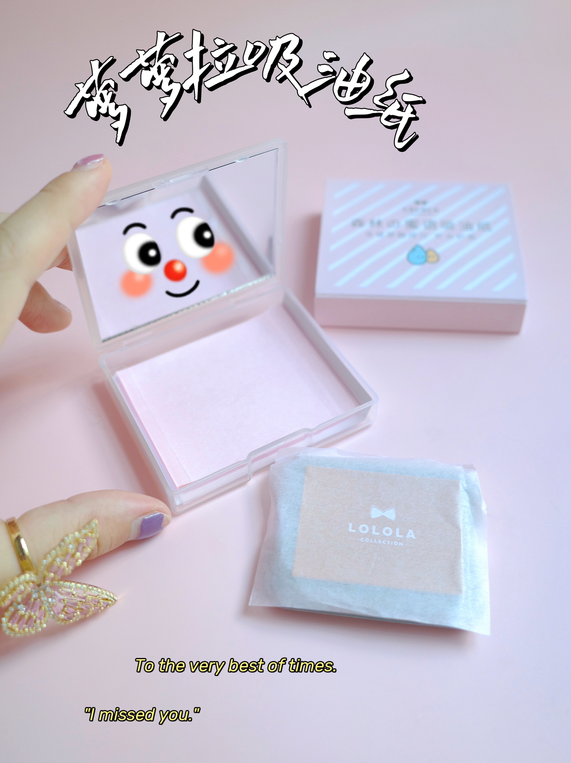 种草了一款自带粉扑的吸油面纸~面纸材质是植物纤维和纸,光滑柔韧!抹脸温和不吸妆。我入的粉色这款融合了玻尿酸,还有另外一款绿色是融合了茶多酚喔~ 它的设计太棒了!小盒子里配有小镜子和粉扑,外出使用好便捷!平常可以对着镜子补妆吸油,粉扑上还有黏胶,无需用手接触吸油面纸,一粘一按就搞定了~真的是方便又卫生啊,我这阵子外出都少不了它!