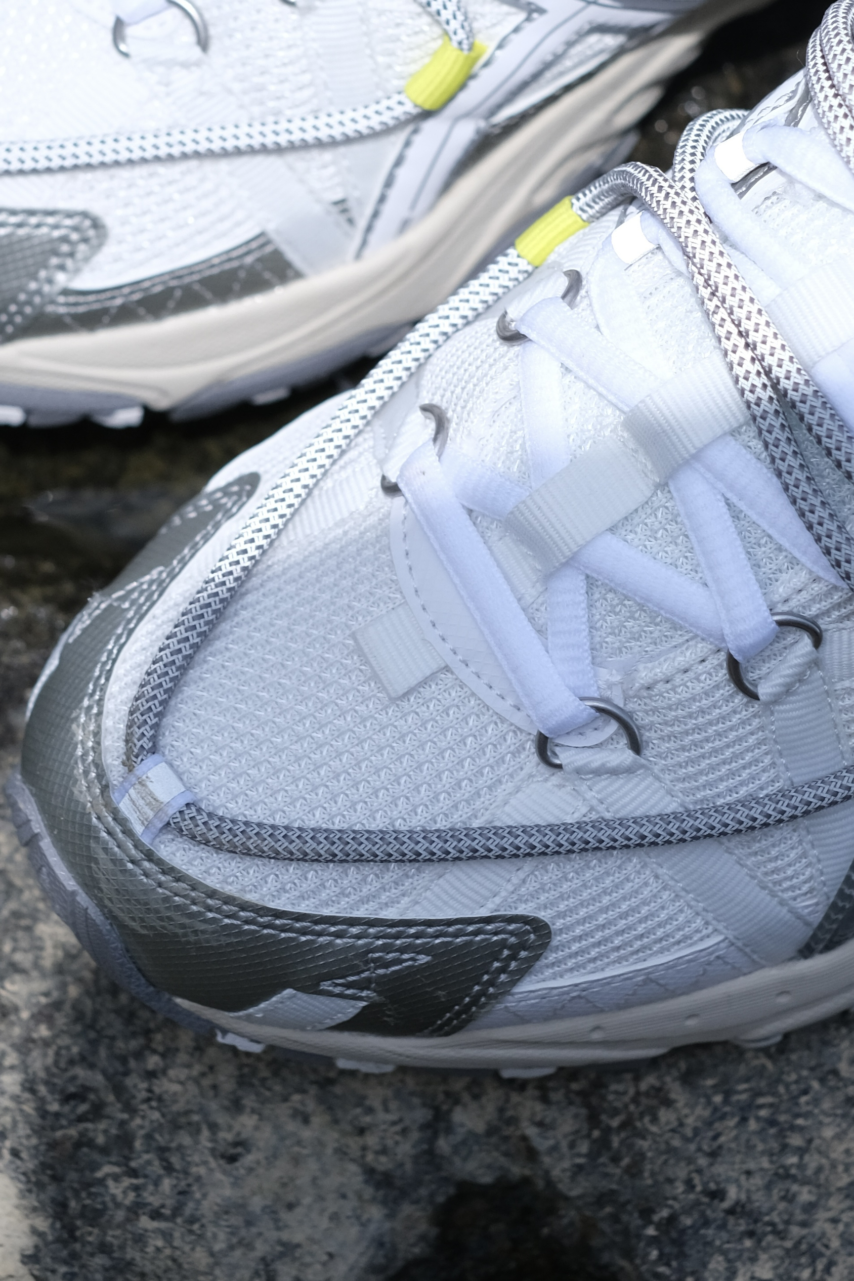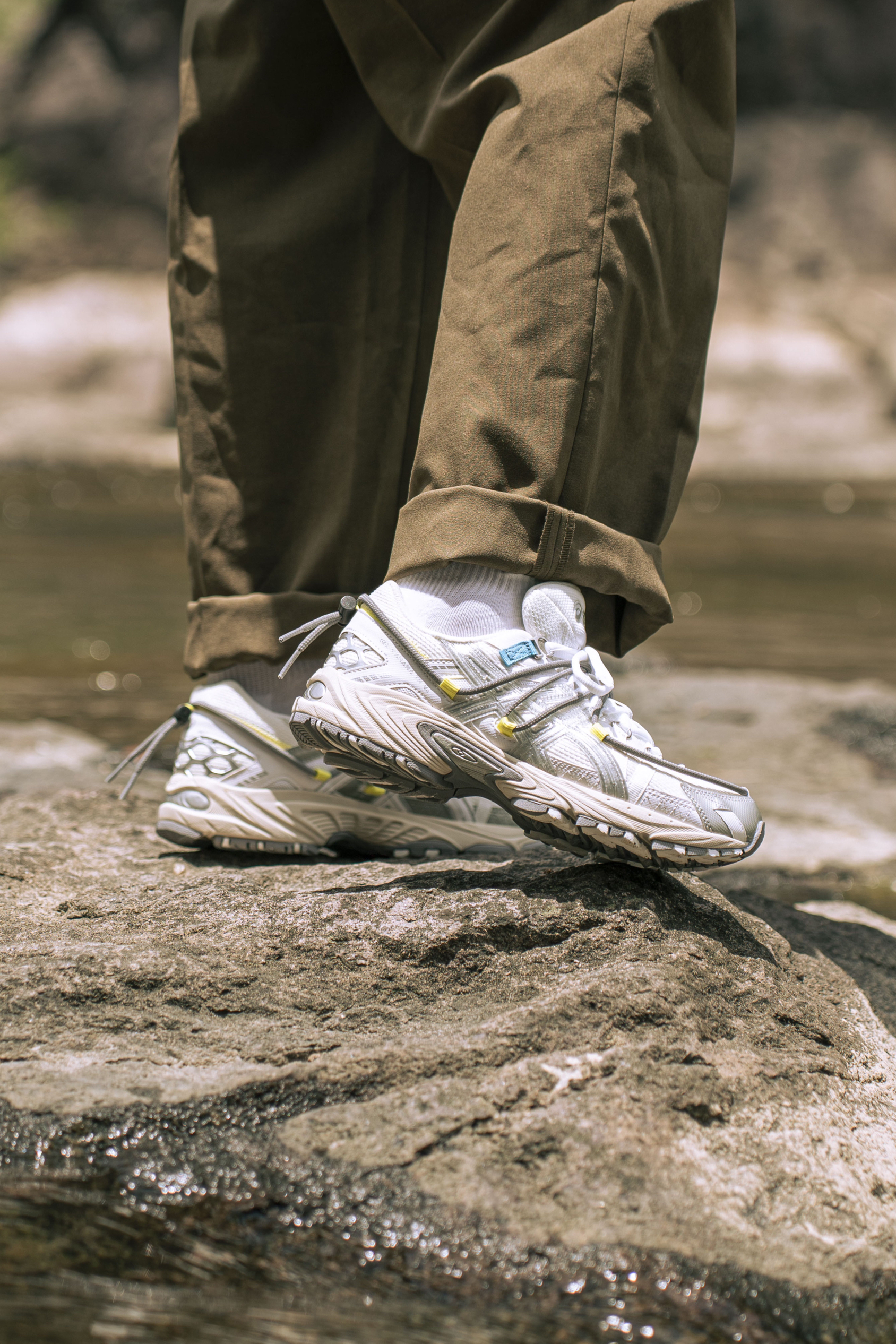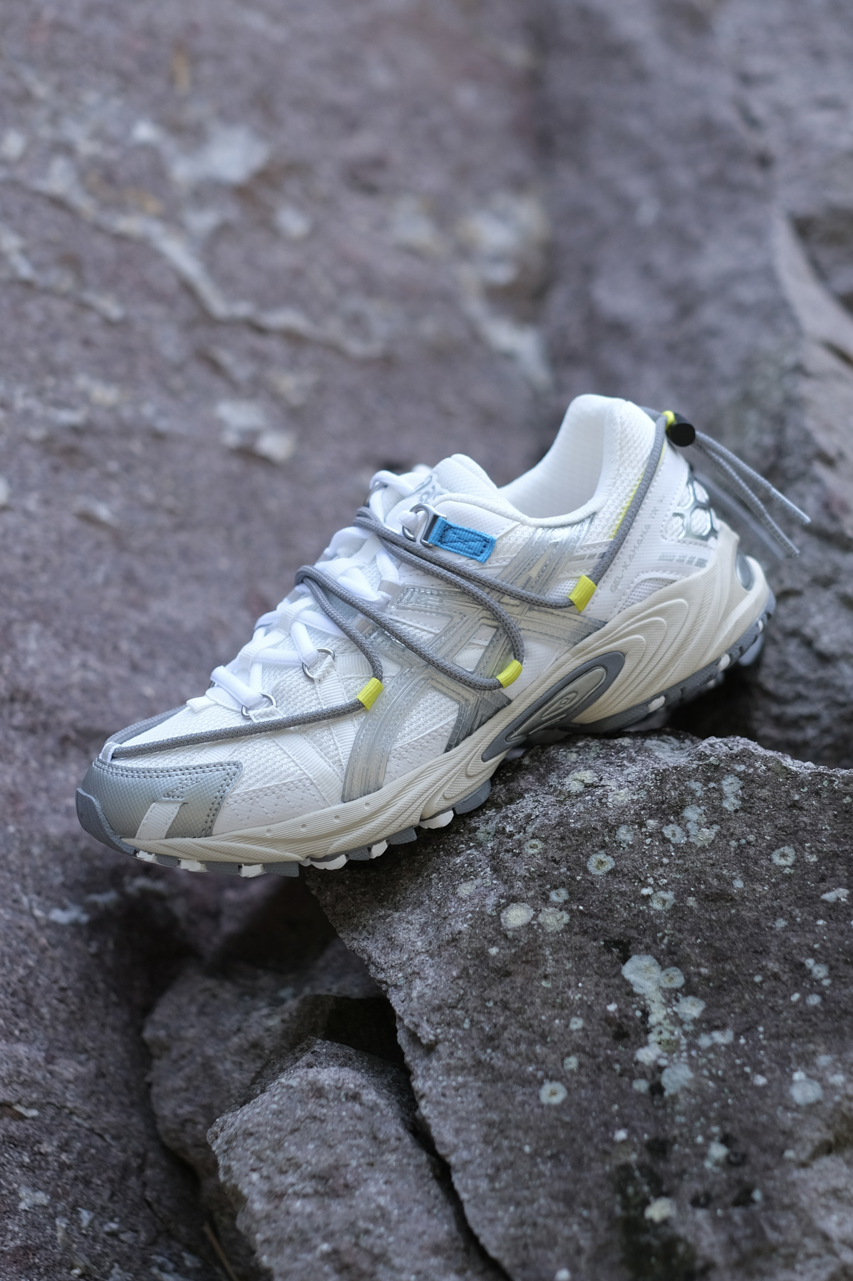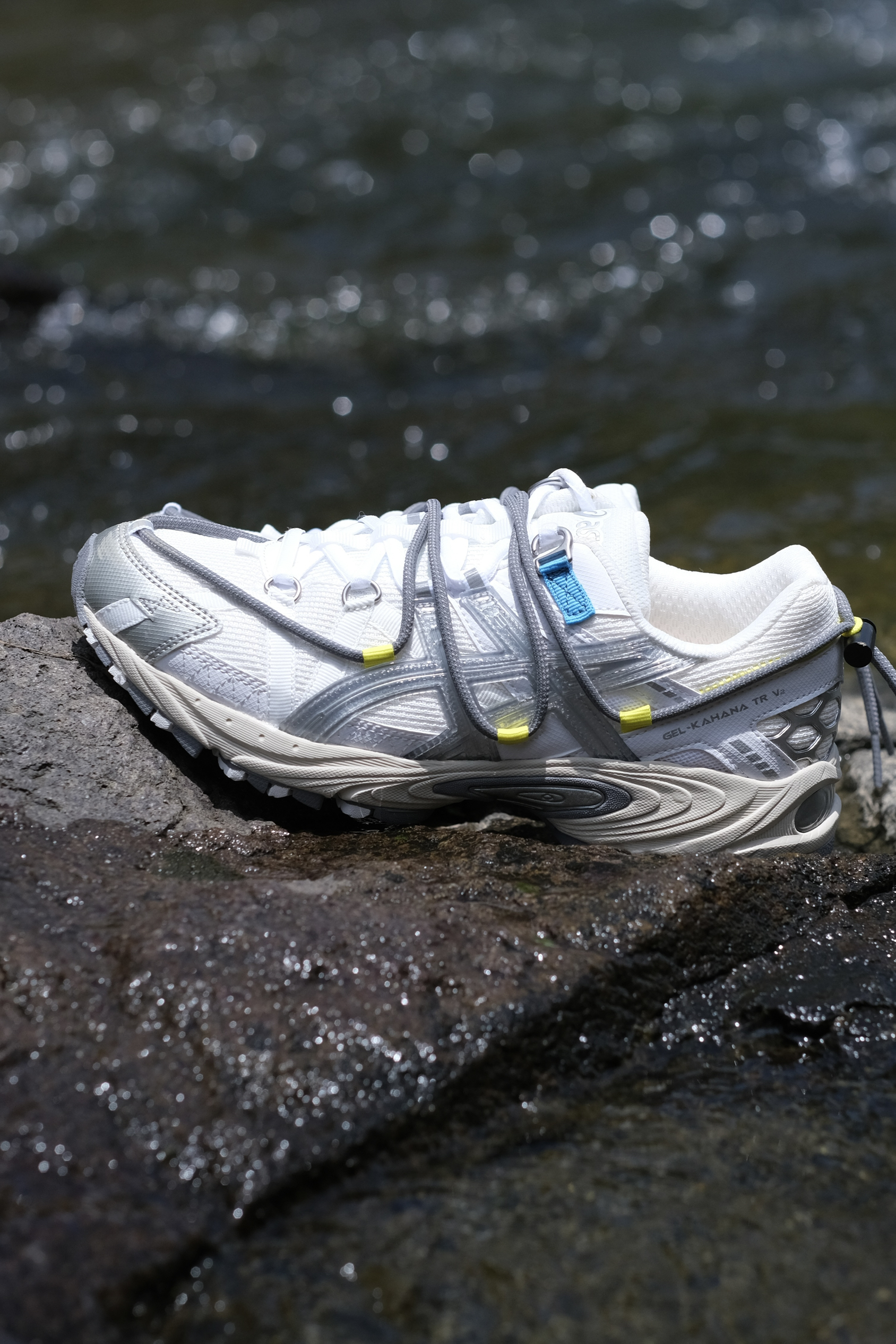 夏日百搭球鞋,复古和机能完美的融合,就是这 双ASICS KAHANA TRV2。 整双鞋外观设计上延续延续了KAHANA TR 系 列列鞋型,不同的是鞋面加入解构鞋带设计,贯穿 整个鞋面3M反光鞋带,让整体更具层次感与视 觉辦识度。 挂钩扣的鞋带孔设计,户外机能。鞋面采用了白 色和银色的主色调,加上复古的氧化做11日的中 低,非常百搭且适合夏日。这双鞋与Anderson Bell x ASICS...