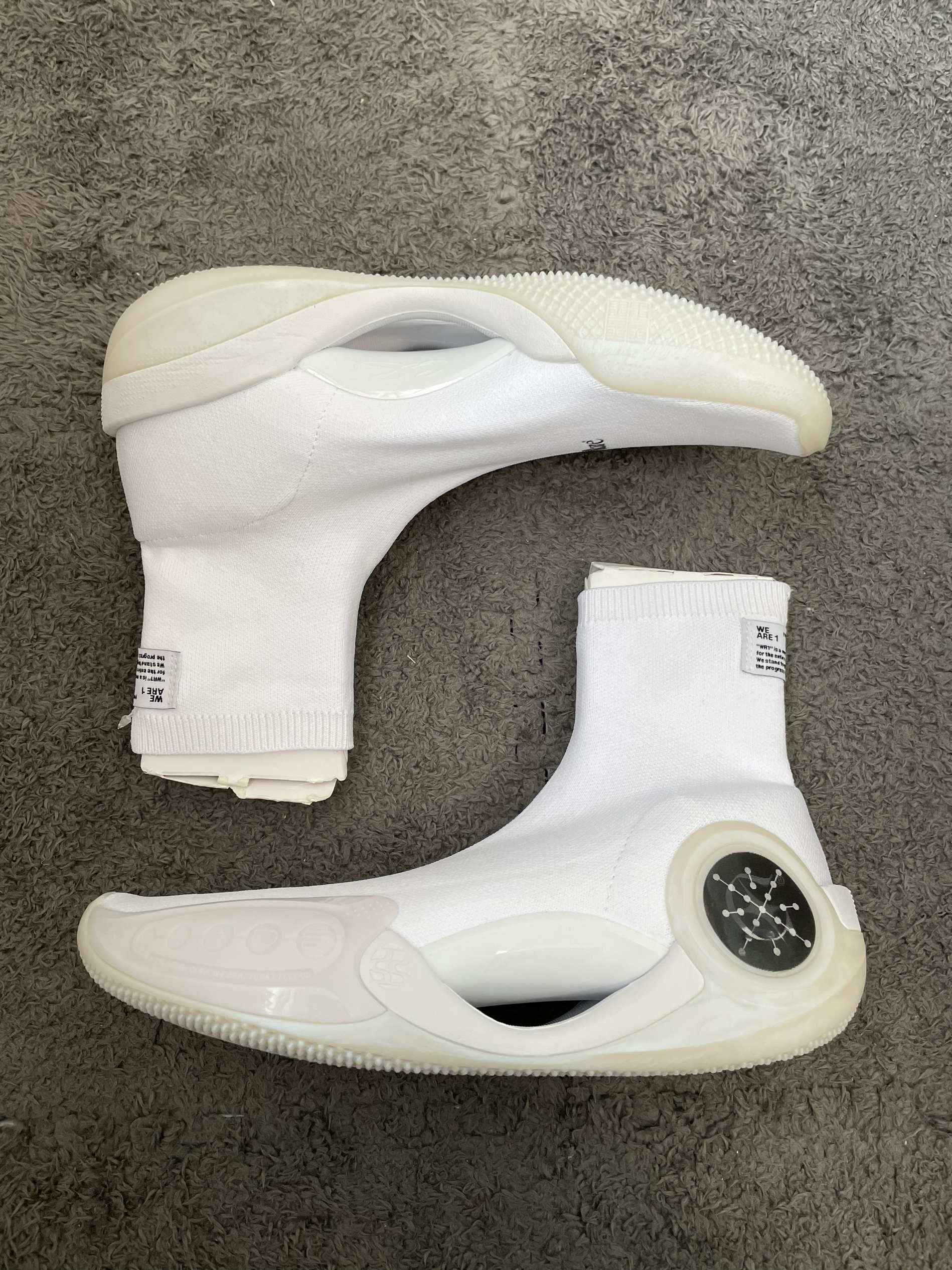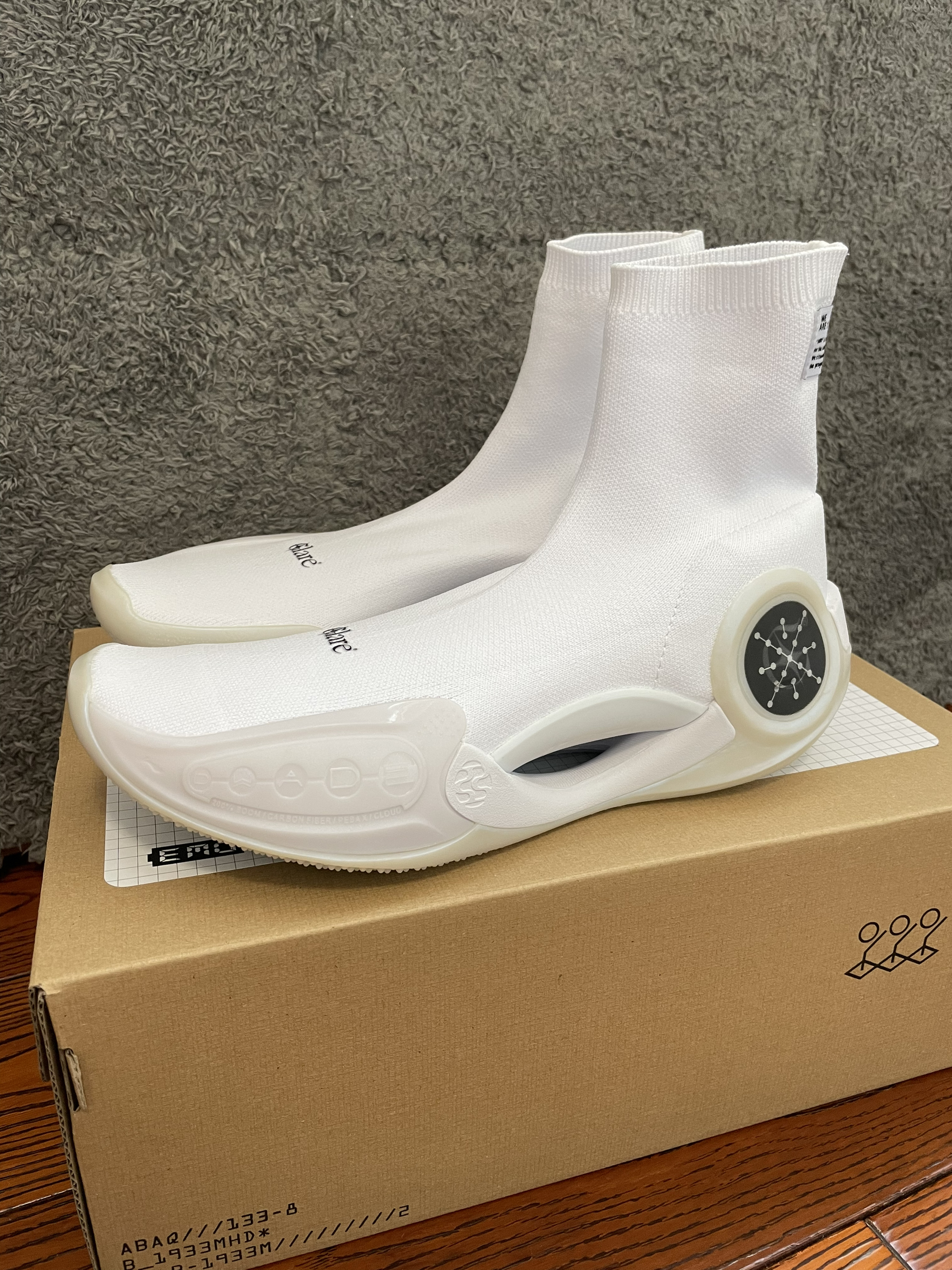 有没有人能够Get到这双球鞋的潮流感 做为一双和国内艺术工作室联名的球鞋 肯定是带有一定的艺术或者潮流成分 不过目前并没有听到正式一点的消息 这双鞋的一个袜套设计的夸张程度 并不比之前的韦德9折纸的高度低了 除了鞋头处的Glare图案和鞋后跟的联名主题标签 鞋身基本上没有任何可以体现出这次联名的设计了 我认为这双鞋的这种超简洁的设计 带来的视觉效果真的有点寡淡 不过韦德9的所有中底科技和材料都还是...