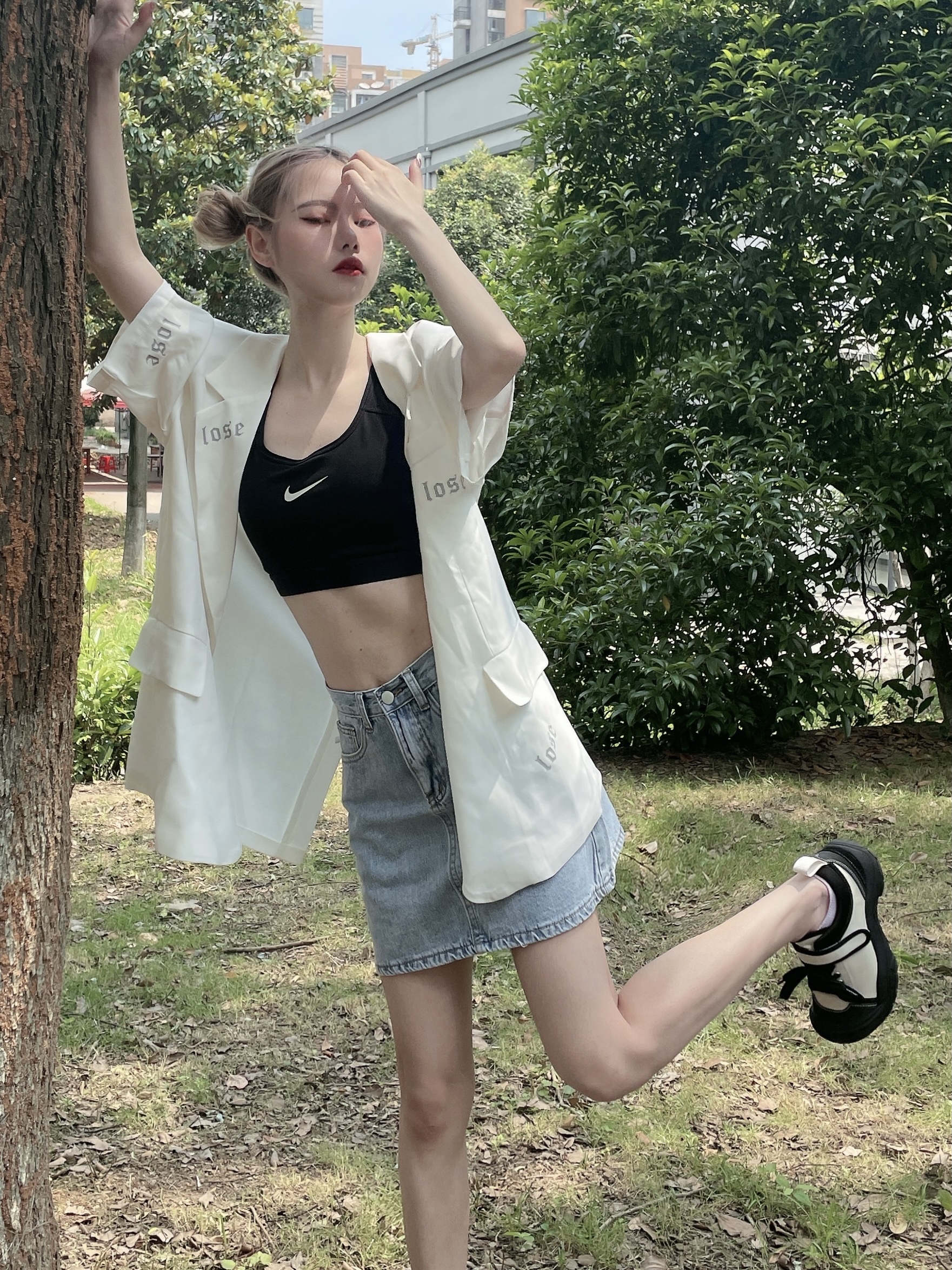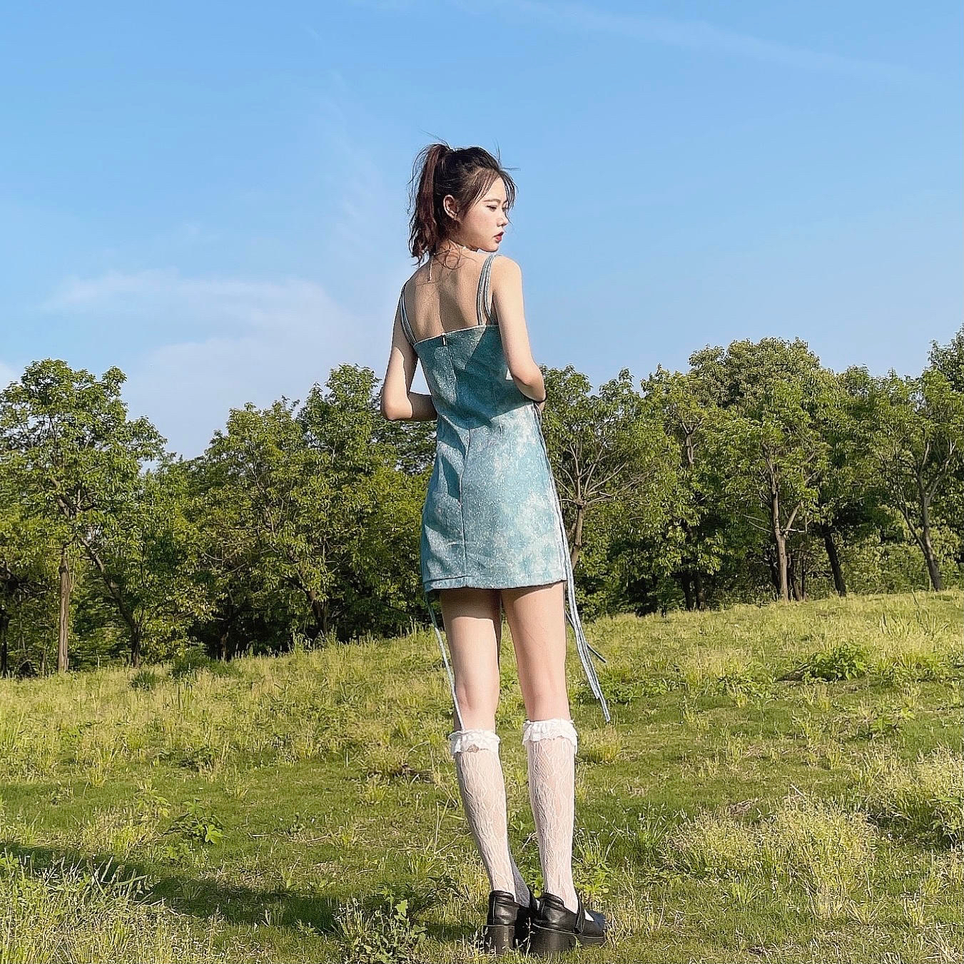 夏日就应该清爽又显瘦哇 穿自己想穿的衣服超级爽 配上小腿白丝袜真的超可爱