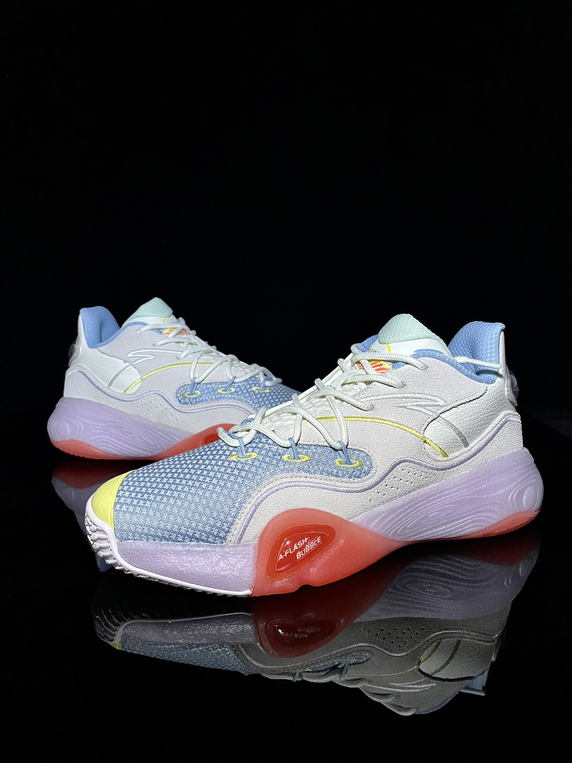 噱头十足的66w个🧼泡泡气囊的A-flash bubble好像真的不怎么样 按照我的入手💰价格100+它确实能算一双不错的实战鞋,但我相信大部分兄弟是两百多甚至三百多入手的,那它能挑的毛病就比较多了🔍 这个最有话讲的中底我们先放一放,照常来到鞋面部分👇🏻 鞋面的料倒还是挺足的,除了大面积蓝色硬性纺织之外还有鞋头的压胶加固以及侧面的翻毛皮补强,鞋面强度不在话下👌🏻。但没有透气...