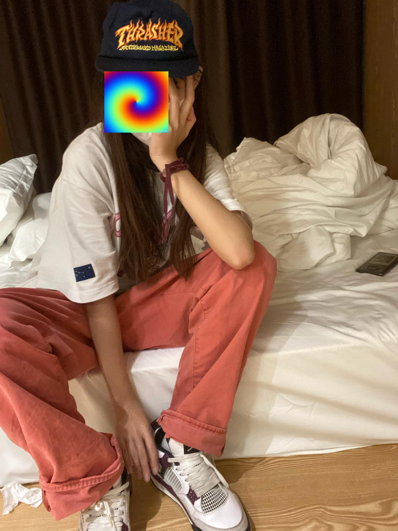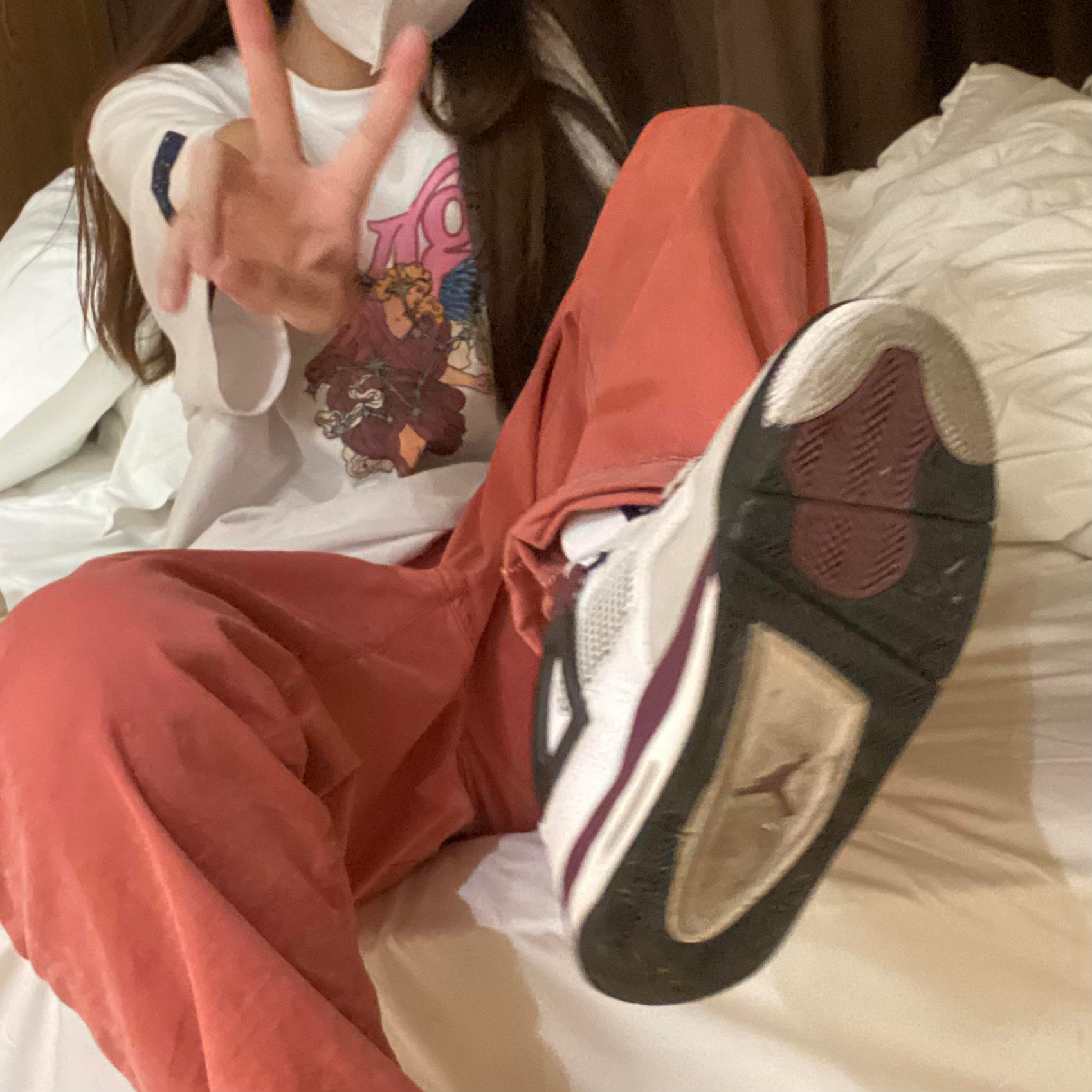 👟球鞋:AJ4 Paris 👕上衣:GRAF 🥶 粉色直筒裤真的很好看 个人比较喜欢宽松OS的穿搭