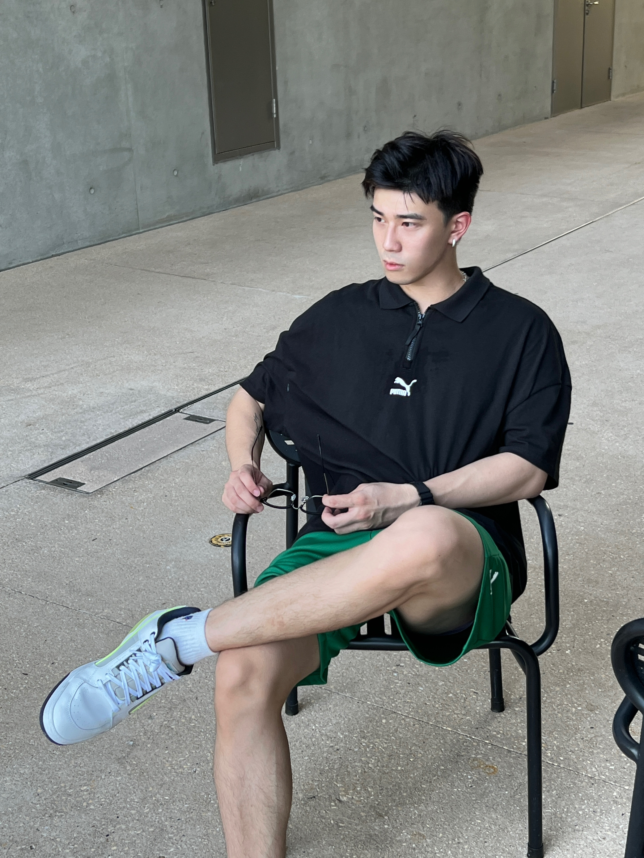 今天这一身真的是名副其实的“绿MA” 黑绿一身超级适合夏天 显瘦还显白😏 所以有多少人就像我一样 戴眼镜跟变了个人这样的 直接从阳光男孩变成海王即视感哈哈 身高|体重: 🧍♂️ 穿搭风格: 👔 上衣:puma 👖 下装:puma 👟 鞋子:puma 🎒配饰:rawness/casio
