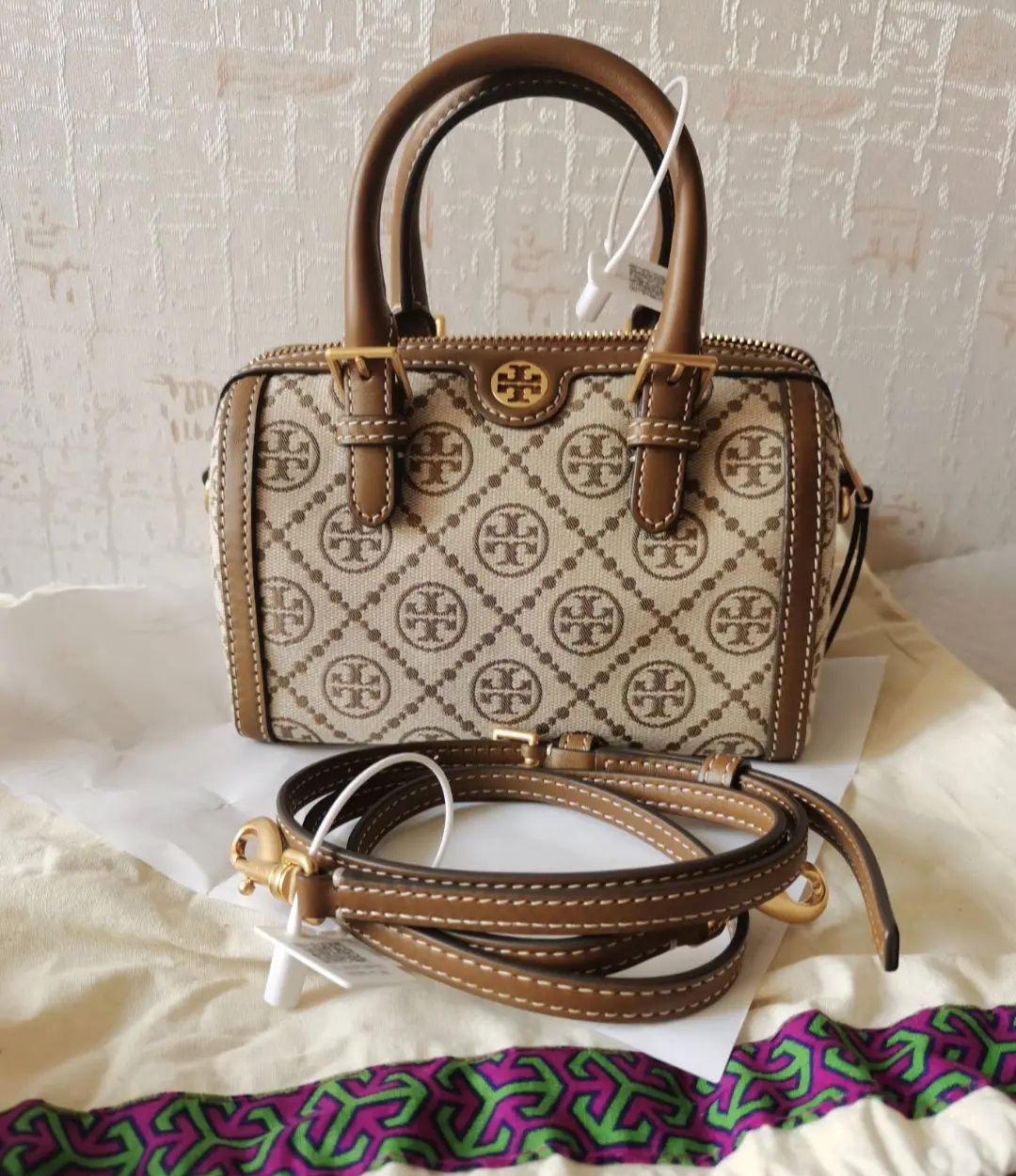 本篇笔记关联了TORY BURCH/汤丽柏琦 T Monogram 迷你 老花满印织物拼牛皮革车衔缝拉链开合提花帆布波士顿手提包单肩包斜挎包 棕色等商品,为用户提供真实的使用体验和购买参考。