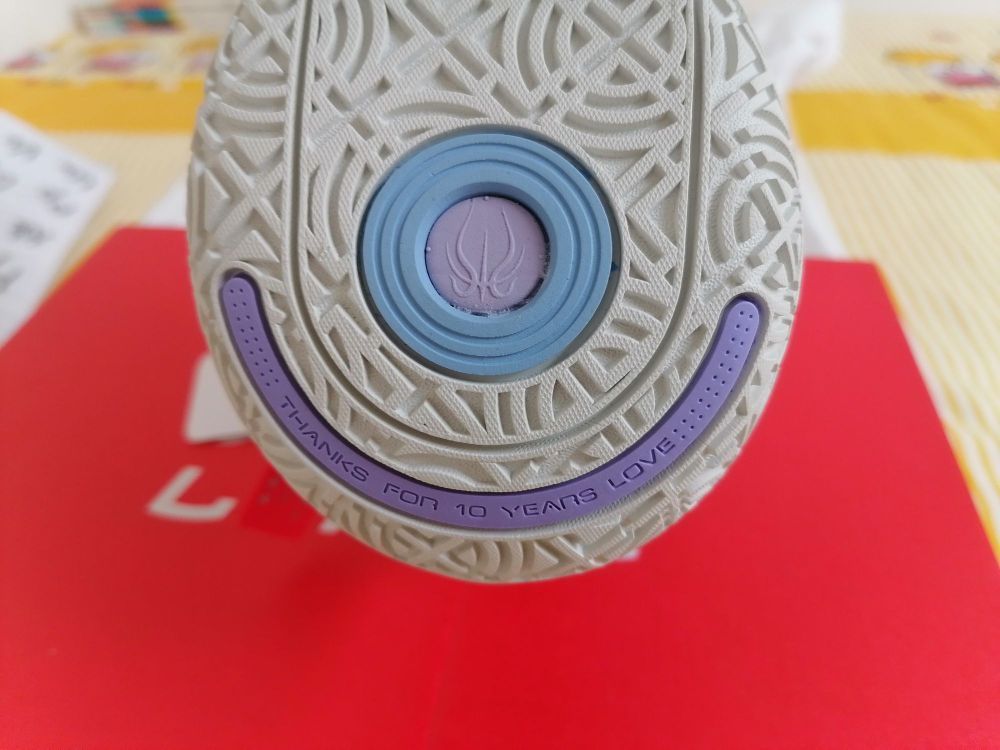 音速10十分细节,鞋头上有摩斯密码翻译后是sonic(音速),前掌有音速的两种表示,后跟有thanks for 10 years love(感谢你10年的爱👟球鞋名称: 🔍分享理由: 🤔整体感受:颜色好)