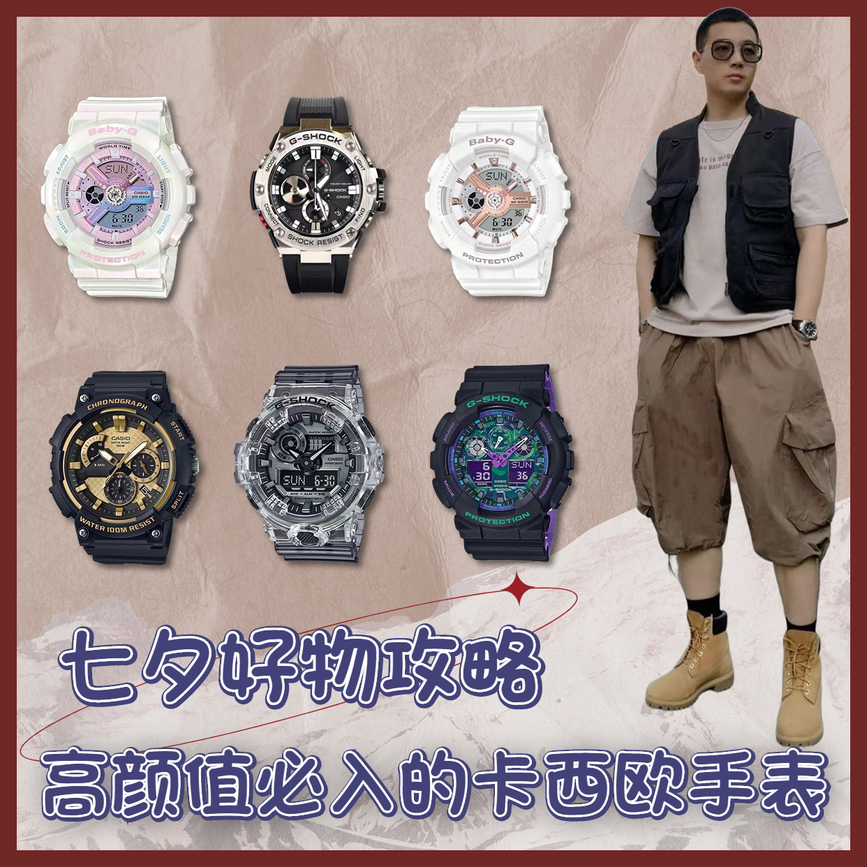 夏天就是要戴活力满满的卡西欧呀,这篇七夕篇专为原则困难症打造,挑选你最中意的一款吧 💈💈 卡西欧 极光渐变独角兽运动女表 BA-110PL 识货价格:565元 推荐理由:独角兽🦄️太美啦,将粉色、紫色、黑色和其他柔和的颜色结 合在一起,动感多彩的少女风设计。上手就是惊艳 (分享自网络) 💈💈 卡西欧G-SHOCK钢铁之心石英男表GST- B100 识货价格:1820元 推荐理由:机械风科技感...