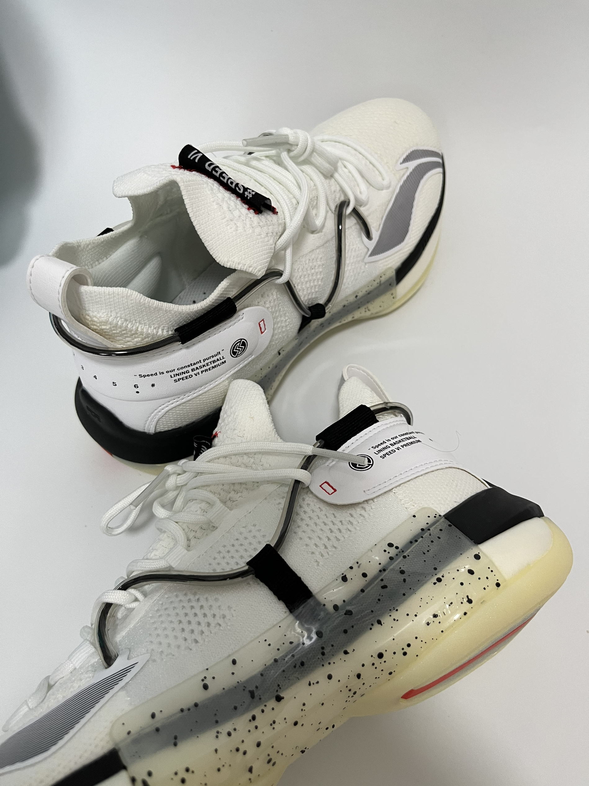 halo 阿迪来了,今天分享的好鞋是这双李宁闪击6 奥利奥. 闪击6系列作为李宁大规模市售的实战鞋,其优势非常明显:颇高的颜值、强力的实战性能和具有性价比的价格. 而今天和大家分享的这双闪击6 Premium版本.其实和普通版还是有一定区别. 外观上:Premium版本鞋帮较普通版本较高,采用了一体式袜套设计,使得鞋款的包裹性能提升。 鞋身处的“血管”也更为外露,视觉冲击更甚...