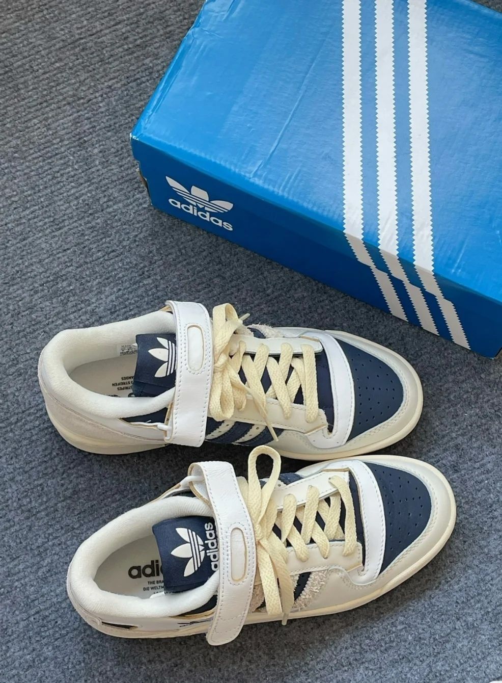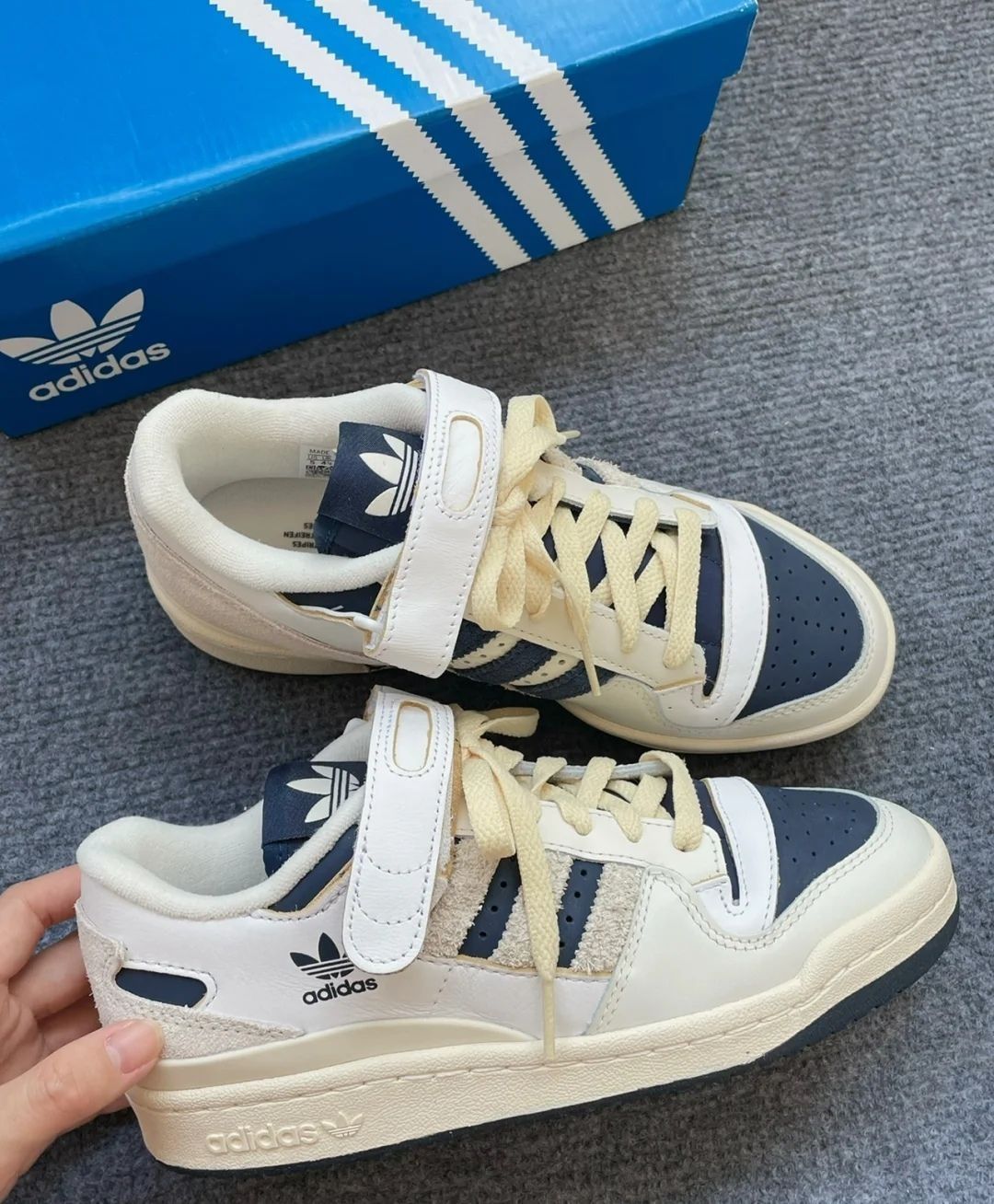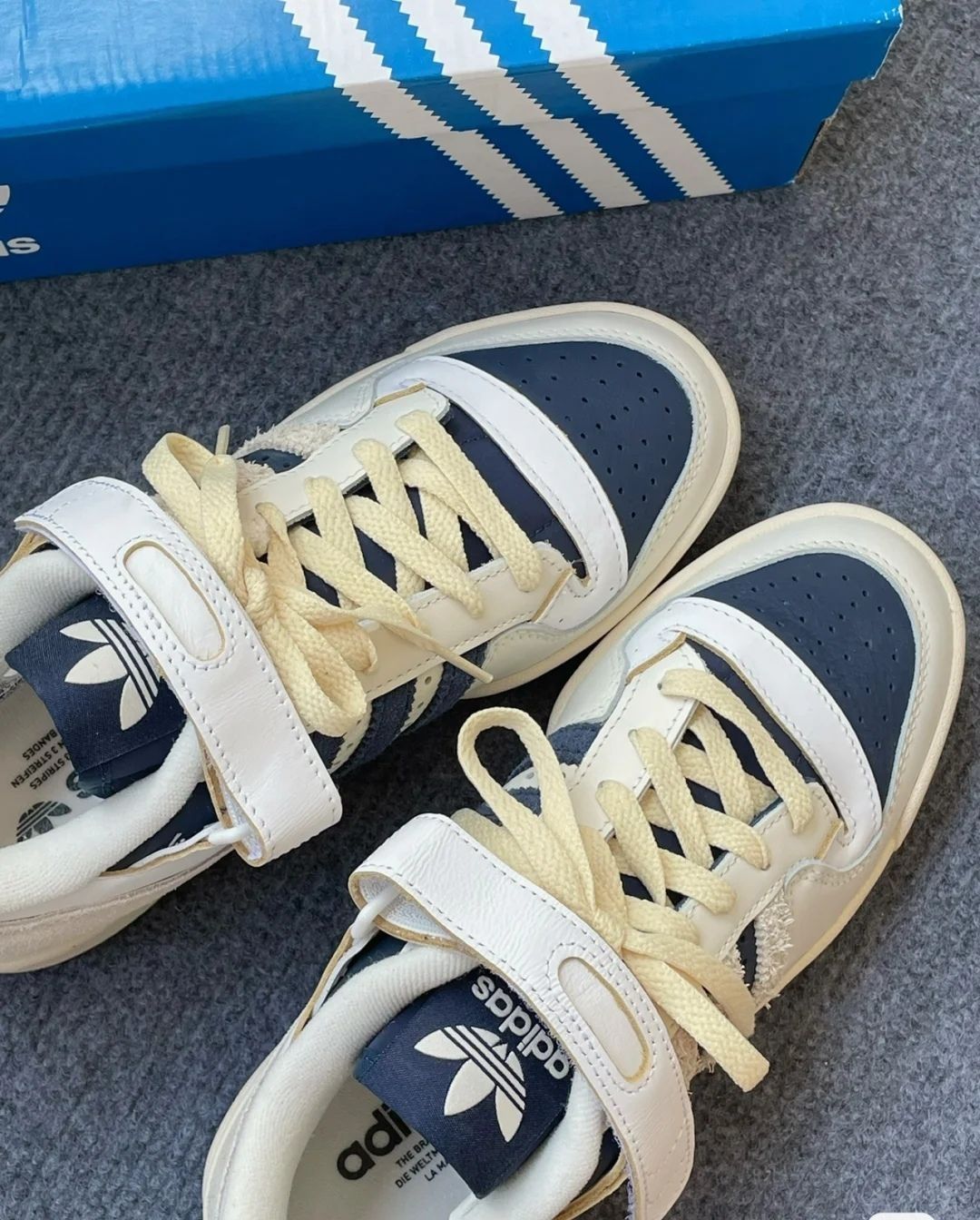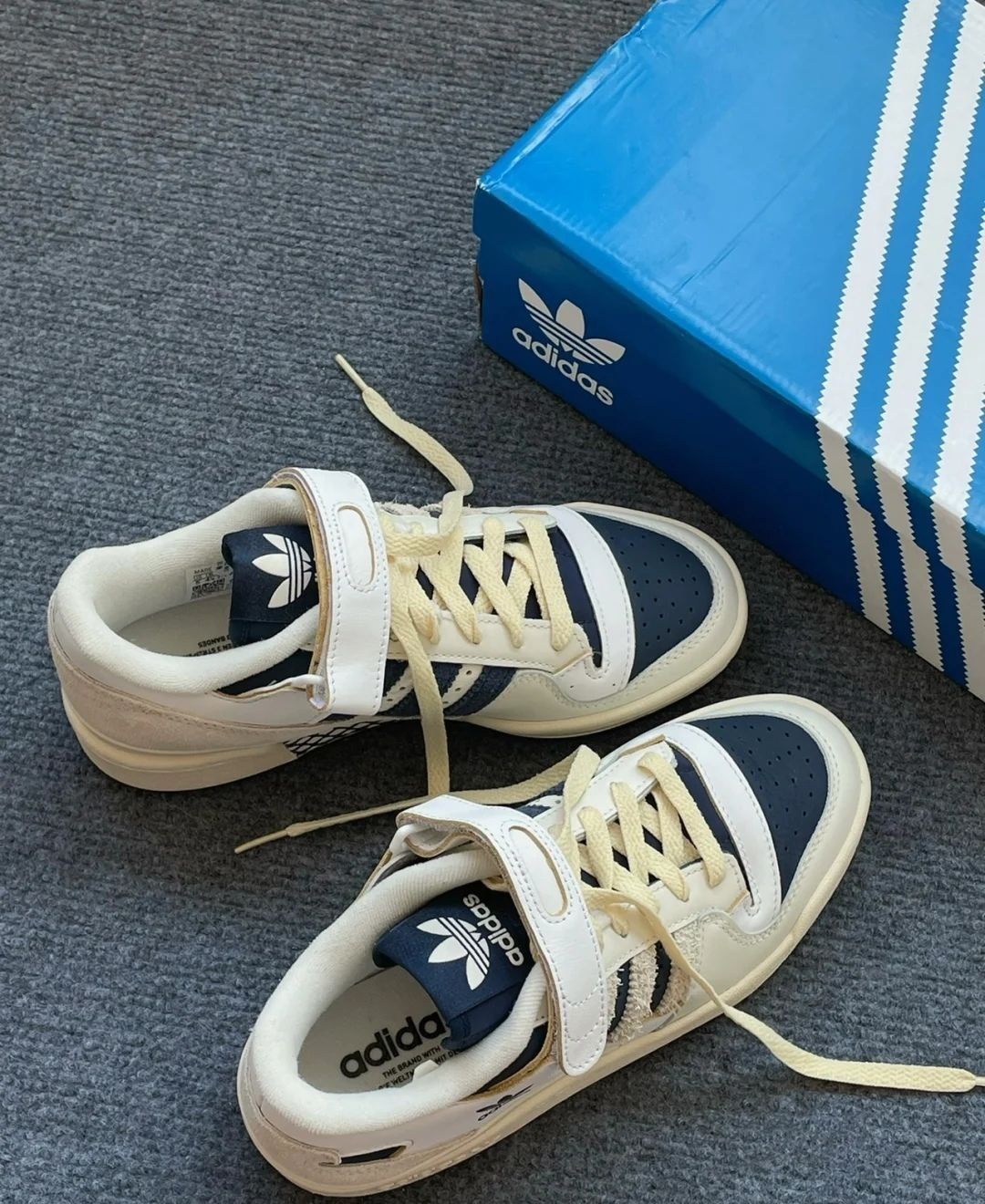 本篇笔记关联了adidas Originals Forum 板鞋 轻便复古防滑时尚魔术贴篮球风 米白/深蓝/黄色等商品,为用户提供真实的使用体验和购买参考。