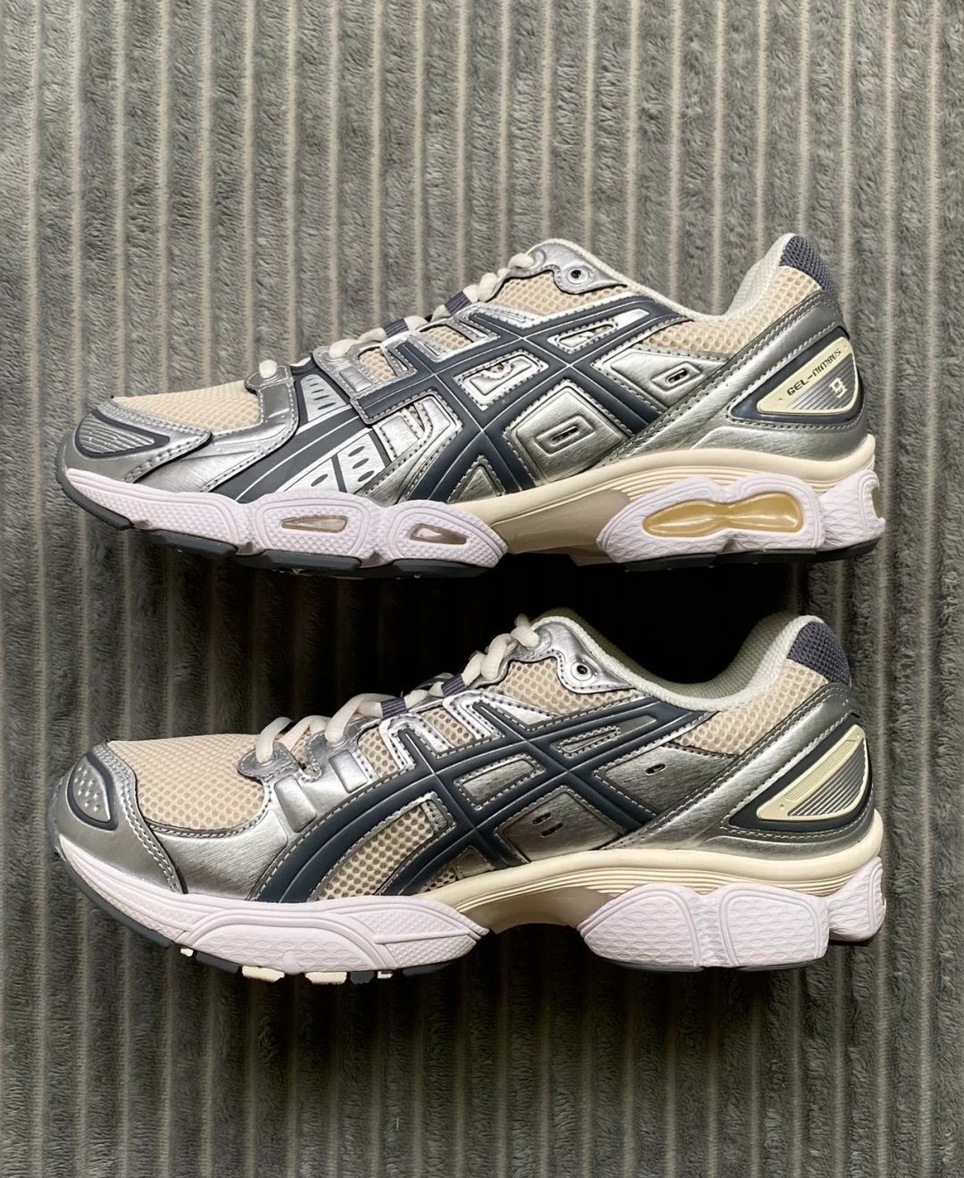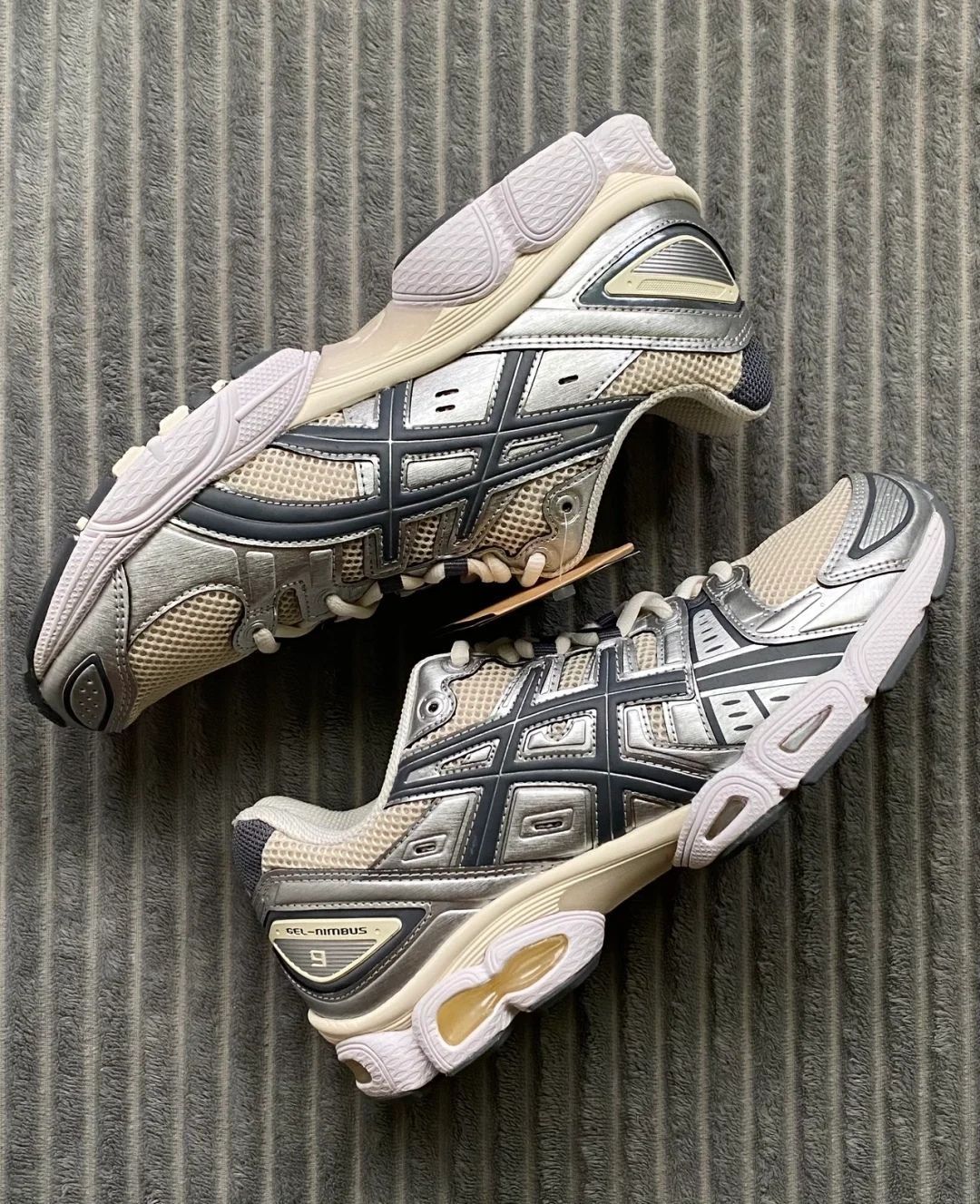亚瑟士出的配色怎么这么好看型号: Asics Gel - Nimbus 9 已经有一双 kiko 团队设计的宝蓝色了,但是无法拒绝这个配色,这个磨砂银的质感(P6)太有感觉了。 不偏码,正码即可。