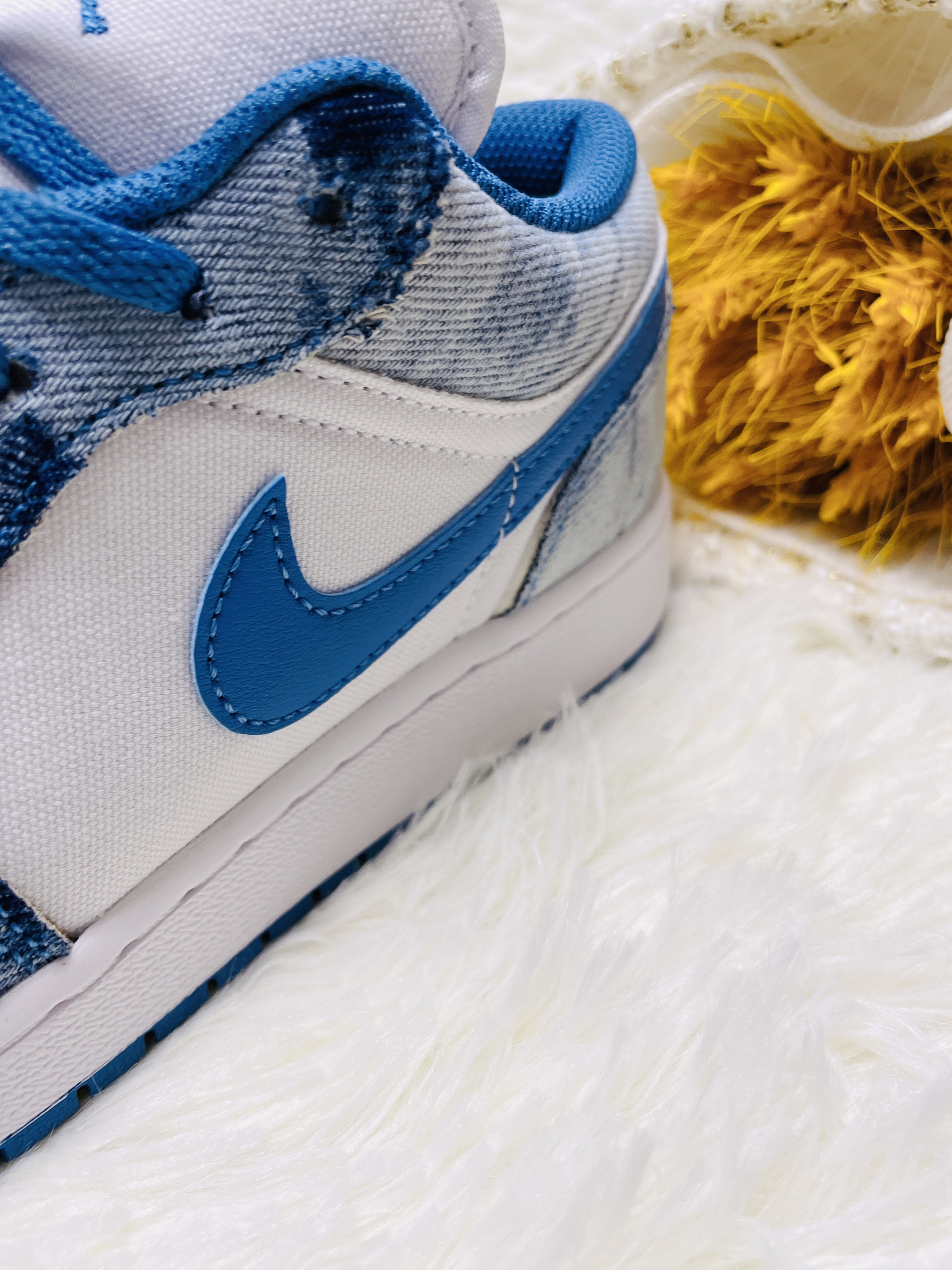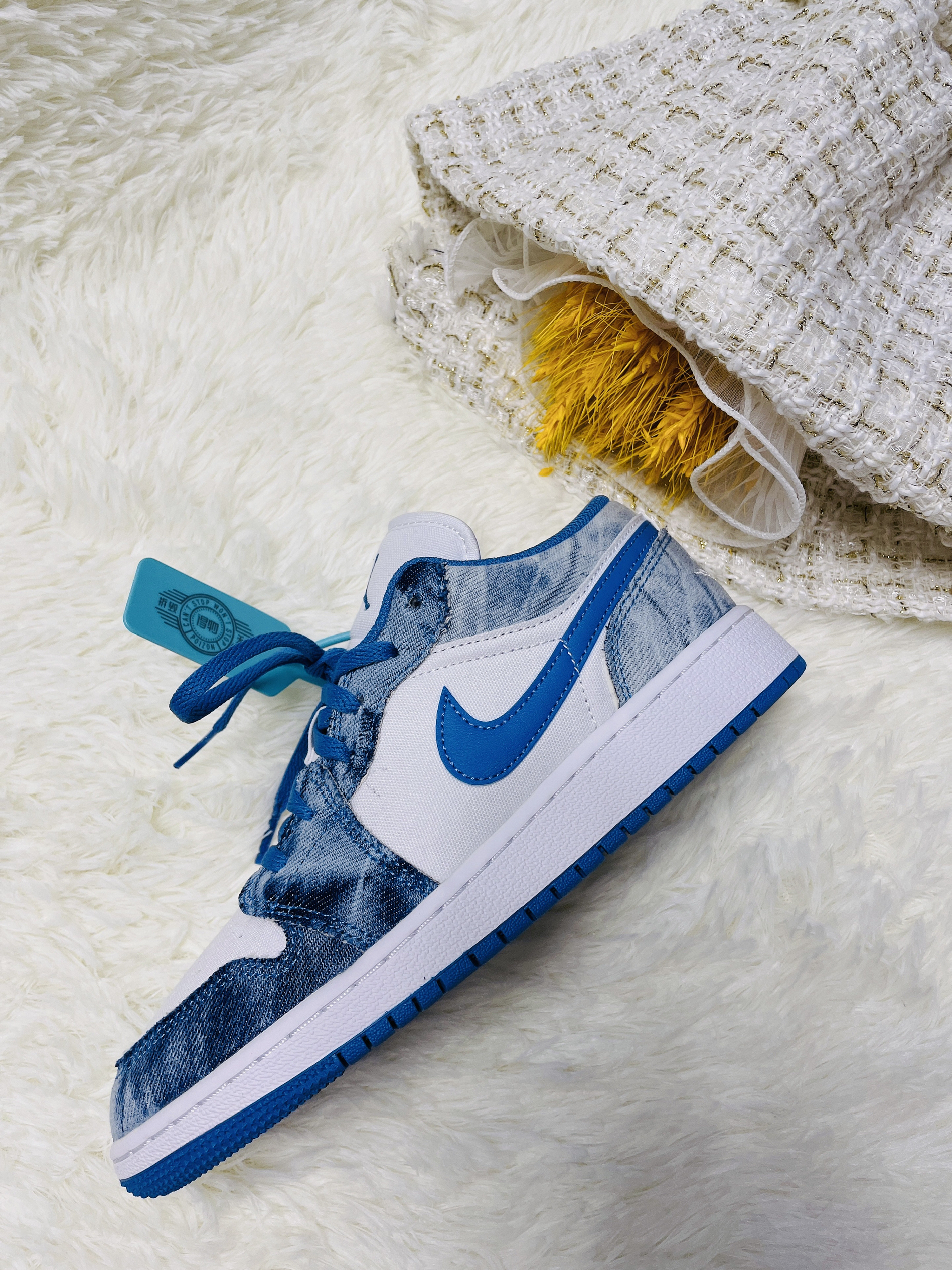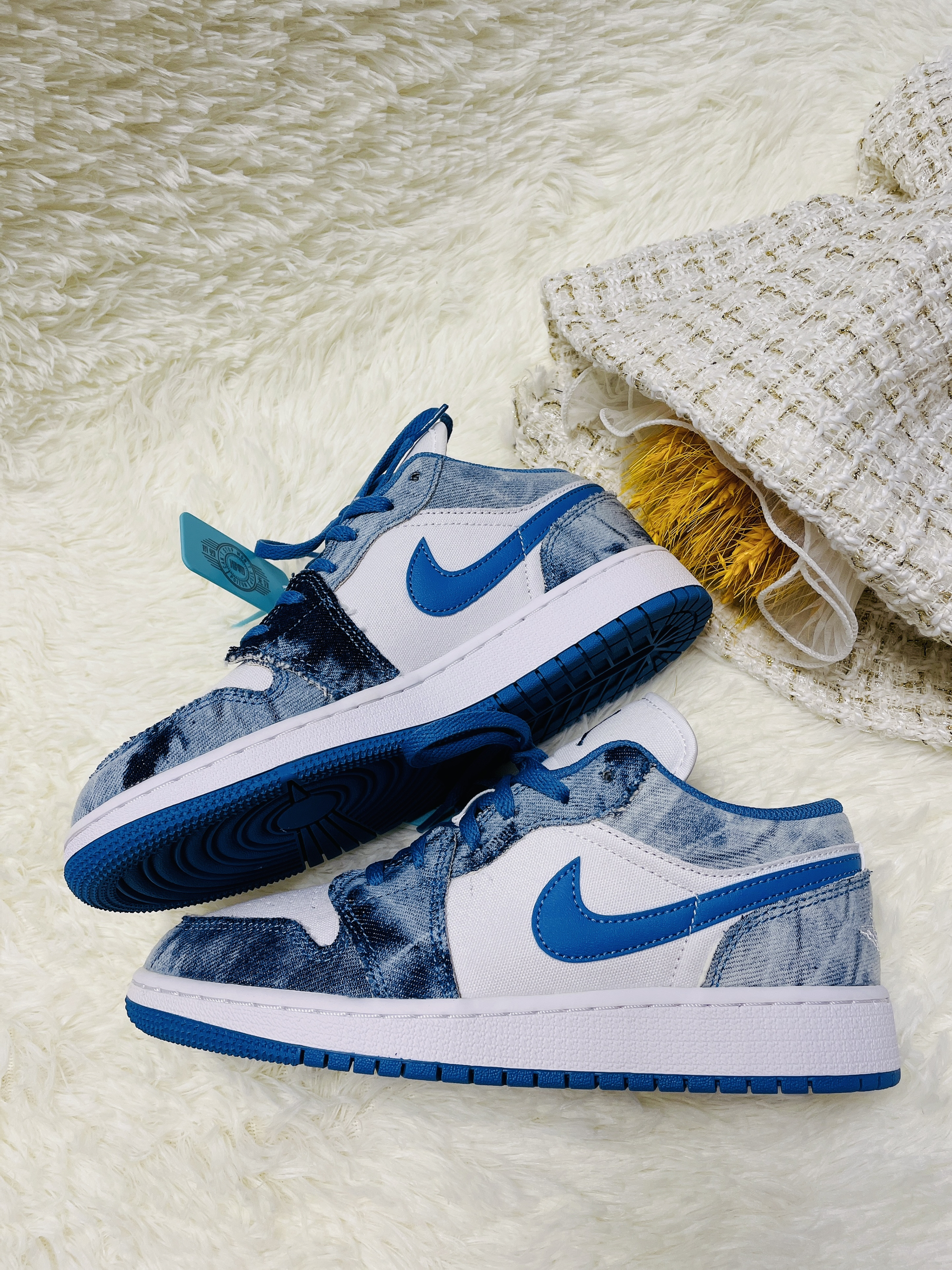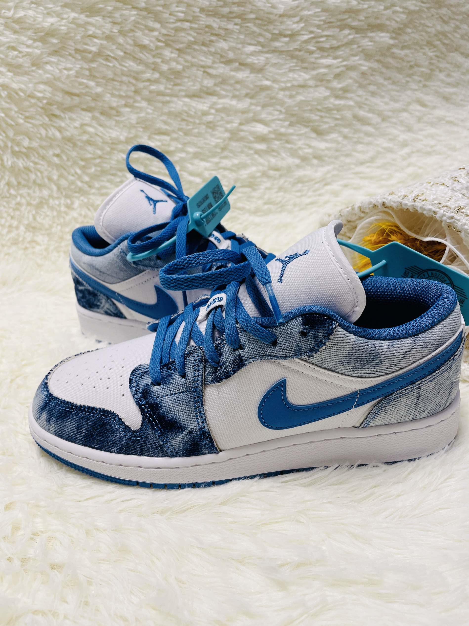 本篇笔记关联了Air Jordan 1 板鞋 运动休闲鞋 复古潮流支撑合成革 GS/低帮/白色/牛仔蓝/水洗丹宁等商品,为用户提供真实的使用体验和购买参考。