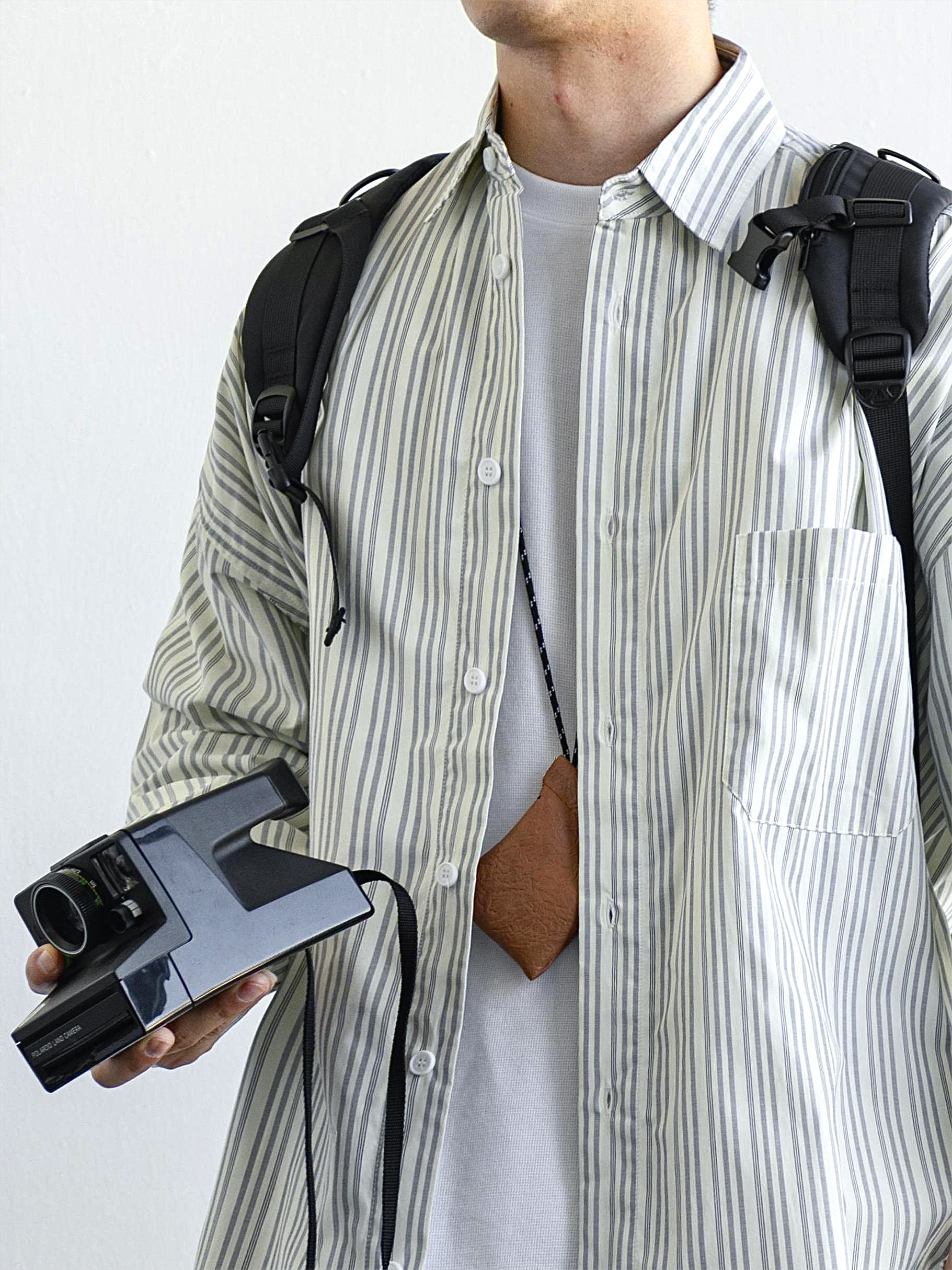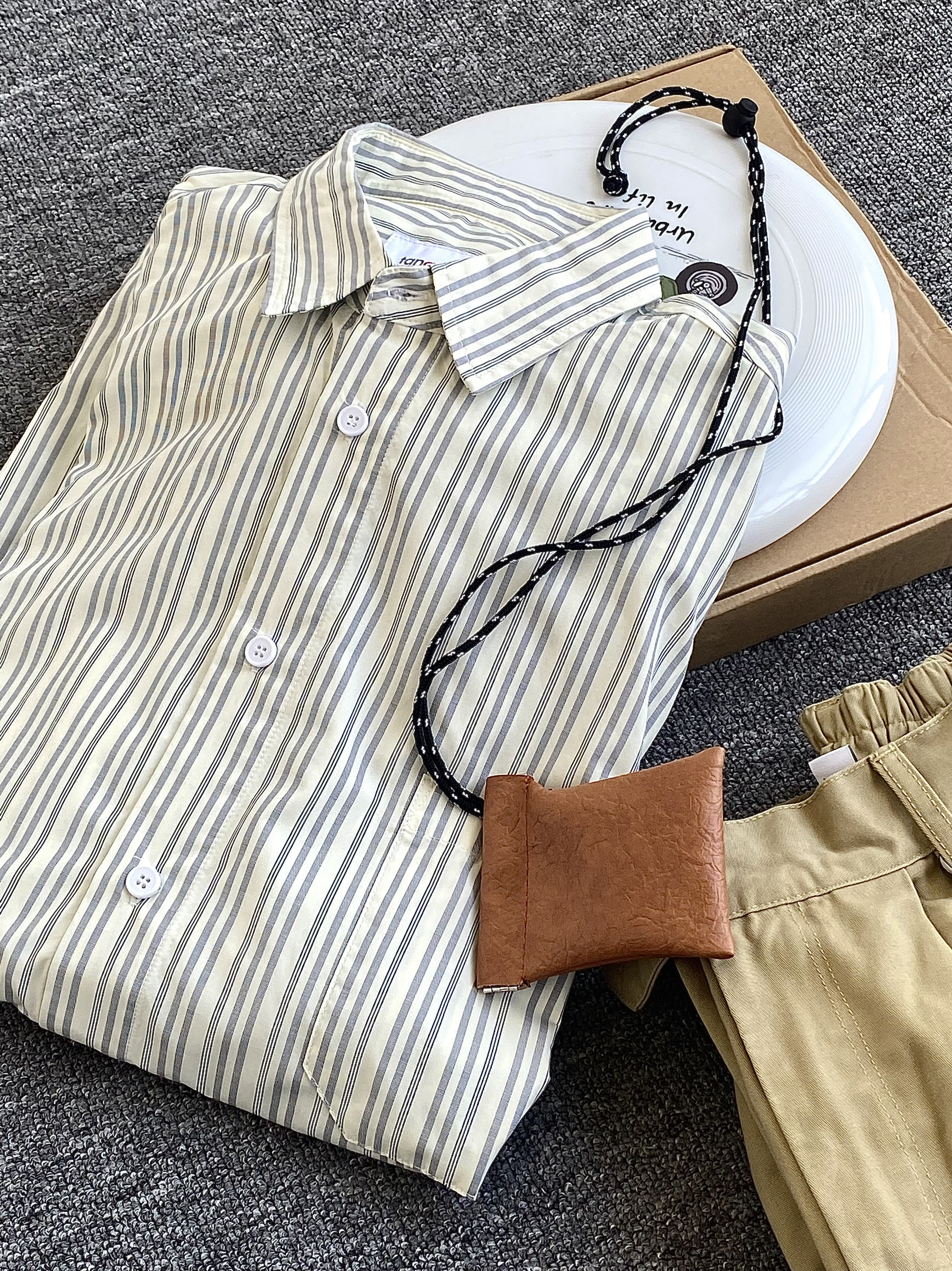 今日是条纹衬衫青年🆙 🗣最近觉得很日系的一件条纹衬衫 宽松版型很好穿✨条纹也是粗细适中的 🔜整体很好搭配 - 本人:身高172CM | 体重62.5KG | 穿M码(参考) - 👔:Flostore花轮故事 👖:Flostore花轮故事