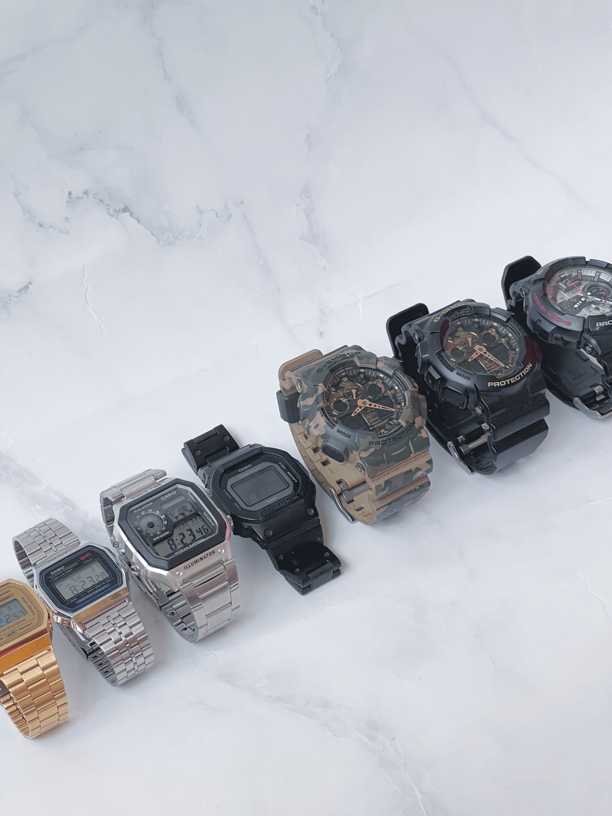 hey 这里是每天记录穿搭的社畜日记。 今天天气不错,晒晒我的CASIO们 货号如下,喜欢的家人们请随意挑~选: 1️⃣A168GW-9W 2️⃣A159W-N1DF 3️⃣AE-1200WHD-1AV 4️⃣GW-B5600BC-1BPR 5️⃣GA-100CM-5A ...