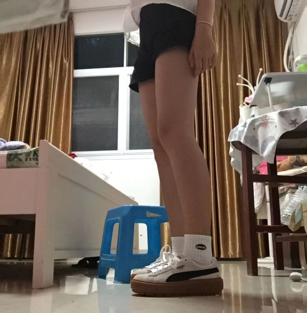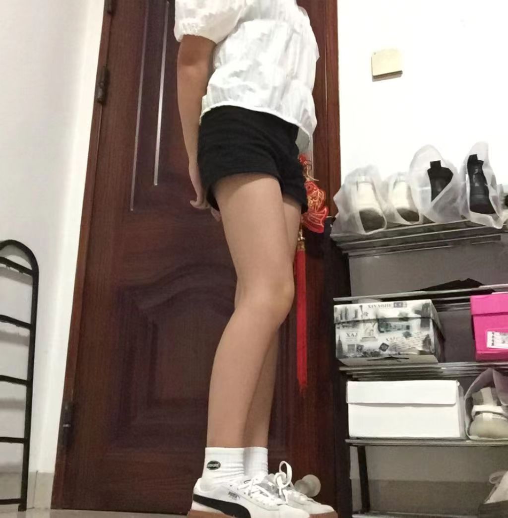 巨巨巨显腿长配上一条小黑短裤绝绝子 这双鞋增高4cm穿上直接162了 这双鞋看起来很重实际穿上脚很轻