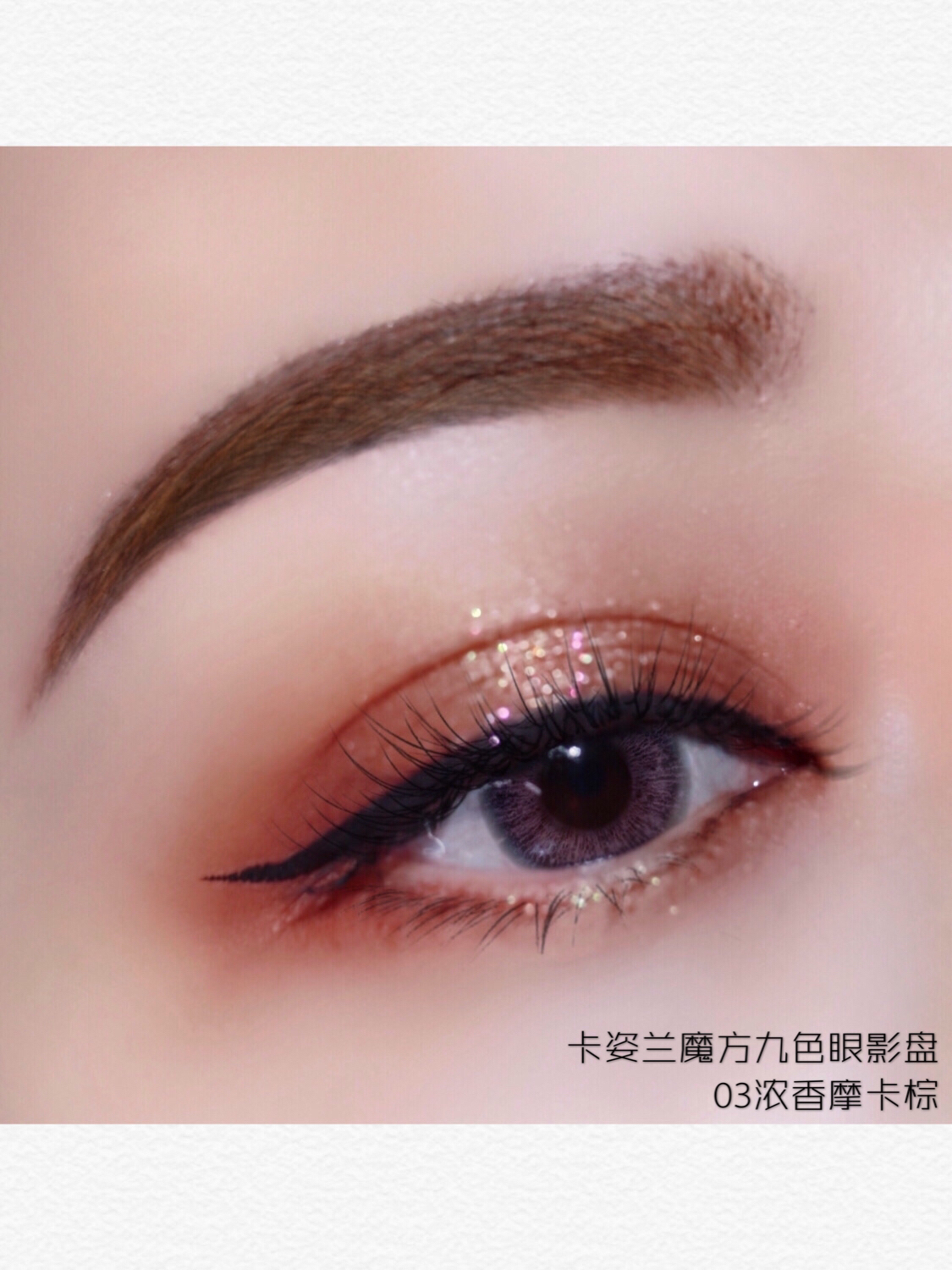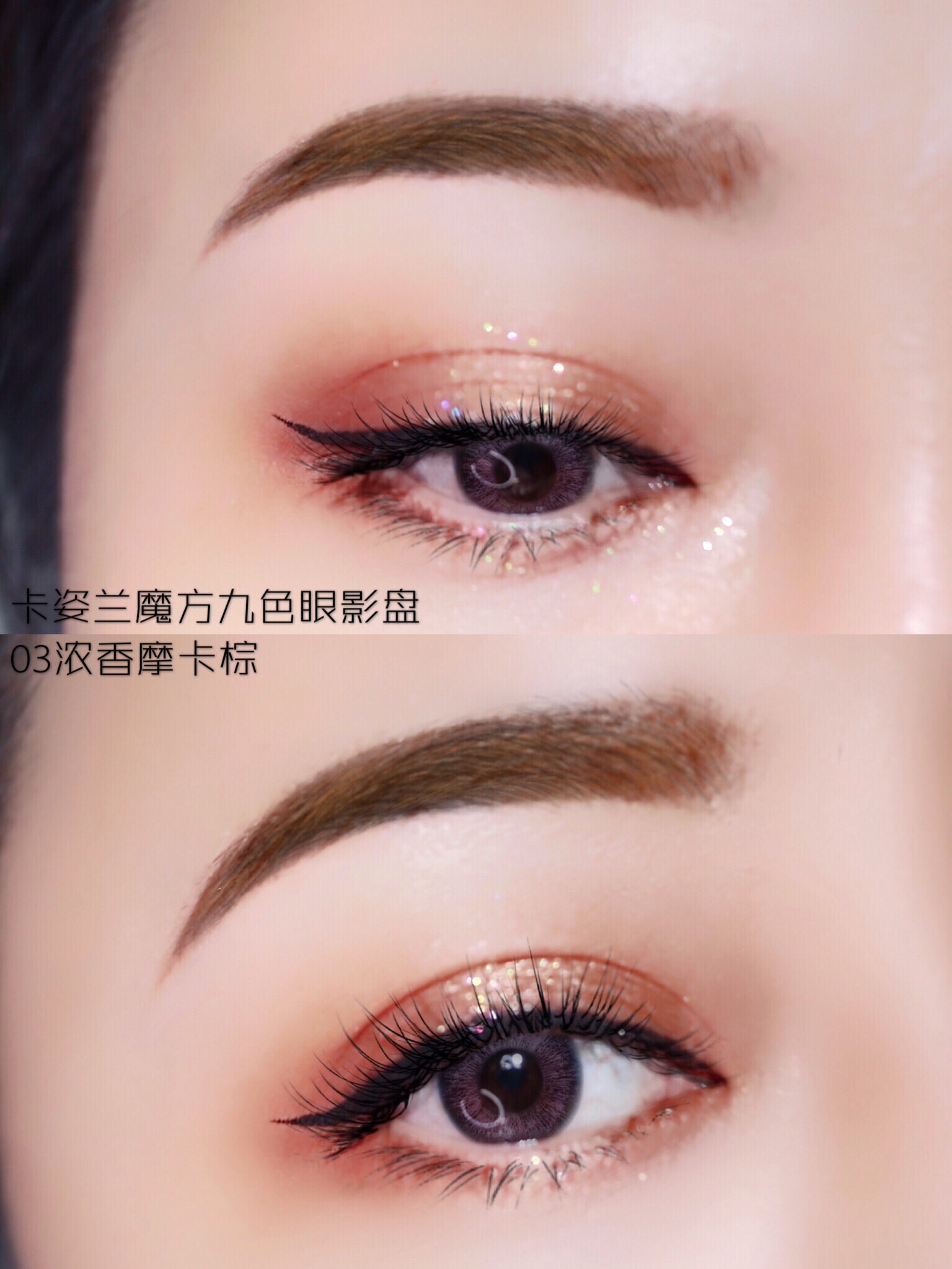 好久没遇到这么心水的大地色系眼影了😍 卡姿兰魔方九色眼影盘03浓香摩卡棕 别看是摩卡棕色为主,但一点也不单调 实用百搭,新手、肿泡眼都ok 而且有被里面的闪闪美到🤩 深邃消肿,随便画画都不会出错! 新手宝宝大胆画起来, 浅色打底,眼尾加深,亮片一点缀, 一个妆就能完成,太好画了吧!😘