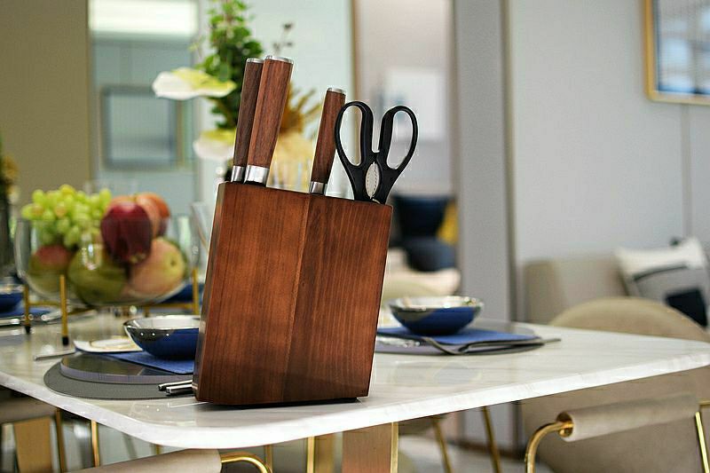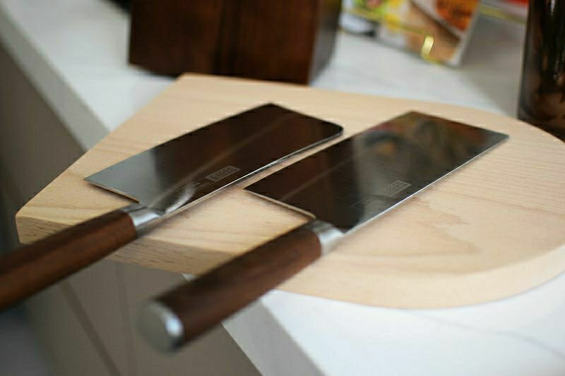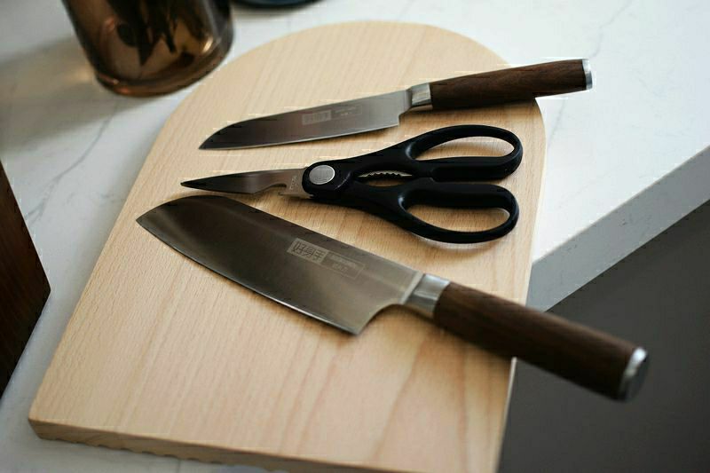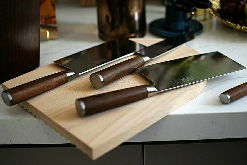 工欲善其事必先利其器 好身手R1刀具。俗话说的好“工欲善其事,必先利其器”,要想做出美味的饭菜,就要有一套趁手的好刀来辅助。新家刚装修好,这次买的是 - 好身手品牌的刀具,它素以刀具闻名。而且好身手R1套装刀具,无论是颜值,还是制造方面都非常优秀,刀身采用了50Cr15MoV钢材,这种材质具有:高碳/高硬度/高锋利度,韧性好、耐磨性强、不易腐蚀、可以长久保持刀锋锋利,不易崩口的特点。其颜值与实力俱佳,光泽细腻的质感,冰凉的刀锋令人胆寒,硬度也能满足家庭需要。5Cr15MoV(5铬15钼钒钢)是优质不锈钢材料,其碳含量达到了50,铬含量也有所提高,还加入了钼和钒,因此无论从硬度还是韧性方面都有了很大提升,它60HRC的硬度仅亚于金刚石。这种材质的锋利持久性强,耐腐蚀性强,其具有更锋利更耐用的特点。不仅耐腐蚀,同时长时间使用也不会变形,加之本身硬度较高,即便长久使用也很少会出现钝化的情况。好身手R1套装,包括:切片刀、水果刀、斩切刀、小厨刀、多功能剪刀。整体来说菜刀的重量还是非常适中的,女生用起来也不用废太大力气。所以说,刀好用,切斩的过就很轻松,使得做菜不再是负累。好身手R1这套刀具真心好用,在实际使用中,刀锋所过之处,可谓是干净利落,完全无需太用力,刀身划过就可以轻松切开食材表面,轻轻一按一拉就可以轻松切开食材,切肉就是手起刀落,不会有丝毫停留。这样在家做饭烹饪时,也会快很多,得心应手,至少以后在处理食材方面,我们不会觉得是负累。好用的厨刀,使我们爱上厨房。