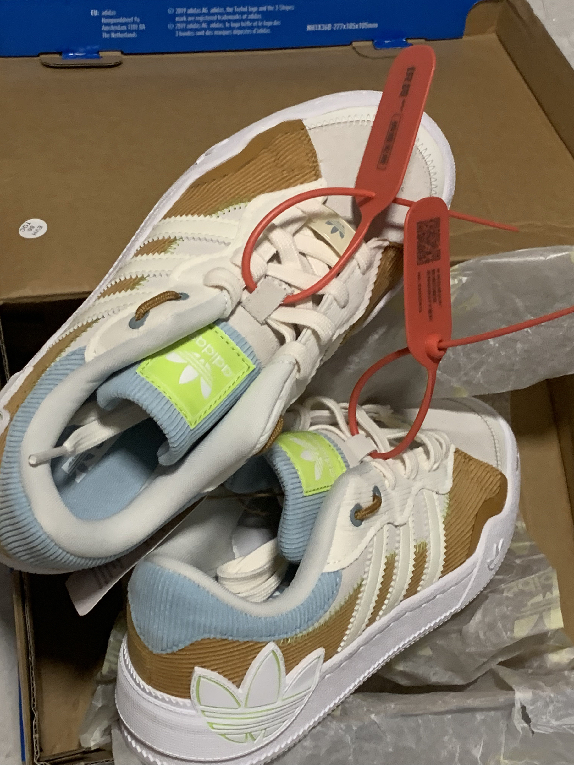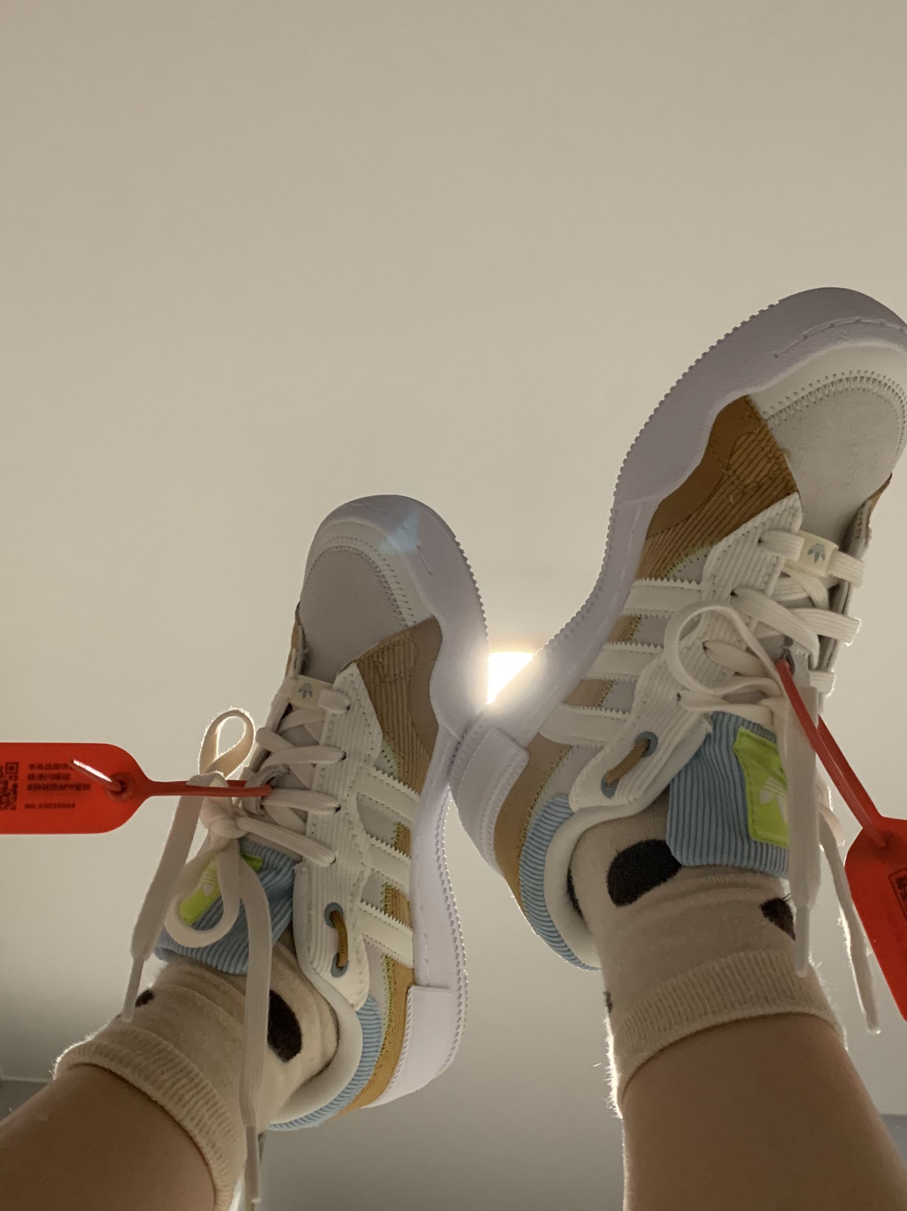 阿迪里面不算很常见的灯芯绒 真的很好看 我卡其星人狂喜 很可爱很平价 三百块的嘎嘎乐 👟球鞋名称:adidas 灯芯绒 🤔整体感受:鞋底硬鞋垫软 正常码数 我35码的脚买的36 会大