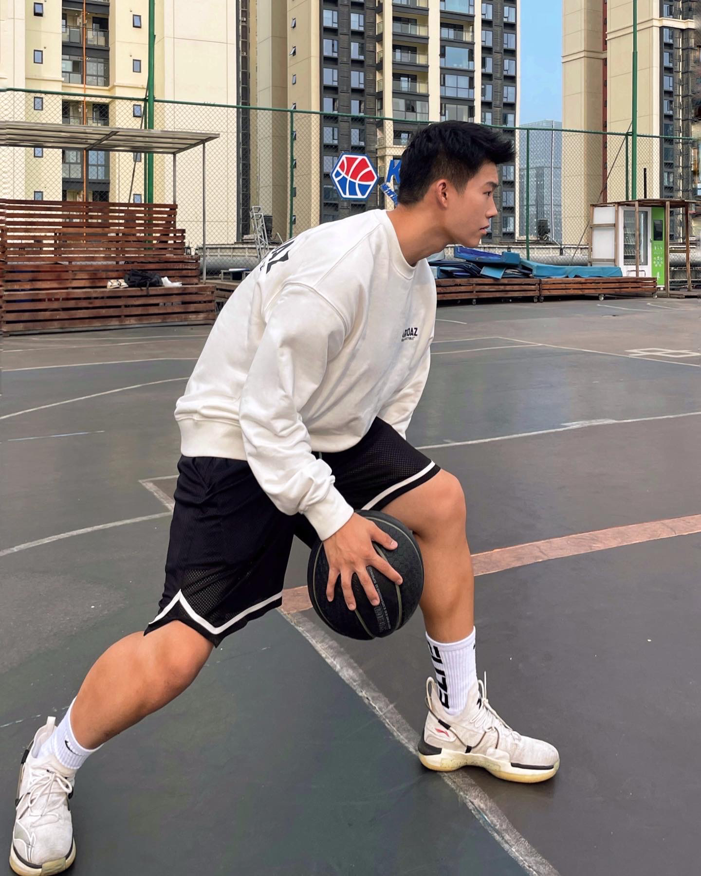 Hi!小王的今日穿搭分享来啦! 夏日运动美式也能穿的很酷哦! 白色长袖搭配黑色短裤 再搭配起一双篮球鞋! 谁能拒绝长袖搭配短裤呢! 🌟今日搭配: 👖:nike 👟:李宁闪击6 小王的今天的分享就到这里啦❤️ 有任何问题的可以在评论区问我哦
