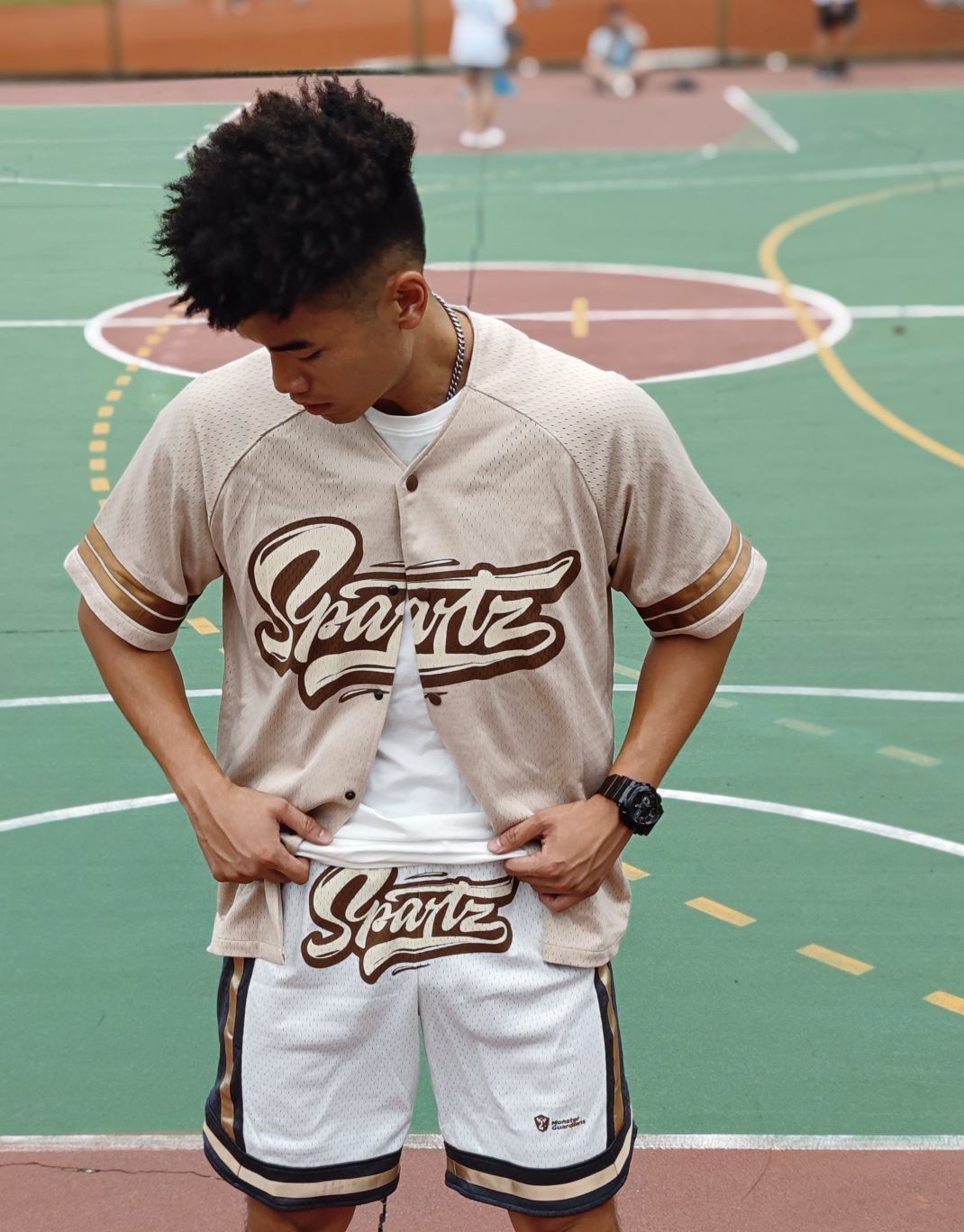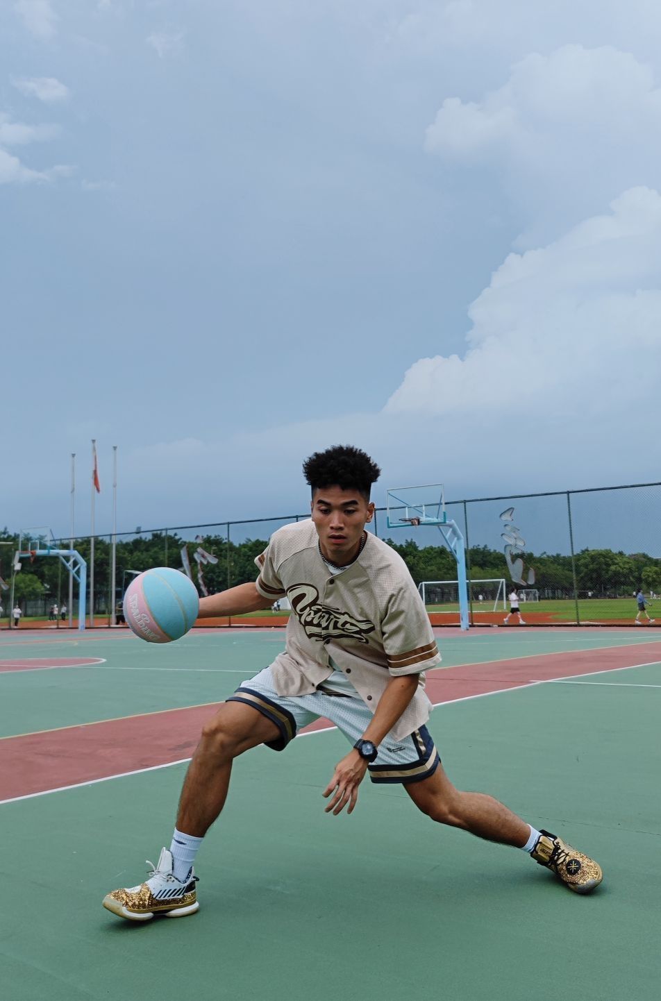 分享今日穿搭 白T打底➕美式棒球服➕美式短裤➕篮球鞋 打底白T运动时可穿可不穿,休闲出行建议白T打底然后外搭棒球服。 美式棒球服,做工精至,面料舒适透气,胸前刺绣工艺。 美式短裤,面料厚实且透气,潮流印花。 韦德之道篮球鞋,衬托上身颜色穿搭。