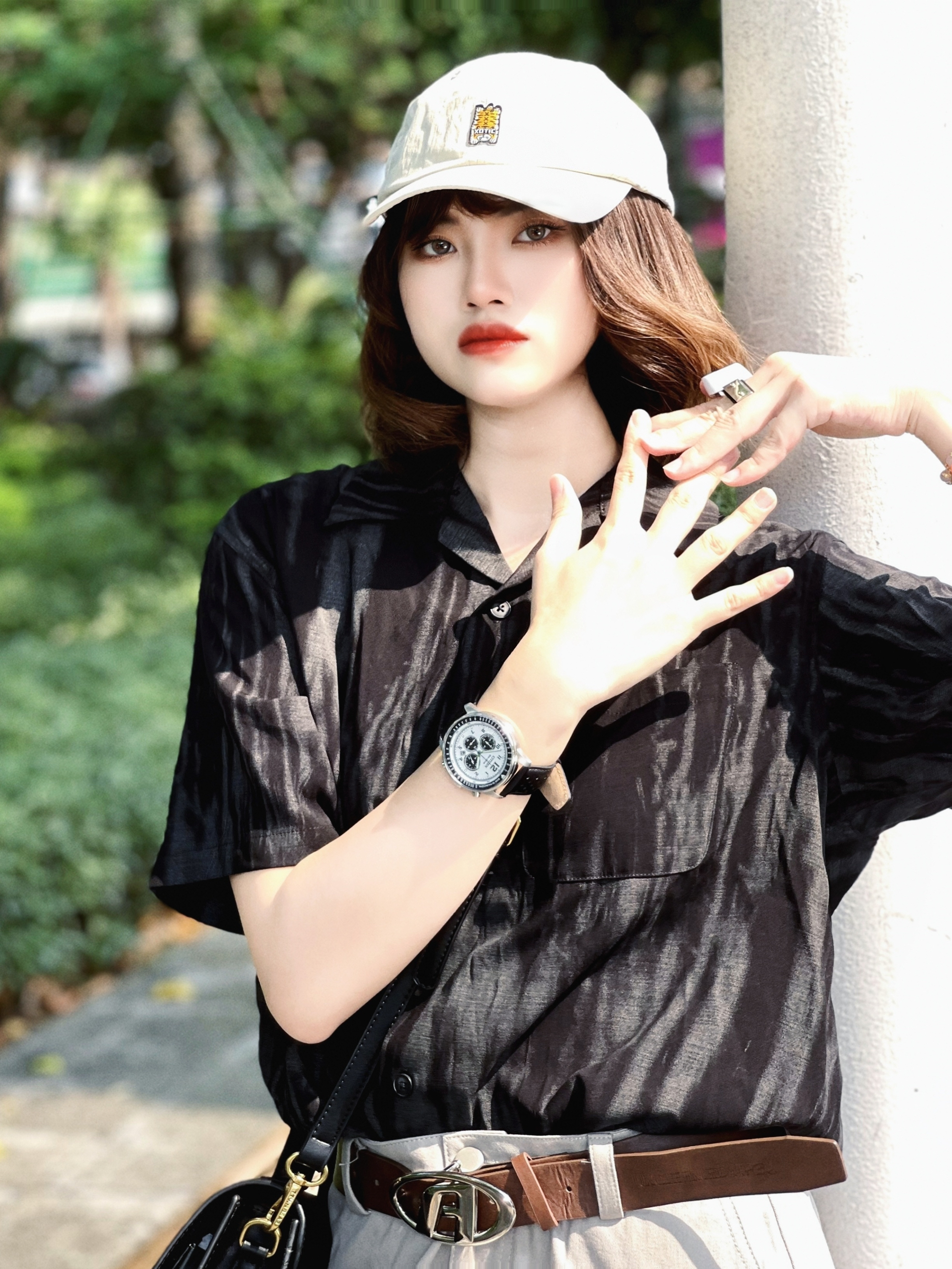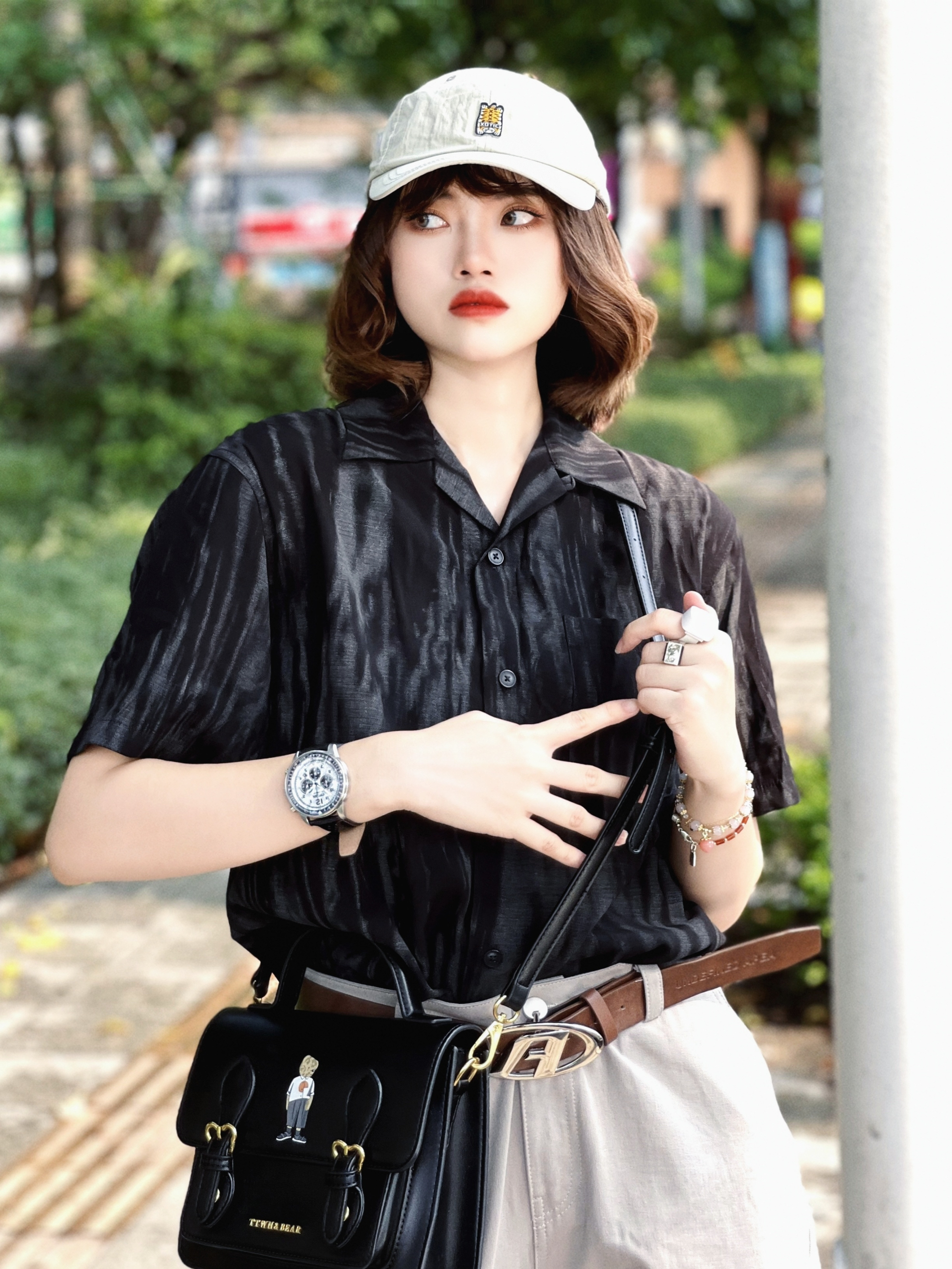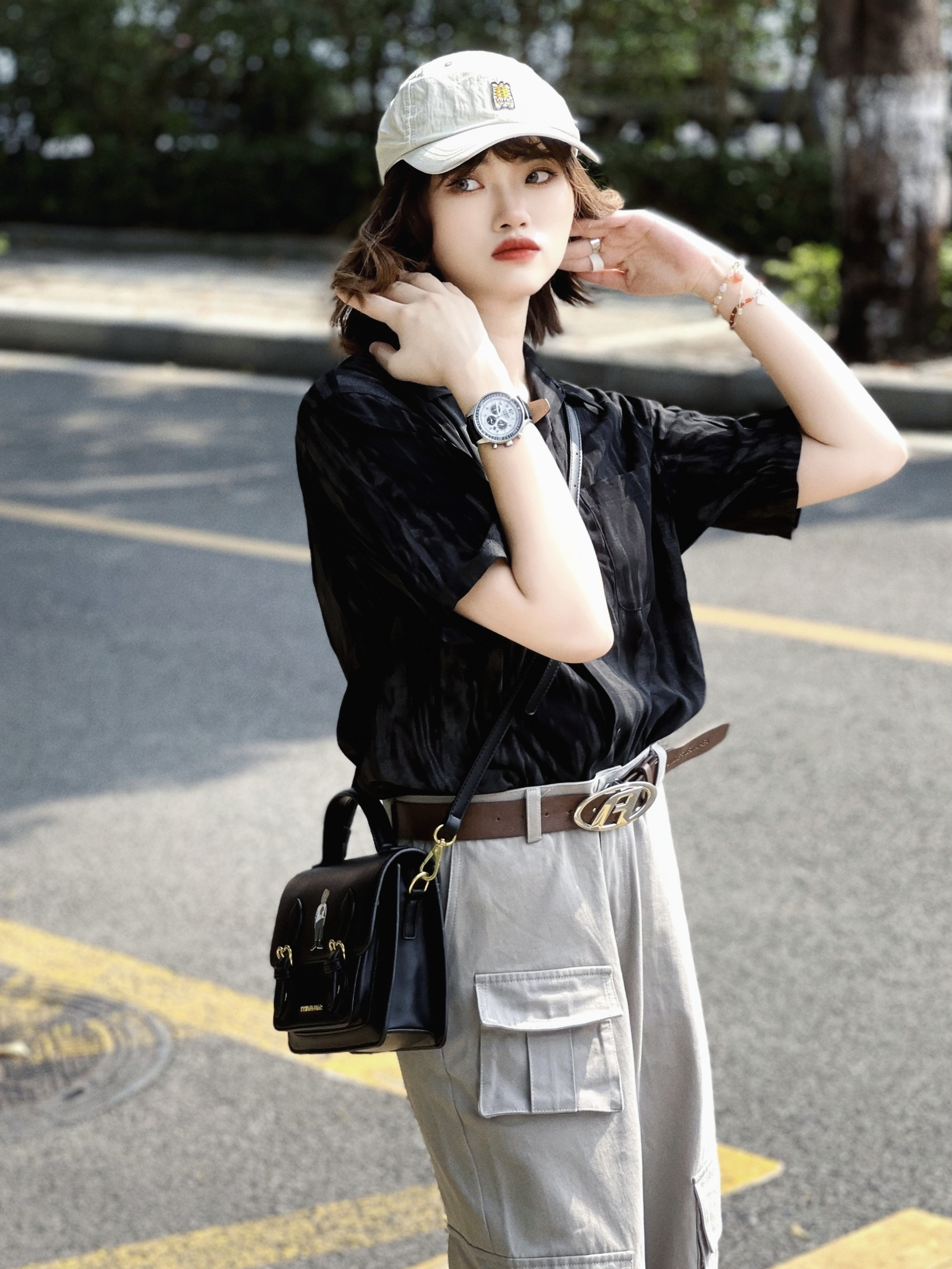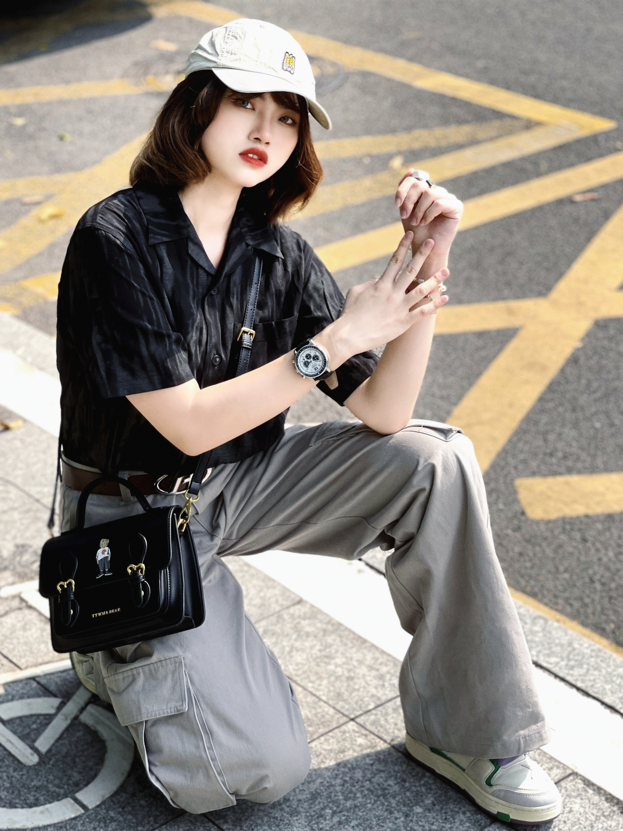 今日衬衫搭配 直筒的西裤 遇上球鞋还是优雅有气质 同色系的选择包包 🐯年帽子戴起来精神奕奕 是夏天会喜欢的搭配了