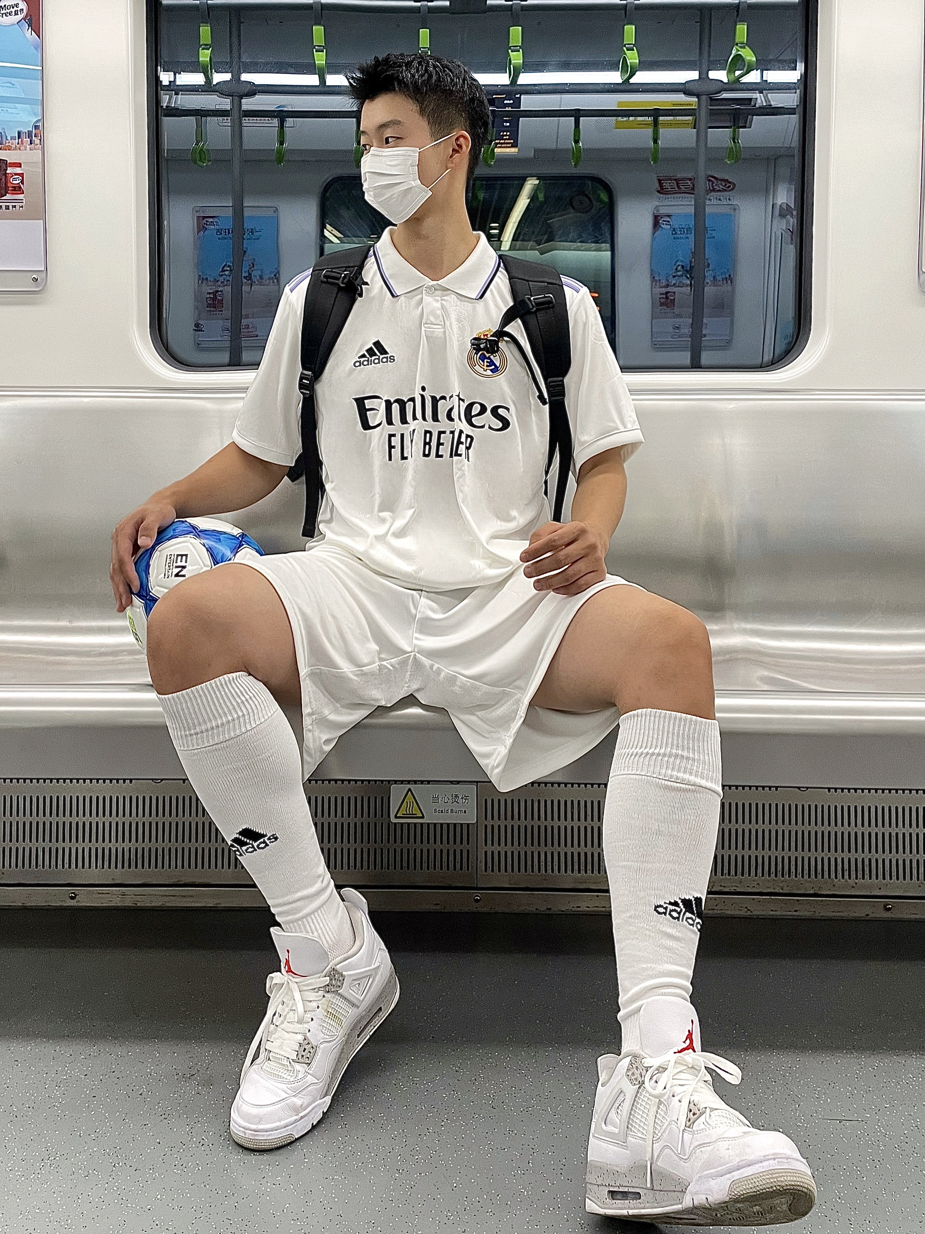 Hi!小王的今日穿搭分享来啦! 今日足球男孩穿搭 实在太酷啦! 球鞋搭配球袜 同色系绝绝子 🌟今日搭配: 👔:adidas 👖:adidas 👟:aj4 小王的今天的分享就到这里啦❤️ 有任何问题的可以在评论区问我哦~