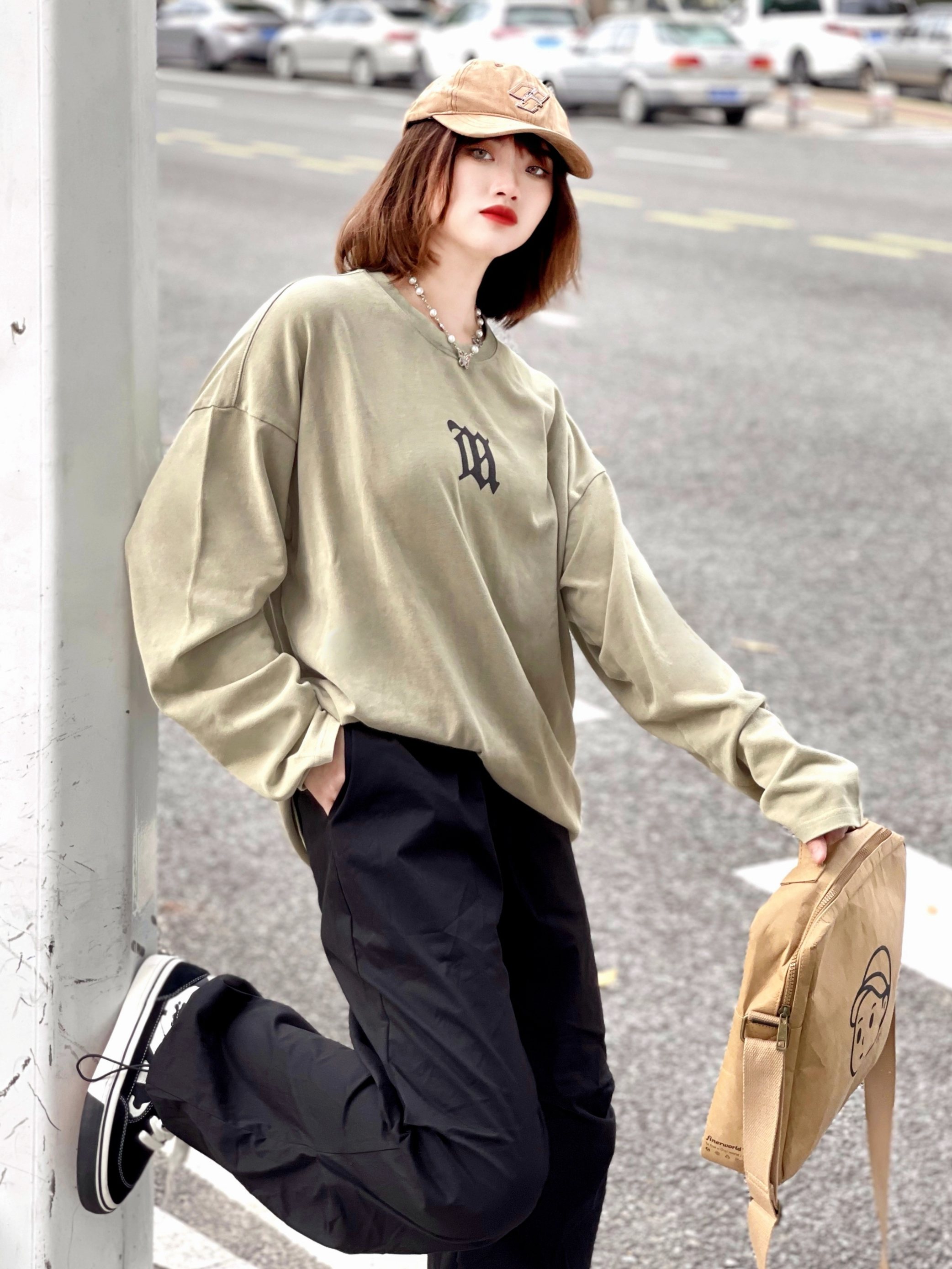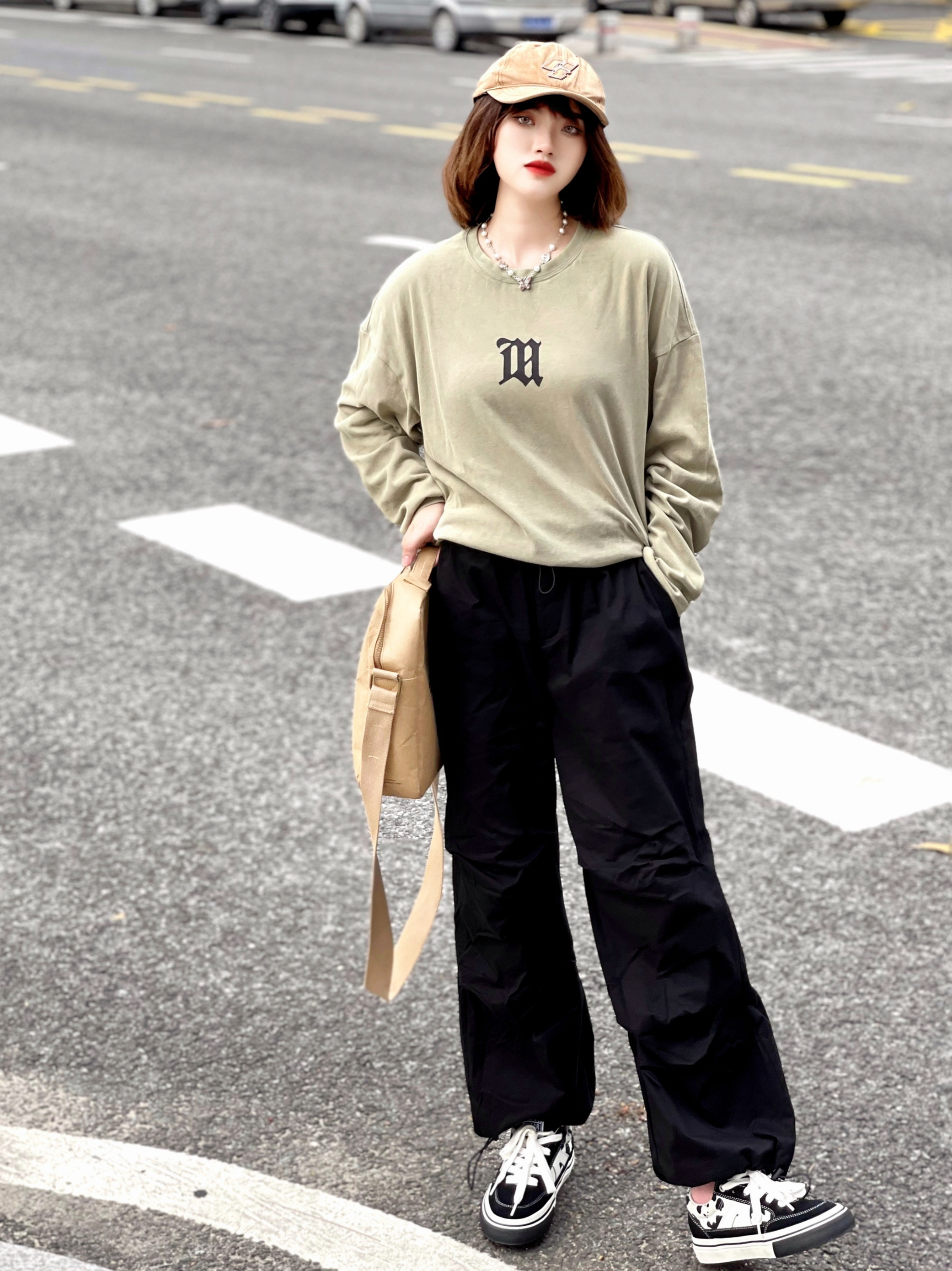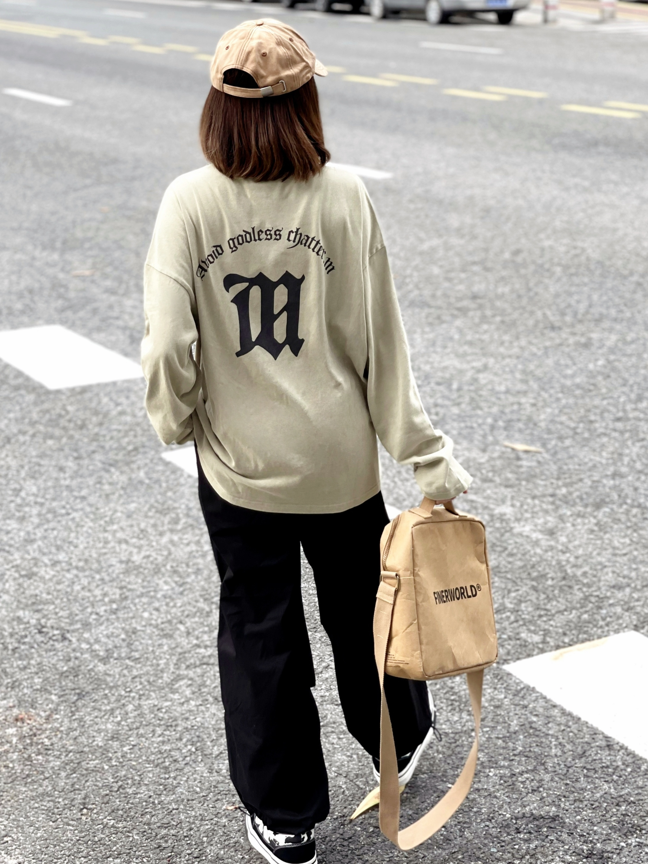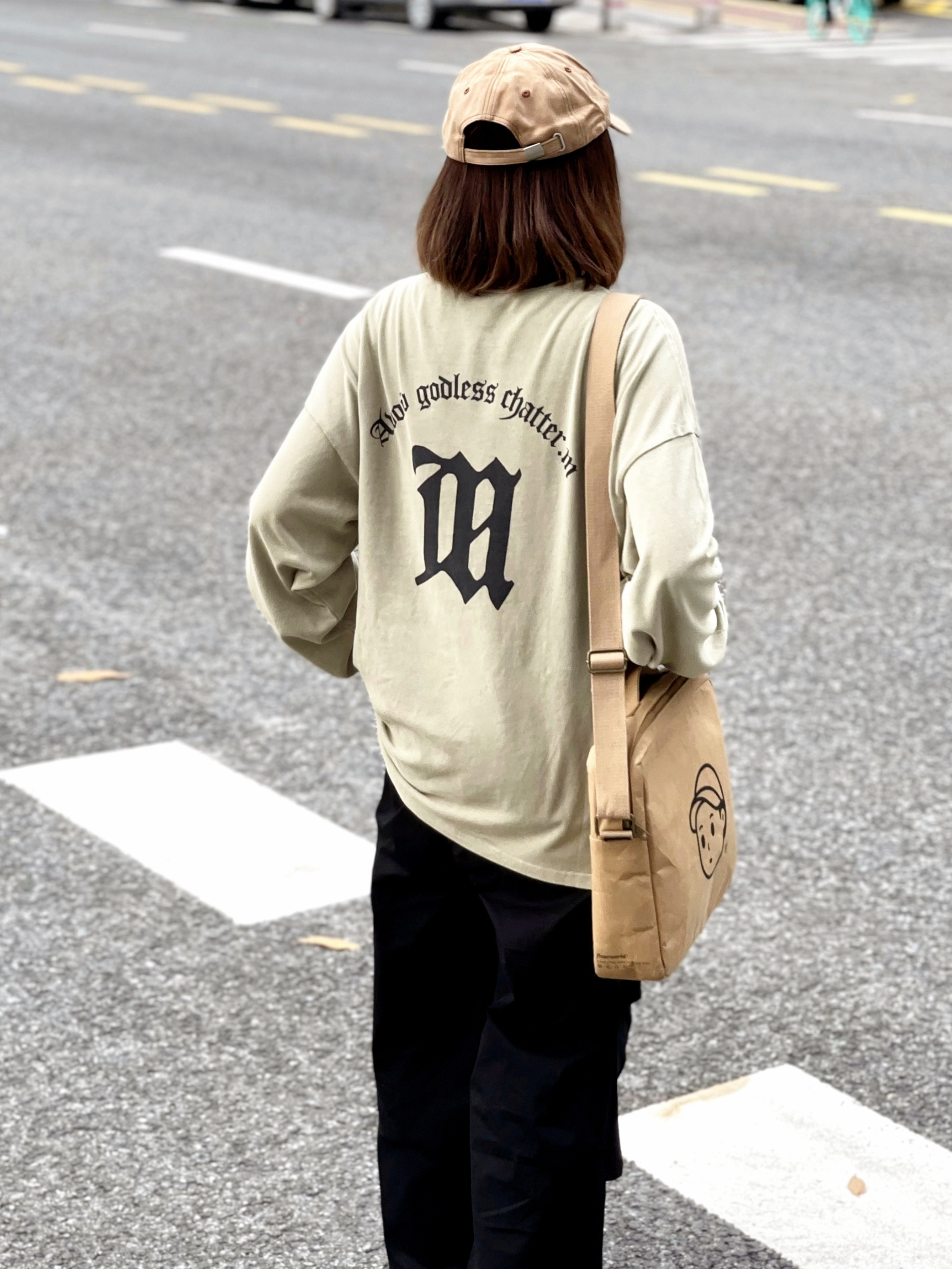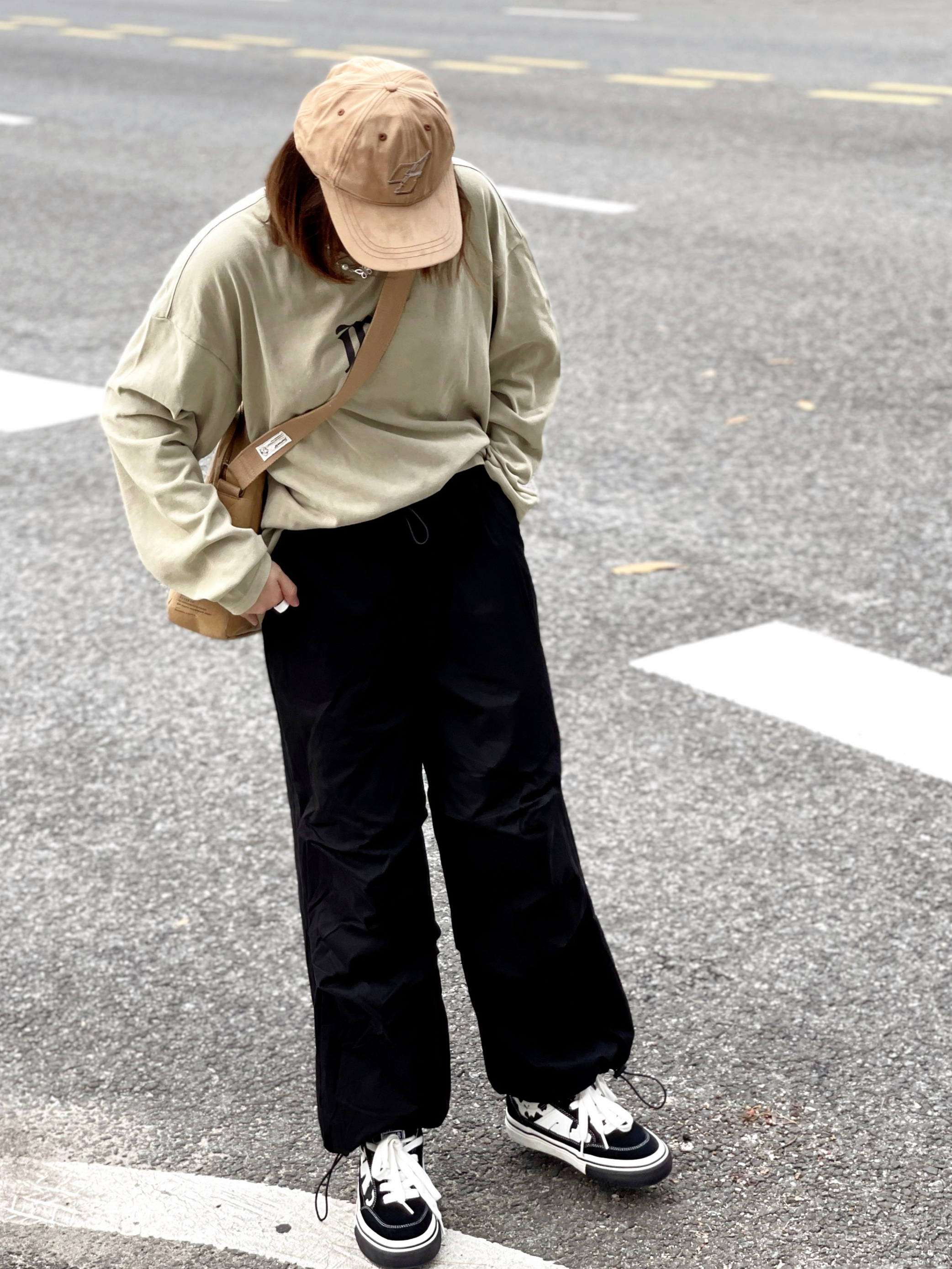 - 简约的哥特风字母设计 让T恤变得不一般 搭配黑色褶皱工装裤 细节感满满🔔 同色系的选择包包还有帽子 大地色系给人一种舒服稳重的感觉 蹬上一双奶牛鞋 整体比例腿长满分💯 今日份实用穿搭完成✅ - 👔:MAEA 👖:BABUGGE 🎩:Xotic 👟:vision street wear