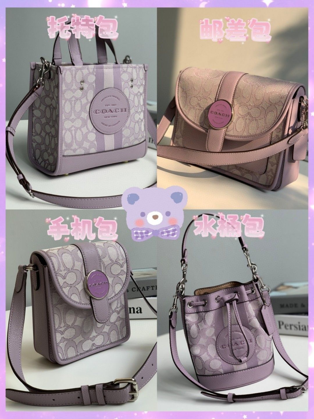 Coach这个紫色系真的好好看 低饱和度莫兰迪紫很清新脱俗 神秘又优雅 高级且端庄 入手这四款包包实用性还是蛮高的 无论通勤上班还是逛街都能搞定 🍇托特包 肩带可调节 手提单肩斜挎都是可以的 尺寸大约在22CM 不大不小的完美尺寸的尺寸 🍇水桶包 长肩带和手提肩带可以随时替换 尺寸大约在17CM 直接当手提包~小巧又精致 包口抽绳束口设计 收紧后就是一个花苞形状 🍇邮差包 圆形珐琅翻盖开合增添了...