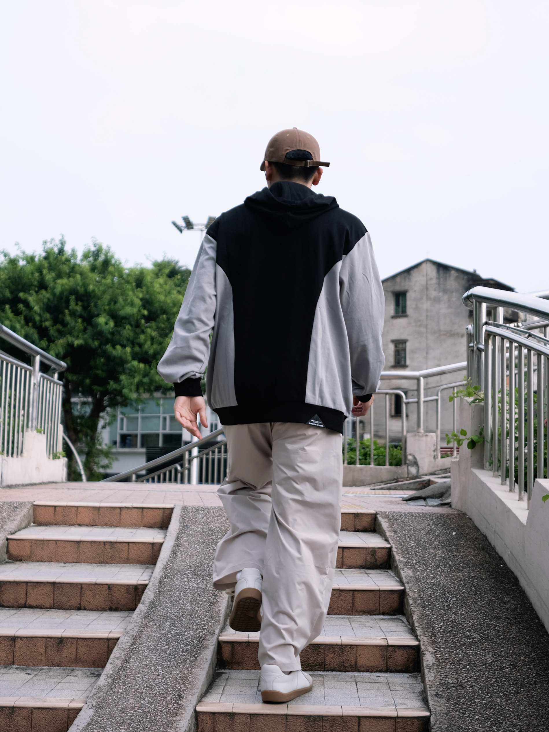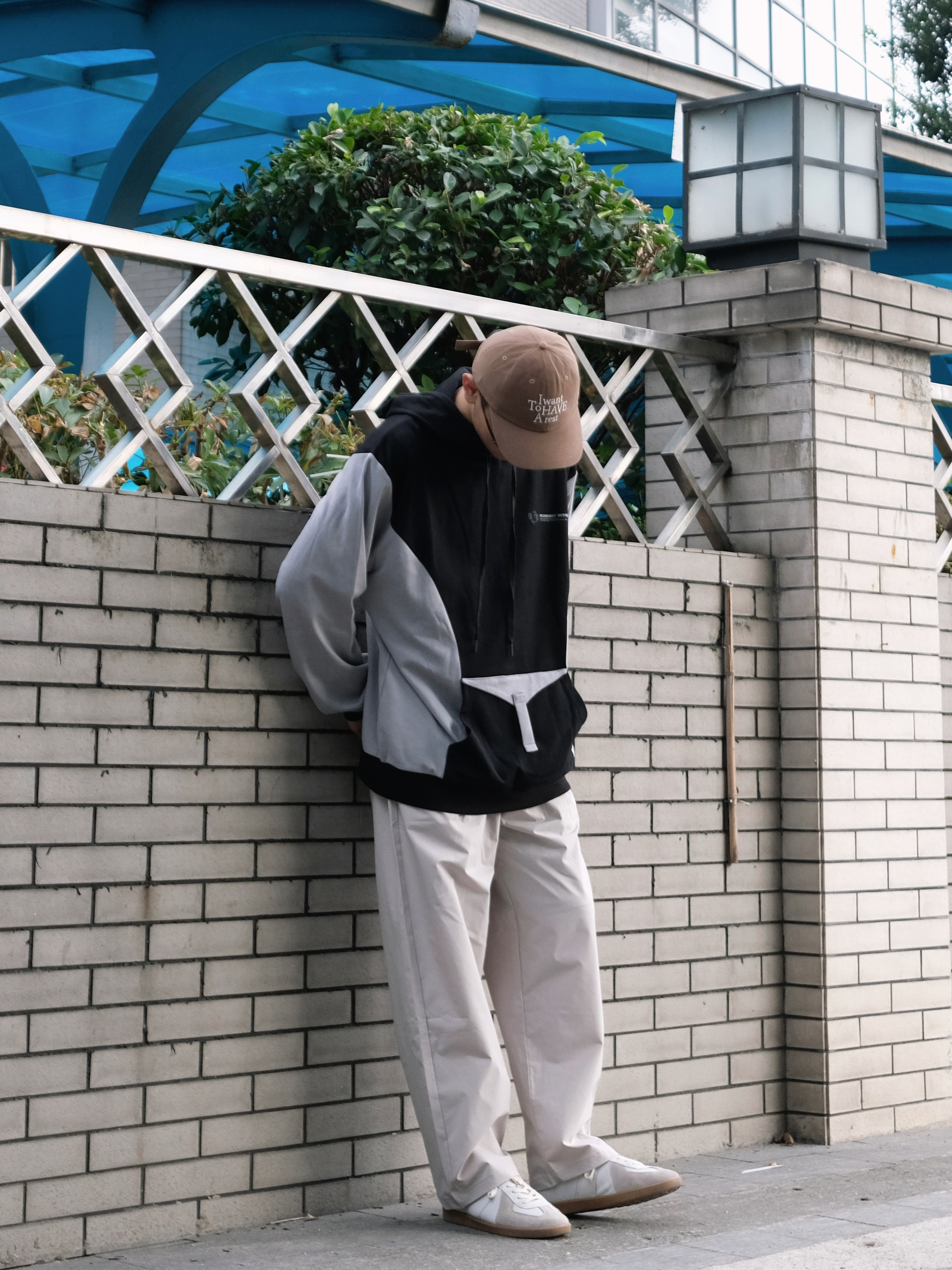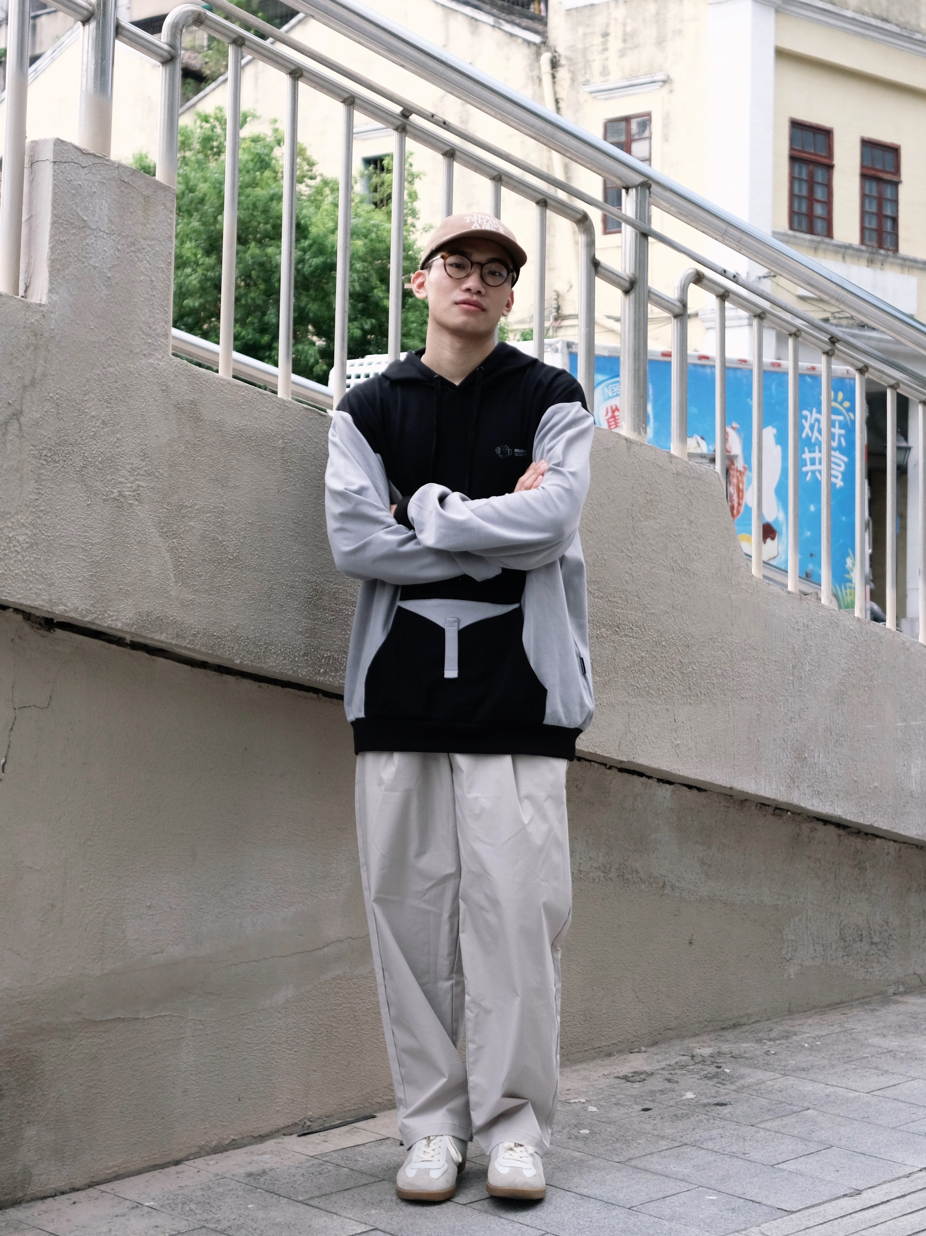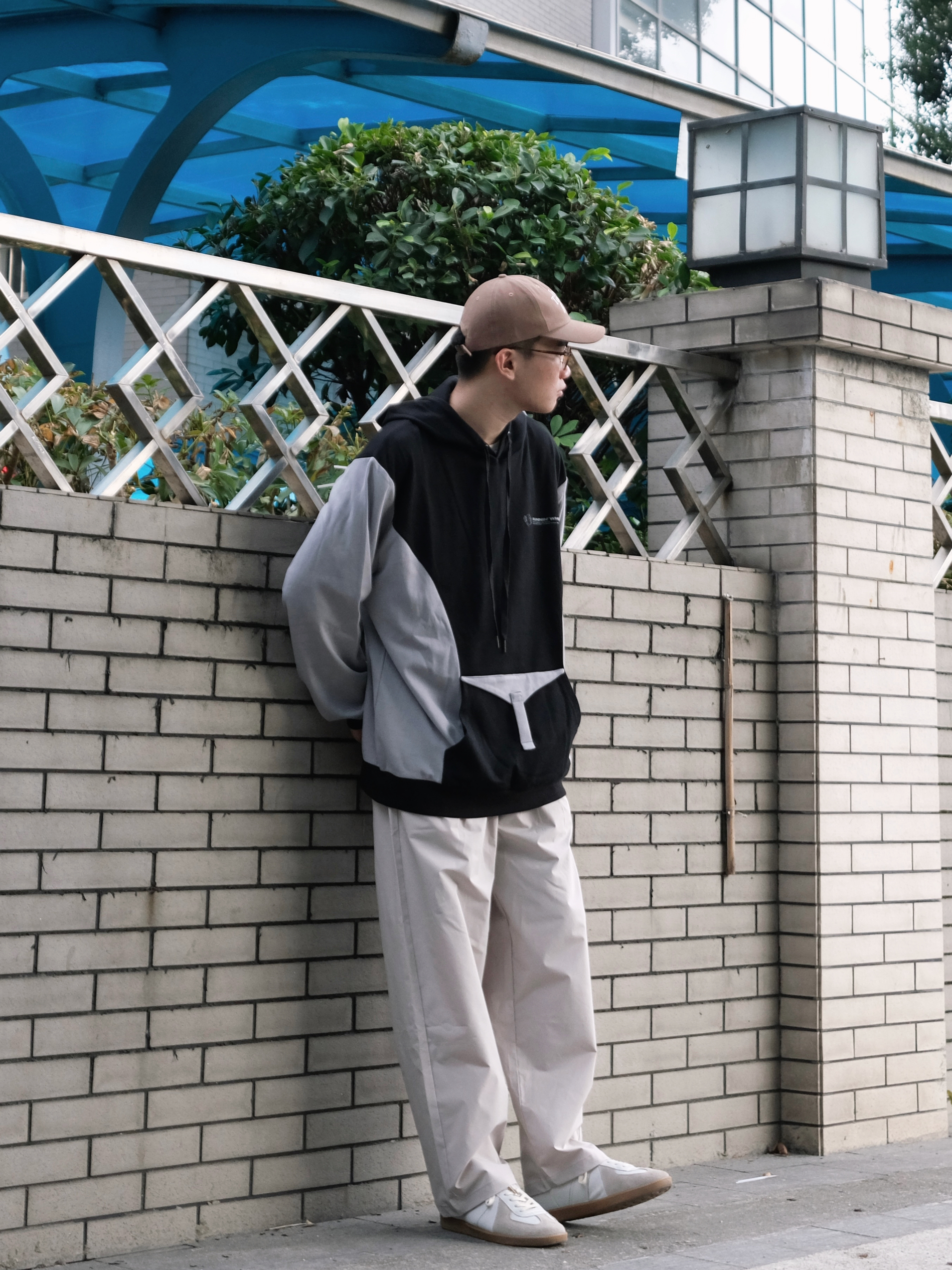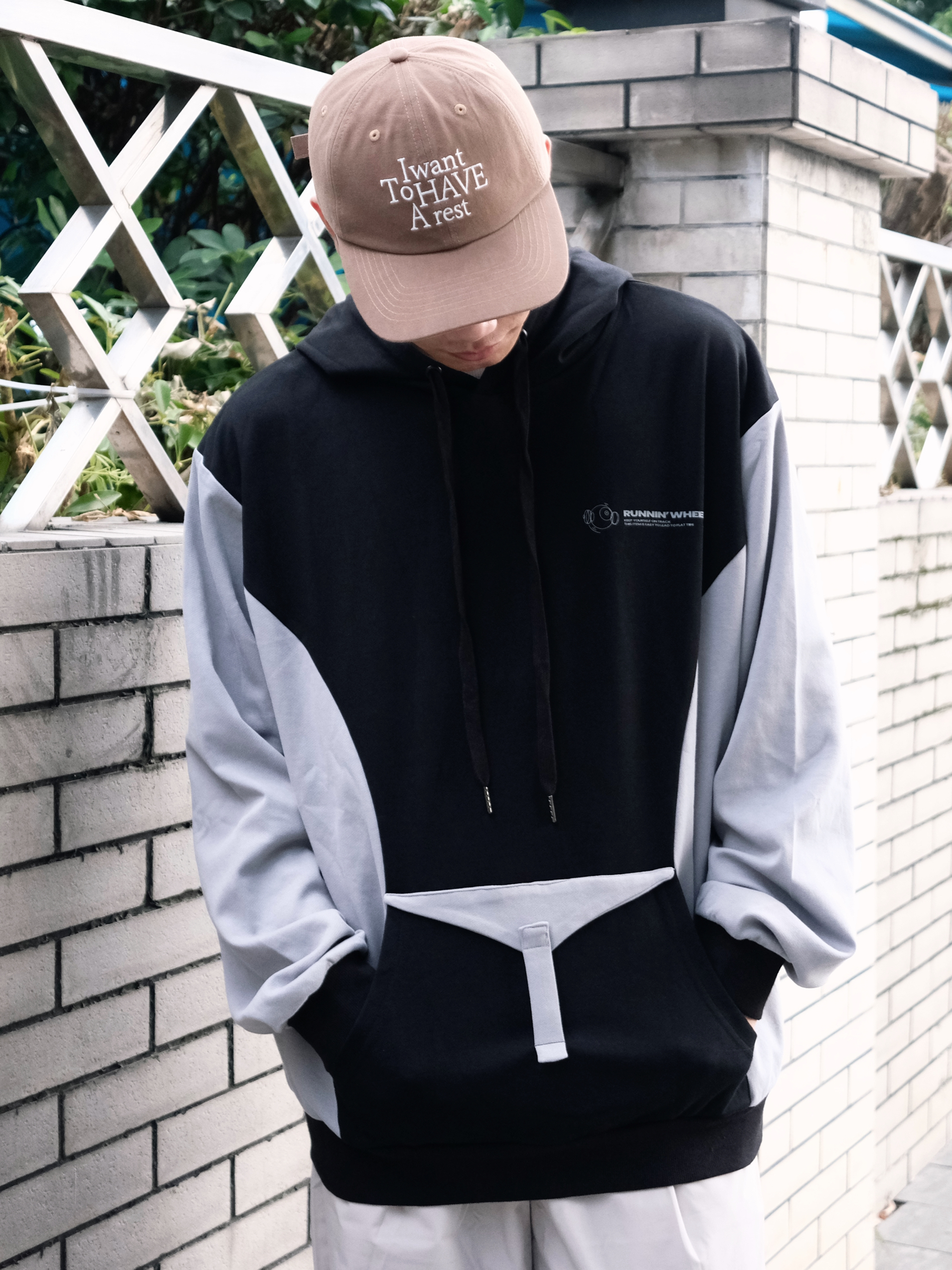 今天是反季节穿搭 连帽拼色卫衣➕灰色休闲裤 浅浅的期待一下秋冬吧 - 👔:RUNNINWHEEL 驱动轮 -