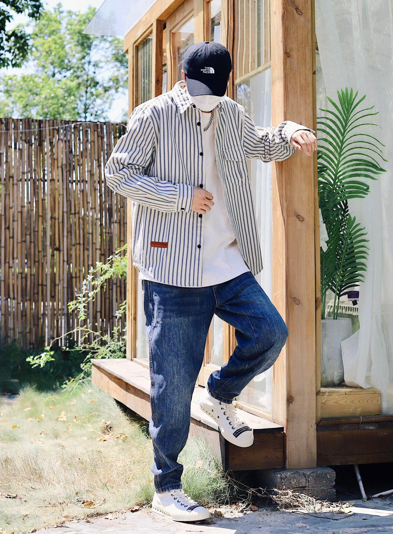 秋天来咯🍂火速安排上初秋穿搭哈哈哈! 用一条牛仔裤轻松搭配出韩系氛围感ootd ▪️初秋穿搭 look:条纹衬衣➕白T➕牛仔裤➕帆布鞋 ▪️搭配技巧 条纹衬衣叠穿yyds!叠穿白T自带氛围感 牛仔裤选一条水洗复古的就很好穿 百搭又好看 很显腿长 白色帆布鞋很适合秋天 高帮很有韩系感 设计简约高级 🍂 衬衣:Rabbit House兔先森 牛仔裤:豪霆 帆布鞋:VTVN