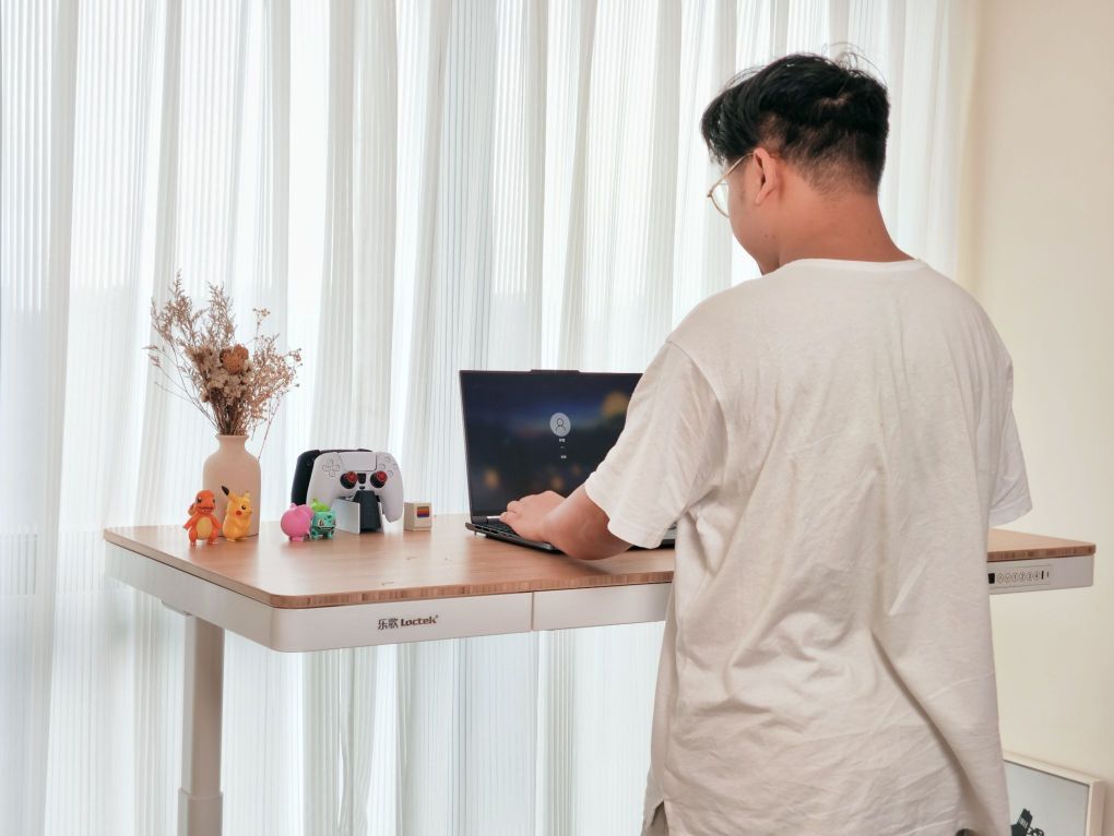 为了迎合新场地的风格,同时也要满足我的日常工作和生活的需求。开开我特意去入手了一款实木竹板的升降桌「乐歌 E6 PRO」
