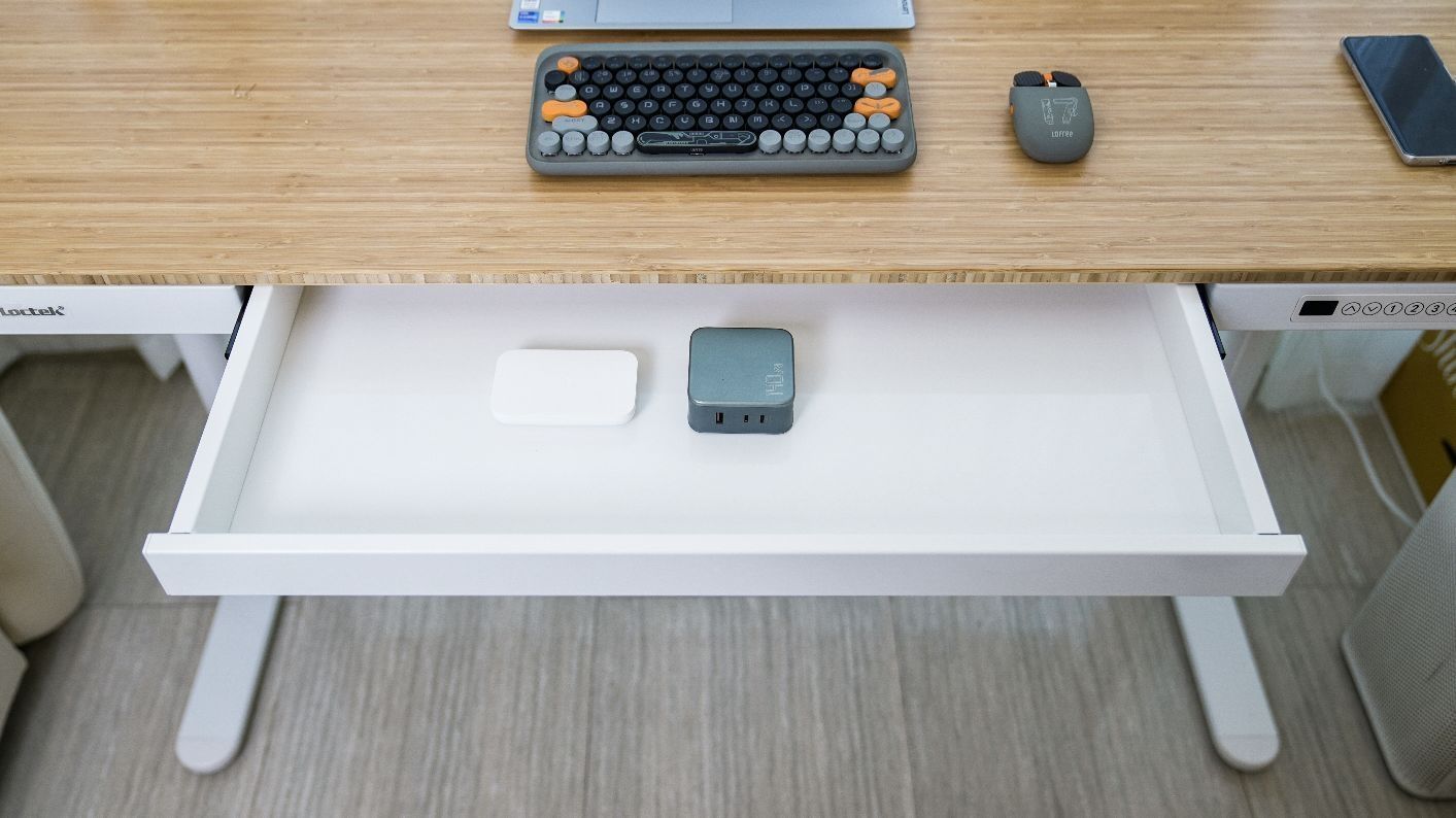 小细节是可以提高生活幸福感。升降具备触控操作,拥有LED屏幕显示,支持4个挡位的坐站记忆,贴心的还提供了USB和Type-c接口,再也不怕不够位置充电了。桌子底部配有大容量的凹槽,方便你防止插线板,还能很好的收纳线材。桌子前面还具备隐藏式抽屉,放小工具,书本和电子设备都是很好的空间利用。