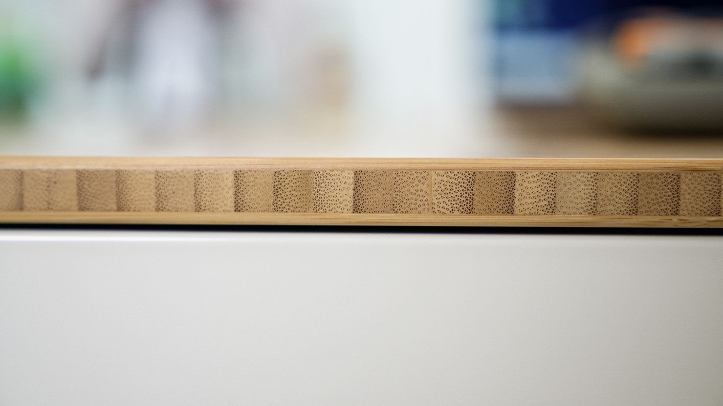 我因为是放在客厅靠近窗户的位置,是工作也是生活,两者都要兼备,最后就选择了本竹色的1.4米桌子,侧面的竹子纹理非常的好看,表面的纹路也很到位,搭配白色的椭圆桌腿,融入环境那是妥妥的,下午太阳光照进来的时候,真的是太美了,是我的理想生活了。