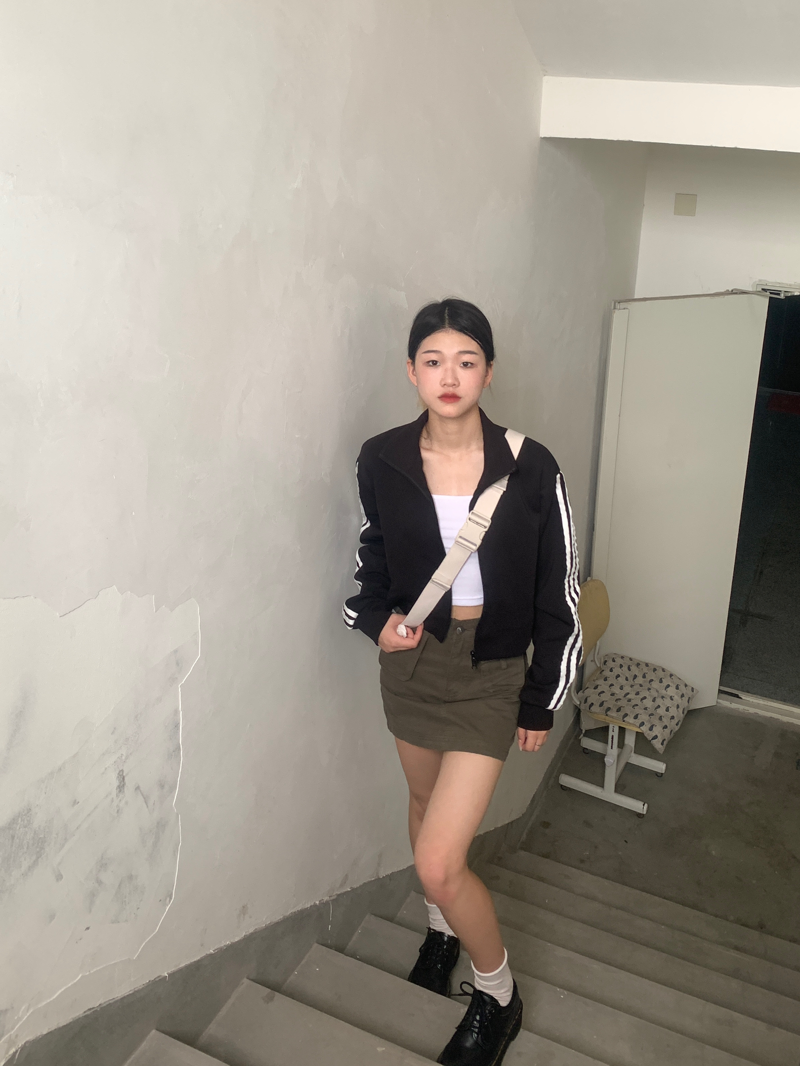短外套真的很显比例👍👍 搭个短裙或者工装裤,背个挎包 都很帅 👔 港味潮人馆 👗 redr 🎒 nike