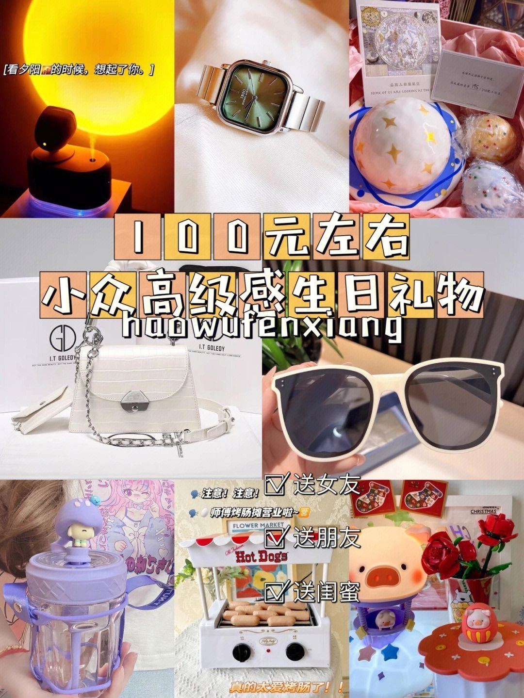 友友们,聊天给大家分享一期生日礼物,大家都是辛苦的搬砖人,很贵的礼物即便收了,后期还是要还。所以挑选礼物大家都在自己能力范围内的。今天找了一些精致高级感的礼物,希望能帮助到大家,好啦!如果友友们对以上图片感兴趣可以自己领取店铺名字。 1.加湿器日落灯🛒夏日番茄派对💰117.9 2.小绿表🛒匠心名表💰110 3.小方包🛒完美香港IT专柜💰133 4.烤肠机🛒partybaby旗舰店💰170 5.墨镜...